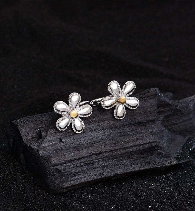 Pendientes de estilo dulce y fresco con hebilla de oreja de girasol a juego en dorado y plateado para mujer, estilo frío, nicho, flor simple, exquisitos, ligeros, de lujo, de celebridades de Internet.