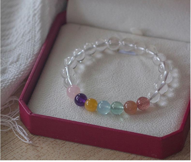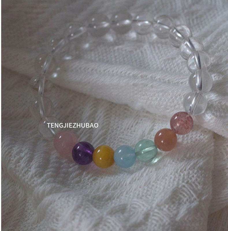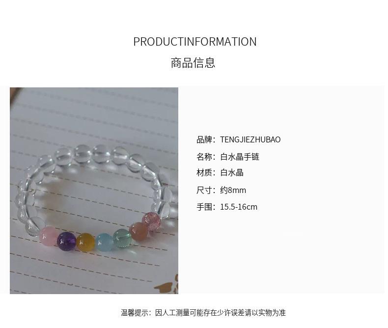 Compra Pulsera de Círculo Sencillo de Cristal Blanco Natural Redondo de 8 mm para Mujer con Cristal Fresa, Pulsera de Moda Atmosférica Sencilla al por mayor en Joom.pro