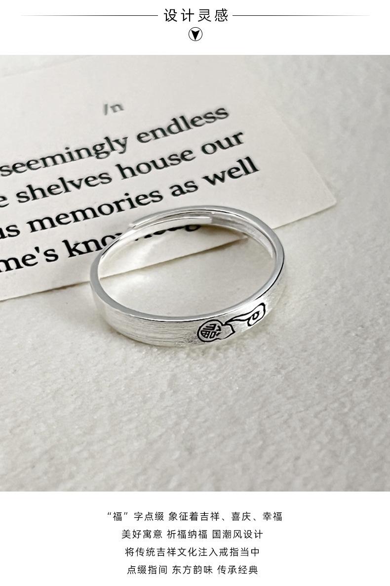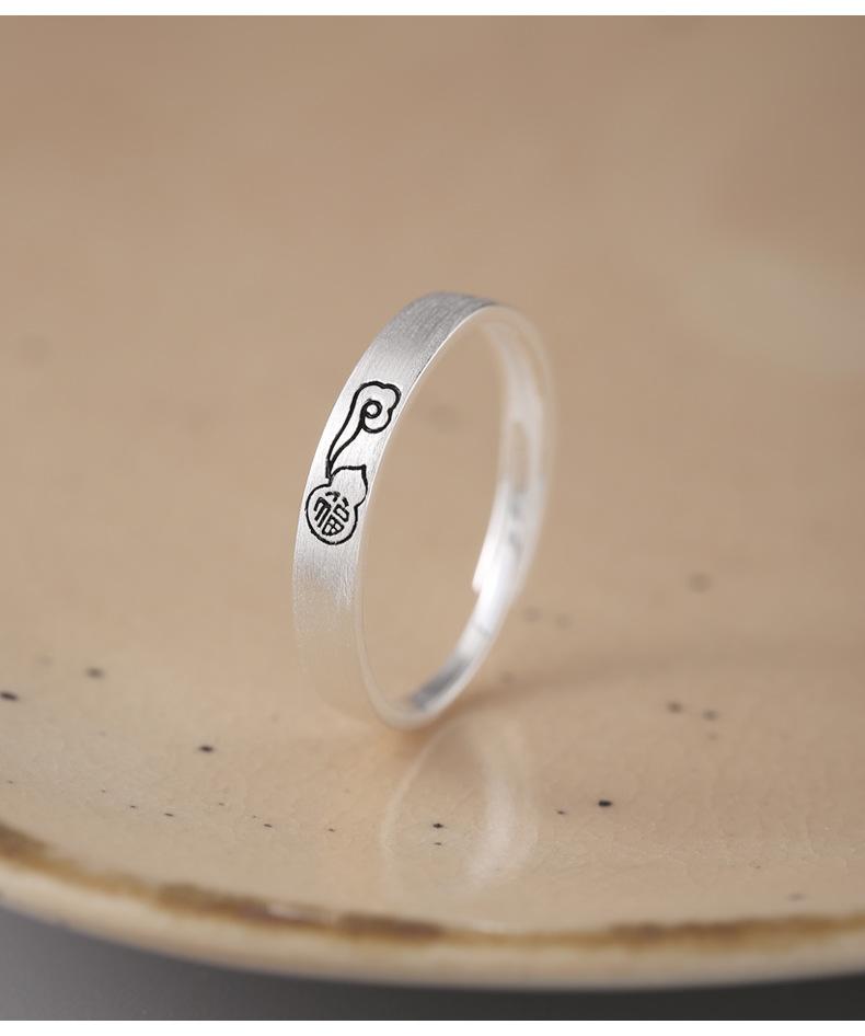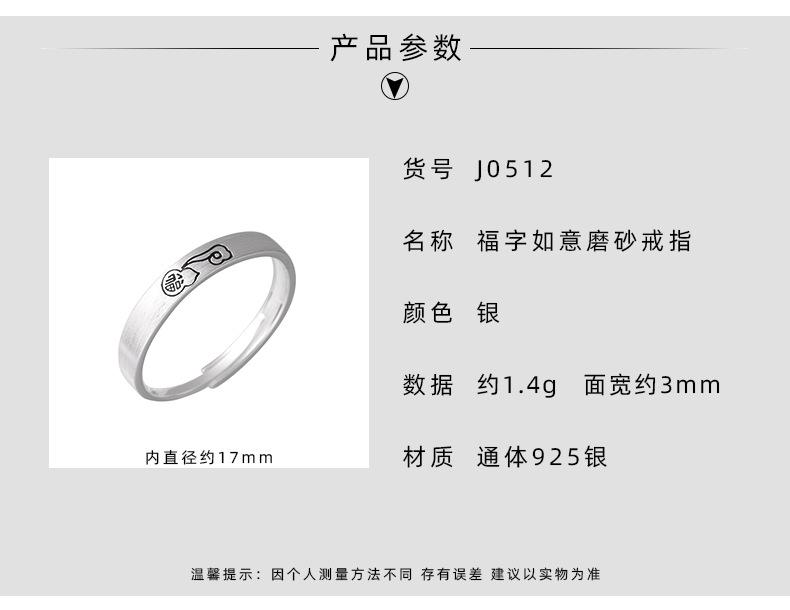 Anillo de plata de ley 925 con diseño de Ruyi Fortune Frosted para mujer, estilo chino, sencillo y nuevo, con diseño nacional, combinable con todo, J0512