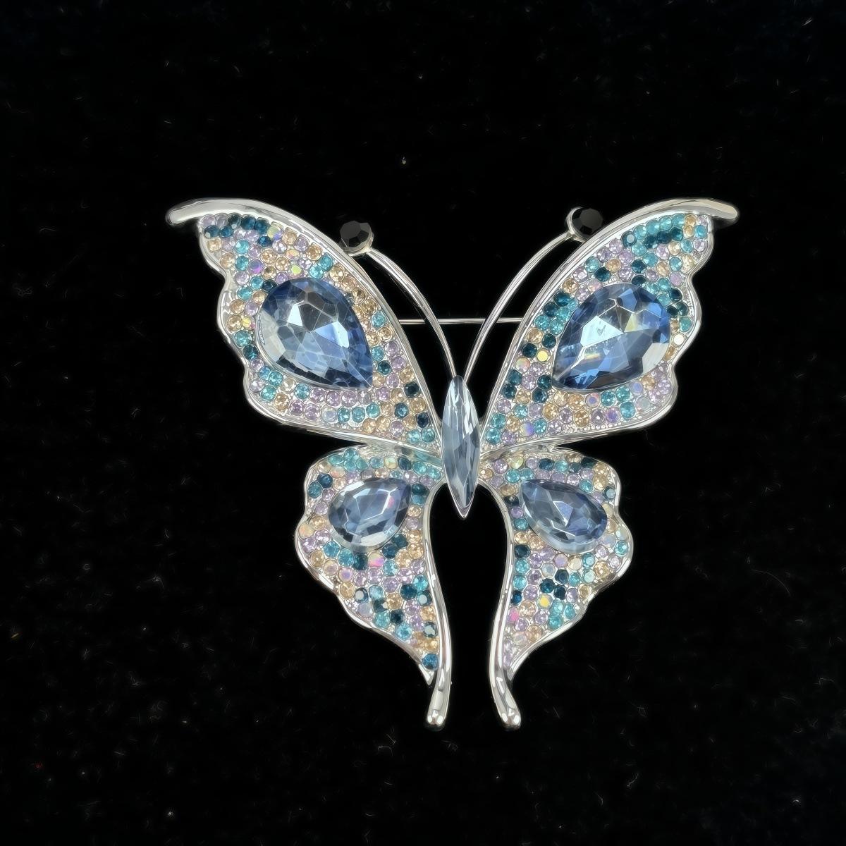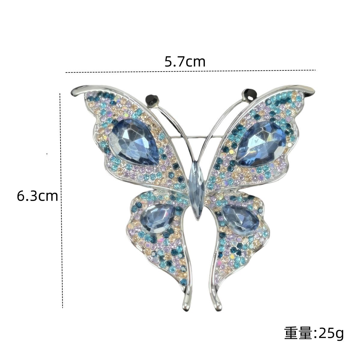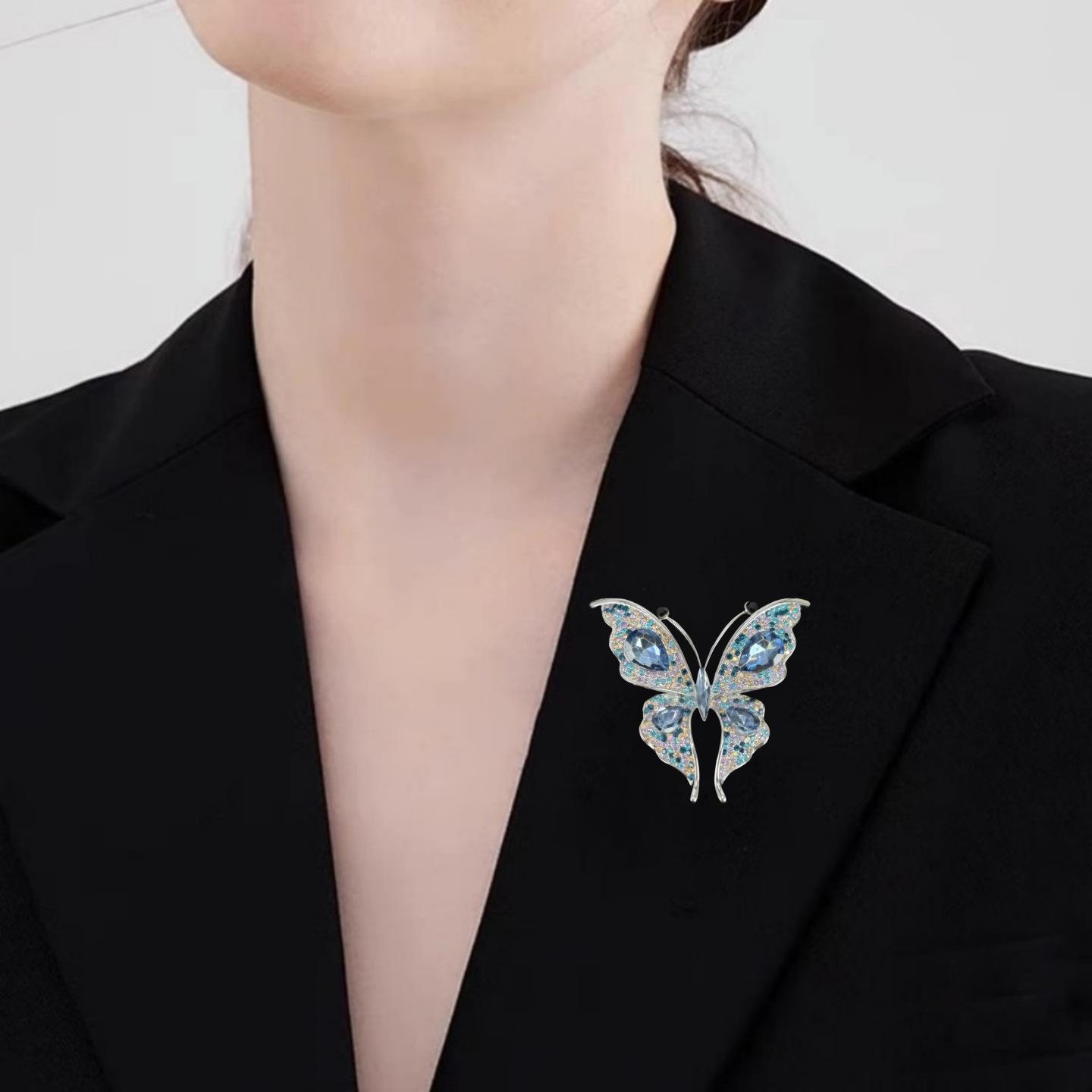 24 nuevos broches de mariposa de cristal azul europeos y americanos, ramilletes coloridos de moda para mujer, elegantes accesorios de ropa que combinan con todo.