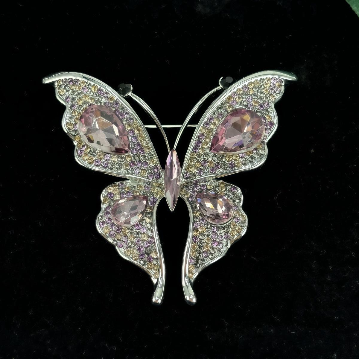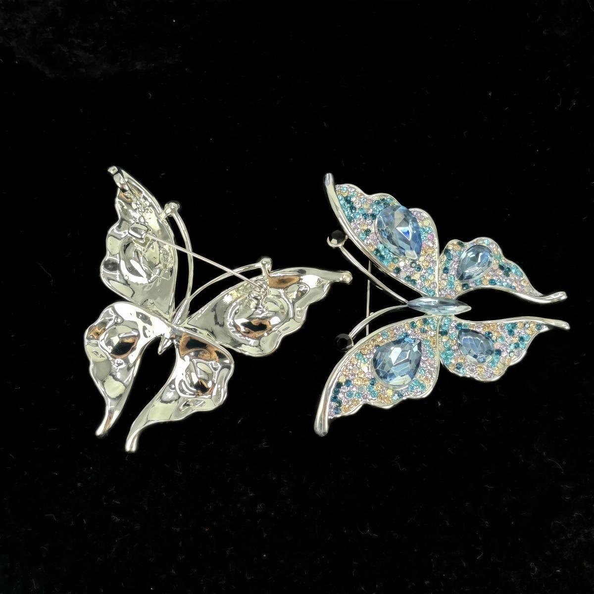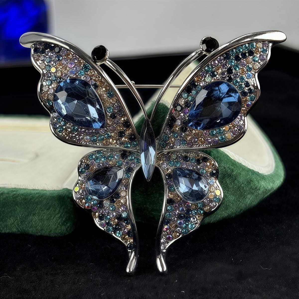 24 nuevos broches de mariposa de cristal azul europeos y americanos, ramilletes coloridos de moda para mujer, elegantes accesorios de ropa que combinan con todo.
