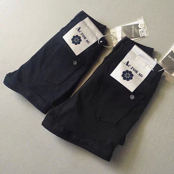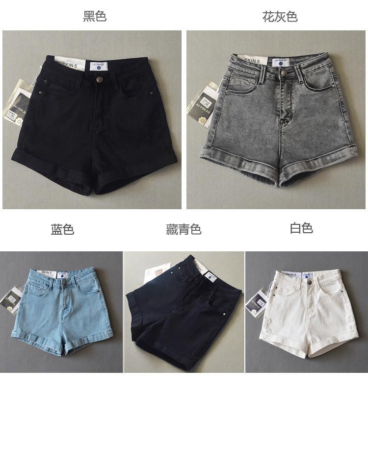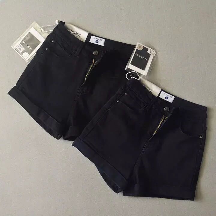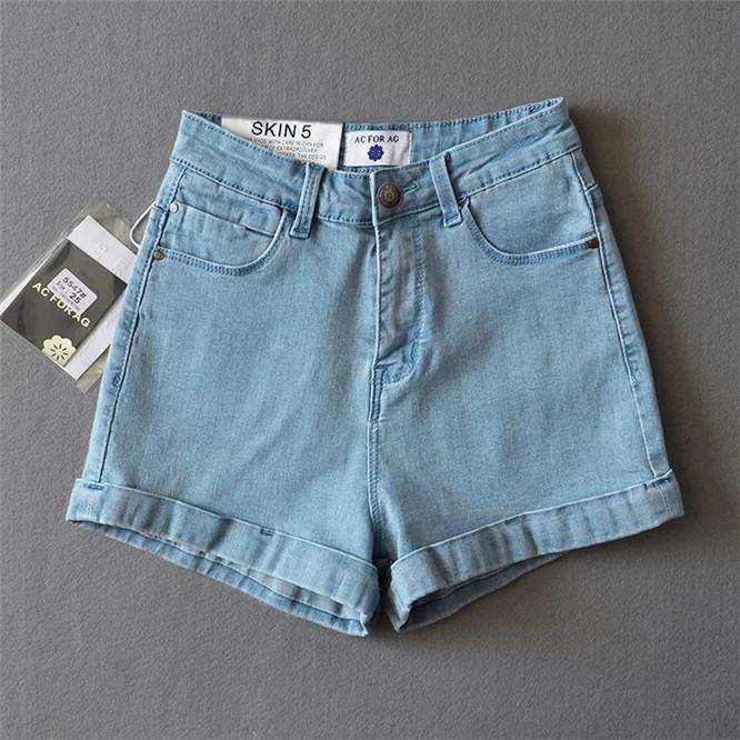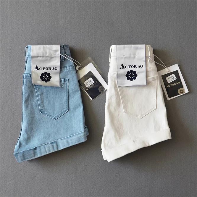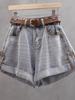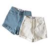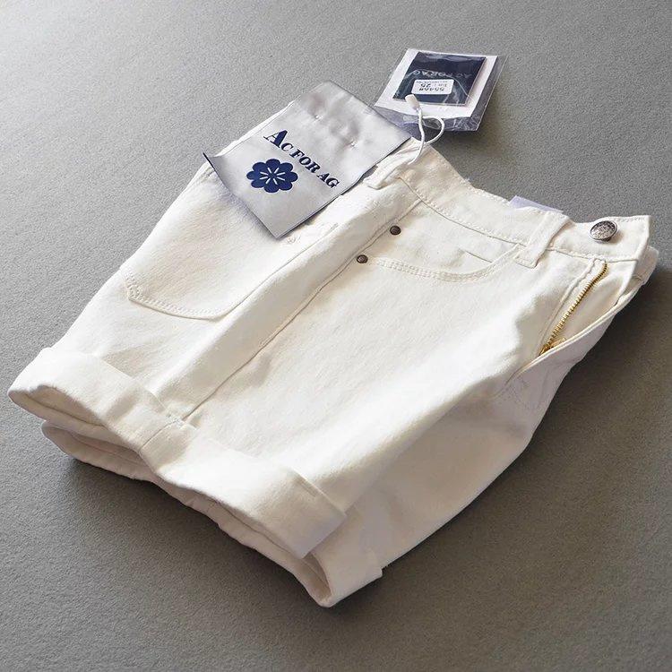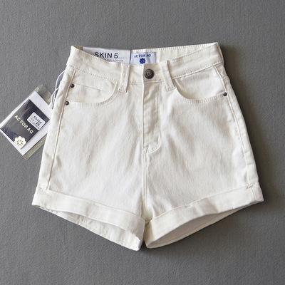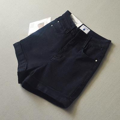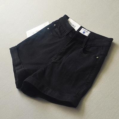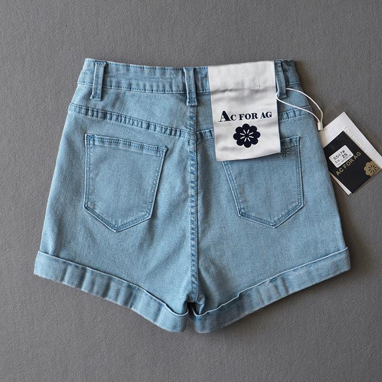 Verano Europeo y Americano Hip Pantalones Cortos Calientes Cintura Alta Mezclilla Sueltos Elásticos Adelgazantes Talla Grande Línea A Pantalones de Pierna Ancha con Dobladillo