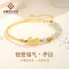 Pulsera de tira estrecha de jade de seda dorada de Gobi de Xinjiang, pulsera de tira fina de jade violeta, pulsera de flores flotantes con soporte