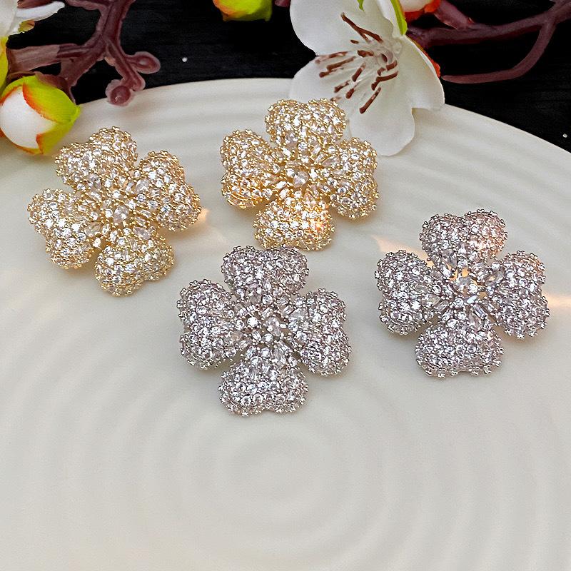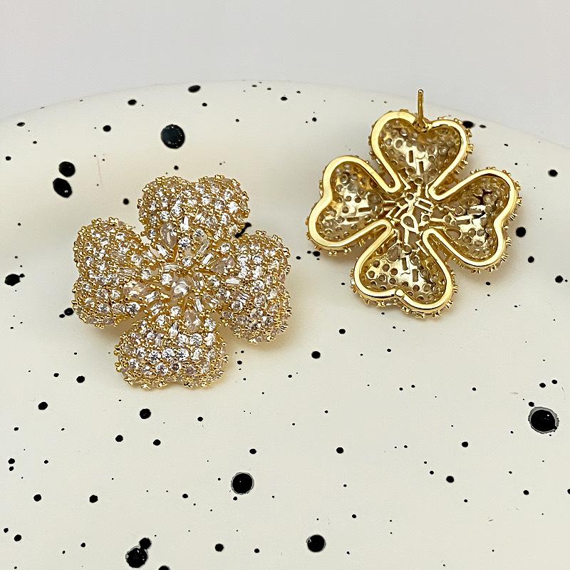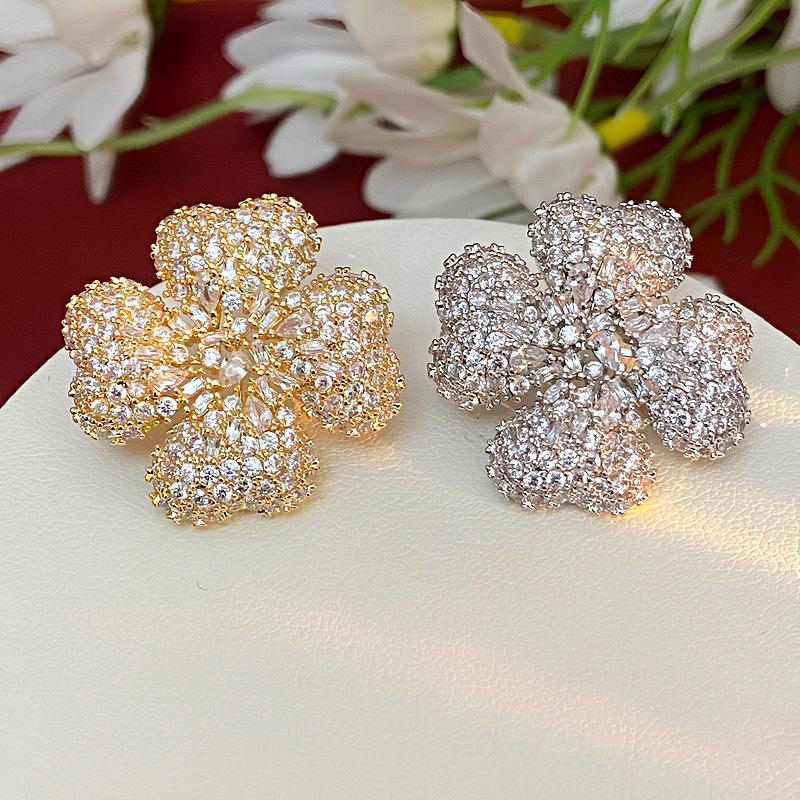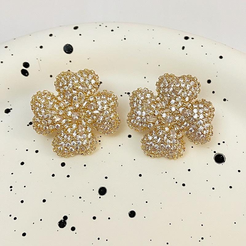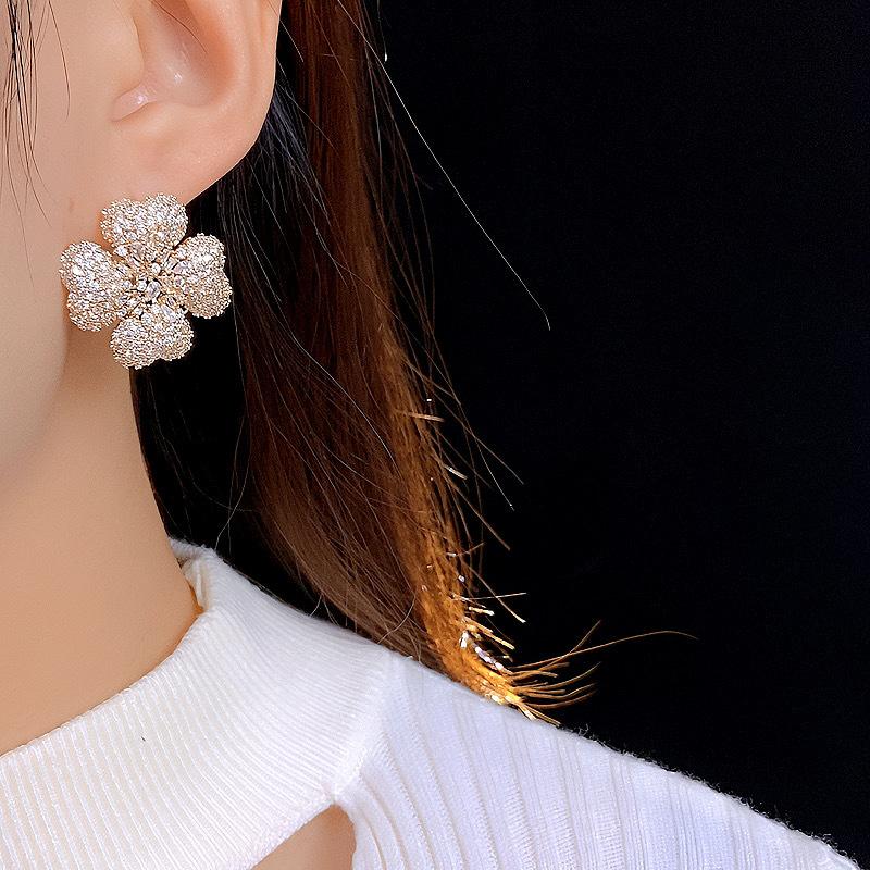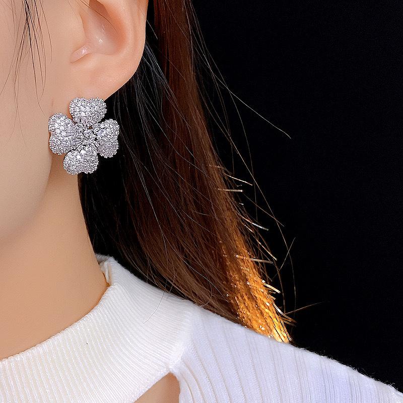 Pendientes de lujo con microincrustaciones de circonitas y diseño de flor de amor de estilo francés, con entrada francesa, pendientes que combinan con todo, pendientes elegantes y avanzados.