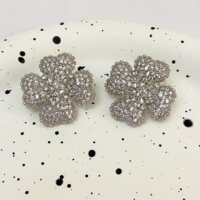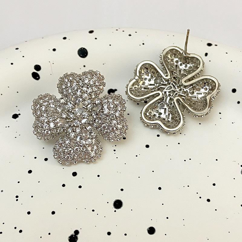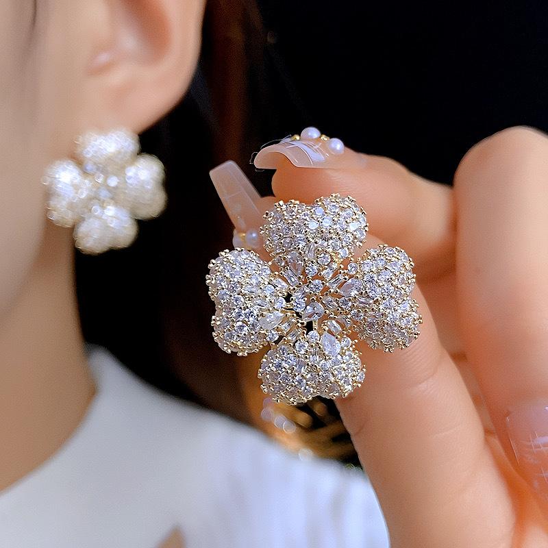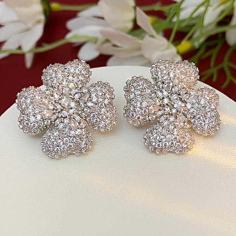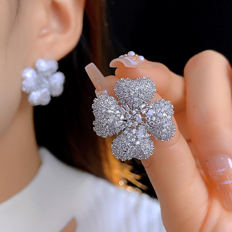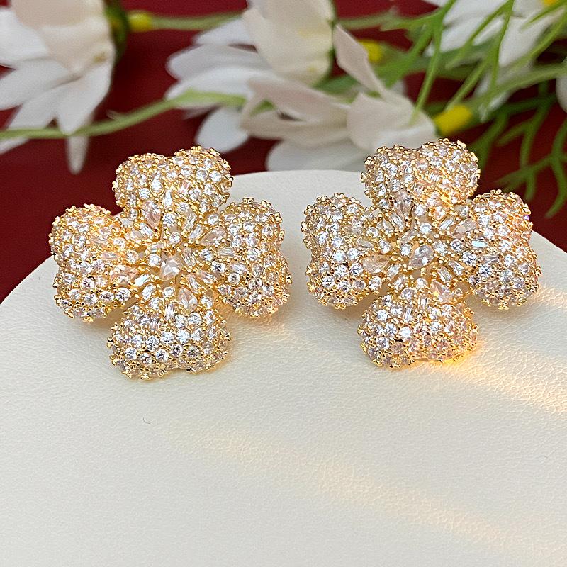 Pendientes de lujo con microincrustaciones de circonitas y diseño de flor de amor de estilo francés, con entrada francesa, pendientes que combinan con todo, pendientes elegantes y avanzados.