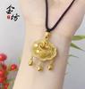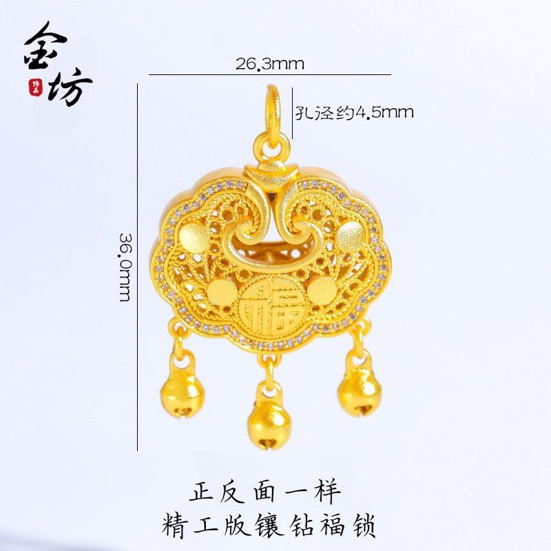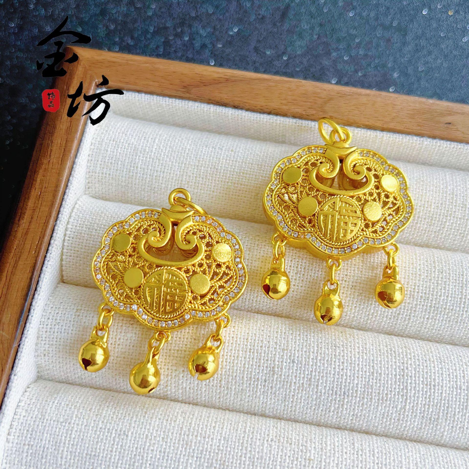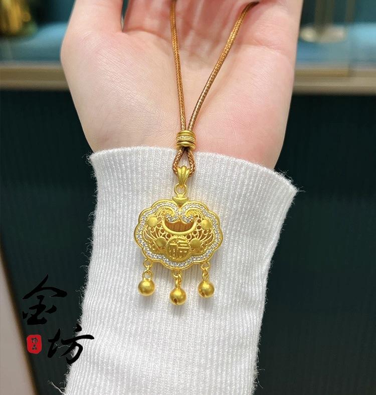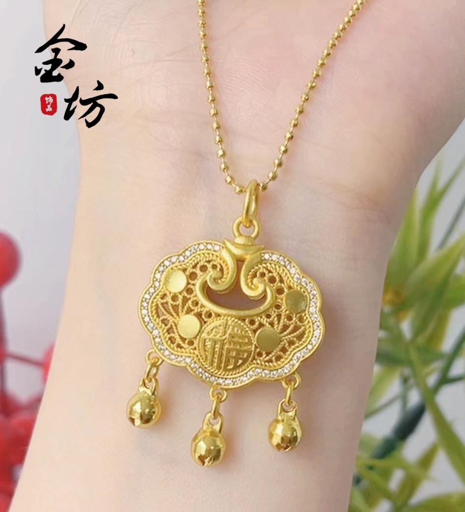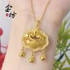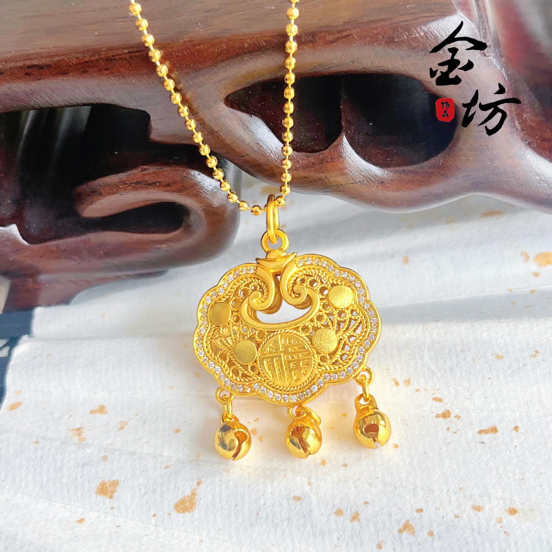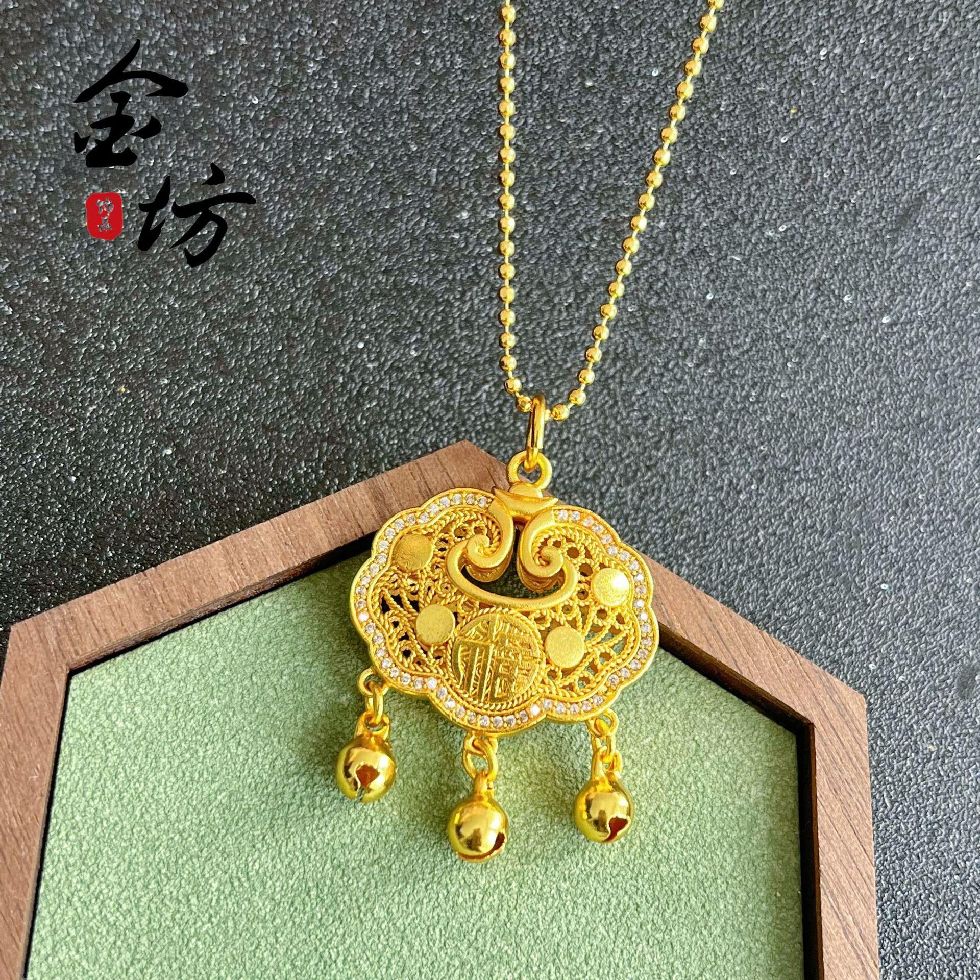 Tienda de oro con oro antiguo 999 diamante campana bendición larga vida candado colgante collar regalo luna llena bebé cadena para suéter