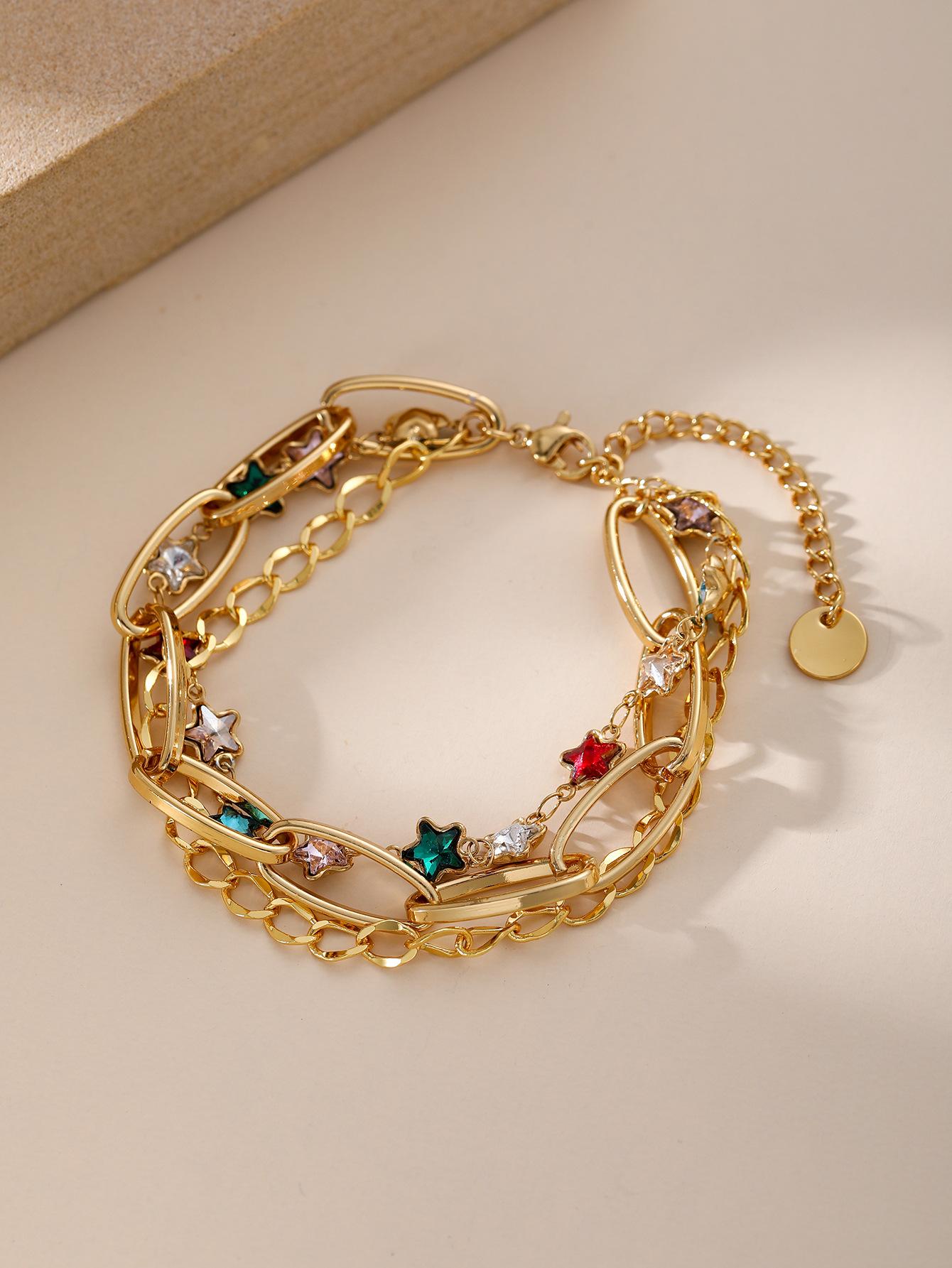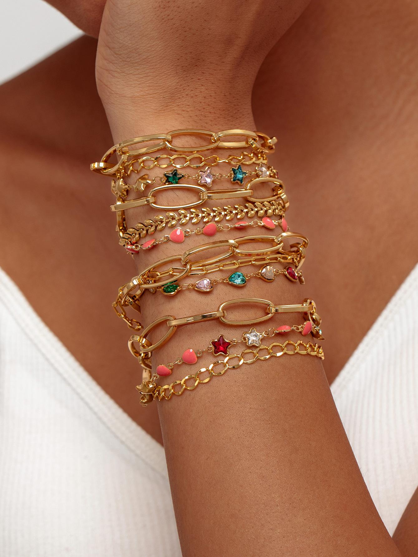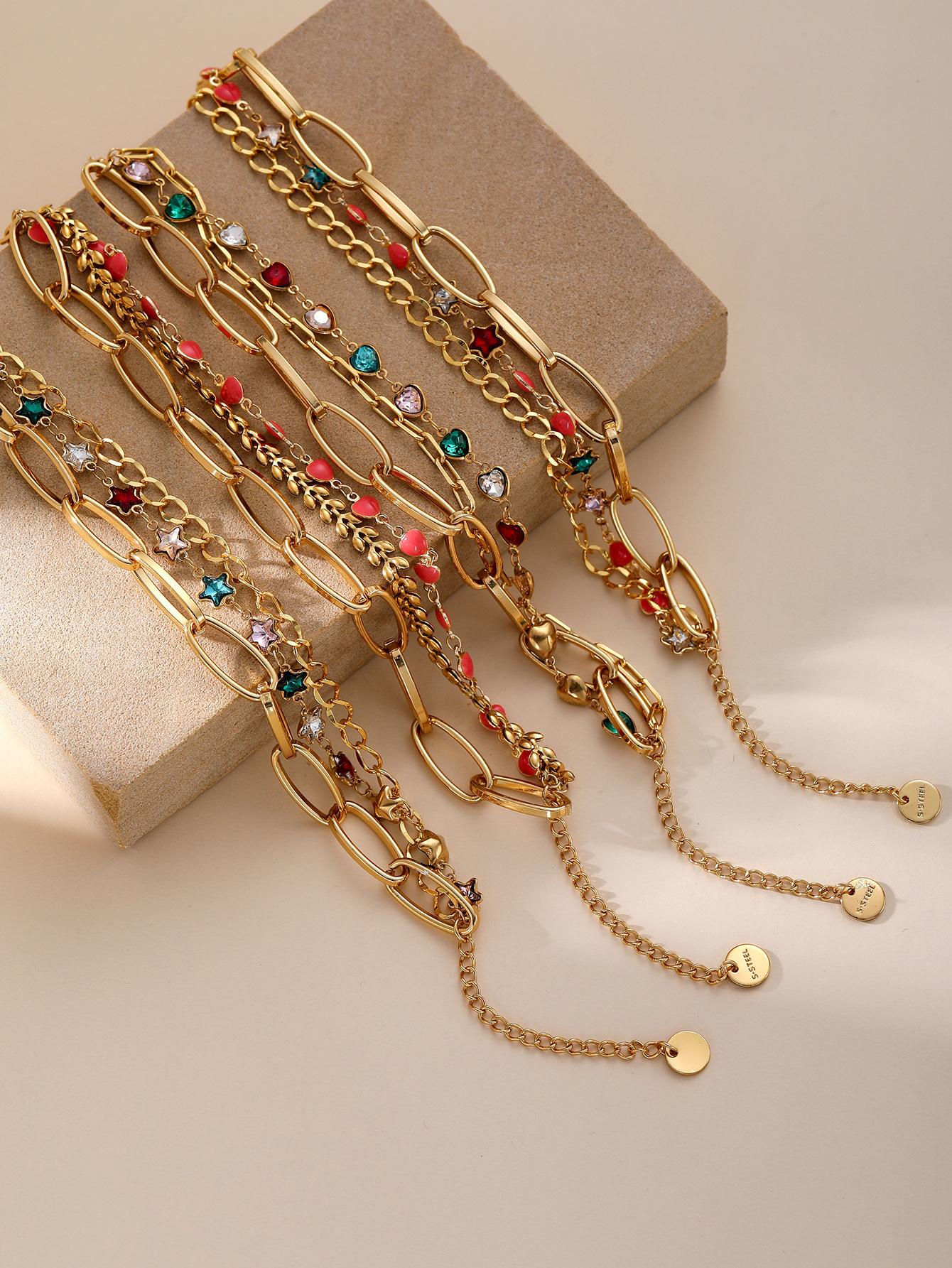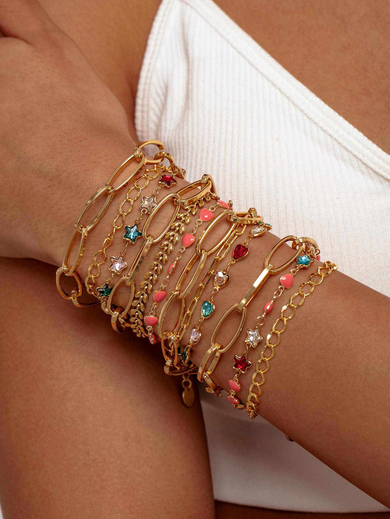 Pulsera de acero inoxidable al por mayor estilo europeo y americano pulsera bohemia de punto de cadena con circonitas juego de pulseras para mujer