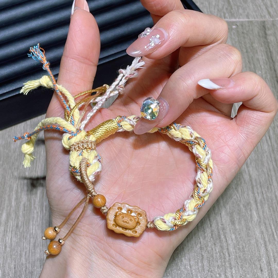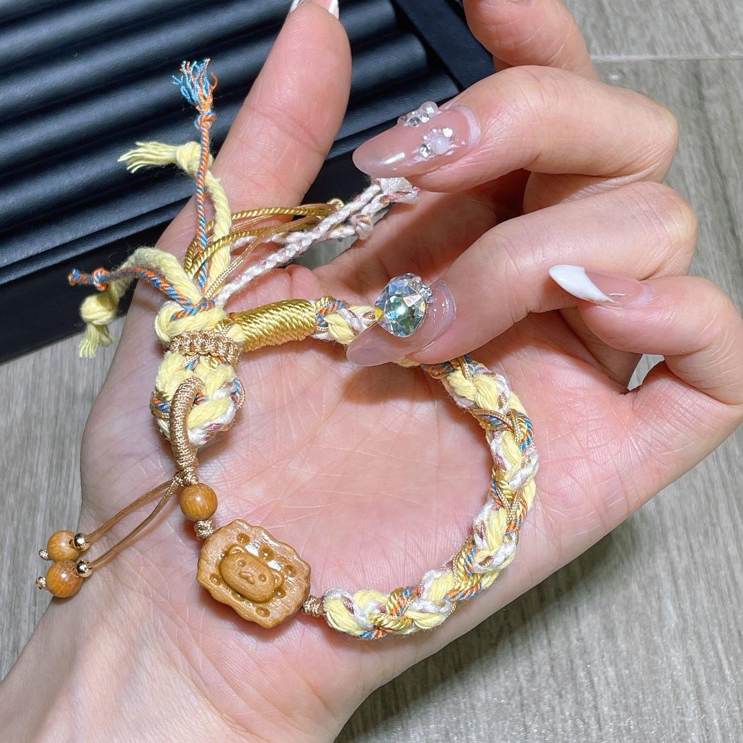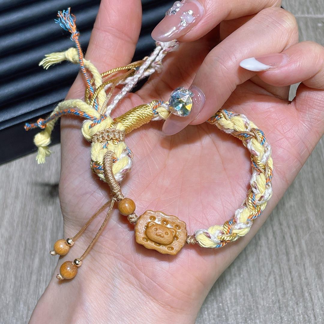 Pulsera de juego de alta gama con diseño original de cuerda de sándalo hecha a mano, con placa de alta gama, joyería de moda, libro de equitación rojo pequeño, mismo estilo
