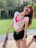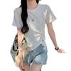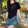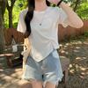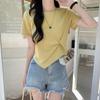 Diseño Irregular Top de Manga Corta para Chica Hot Color Sólido Ajustado Corto Ombliguera Camiseta de Manga Corta para Mujer Camiseta Moderna