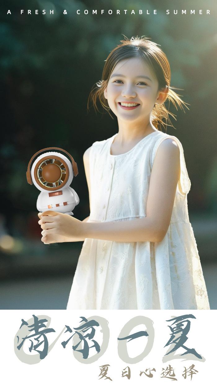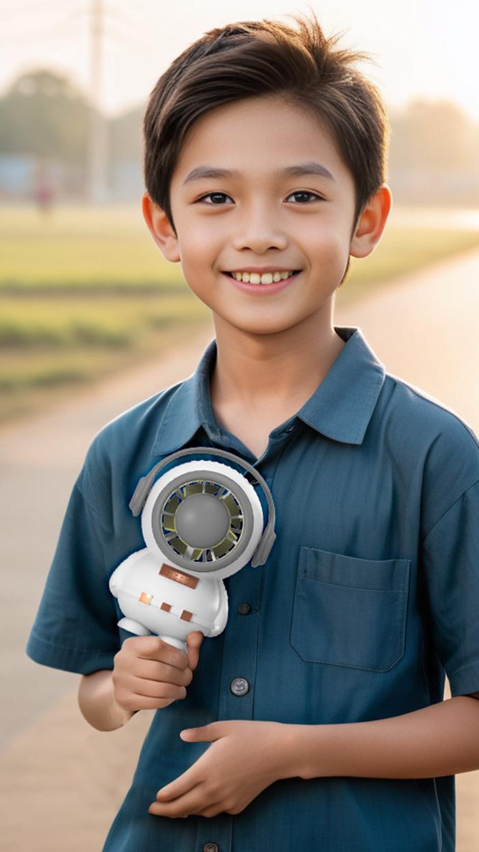 Mini ventilador de mano con diseño de astronauta, para estudiantes, con USB, ligero y de tres velocidades