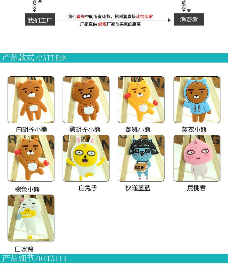 Llavero de PVC con forma de oso de dibujos animados, muñeco creativo, colgante pequeño, llavero para mochila de estudiante, adorno colgante