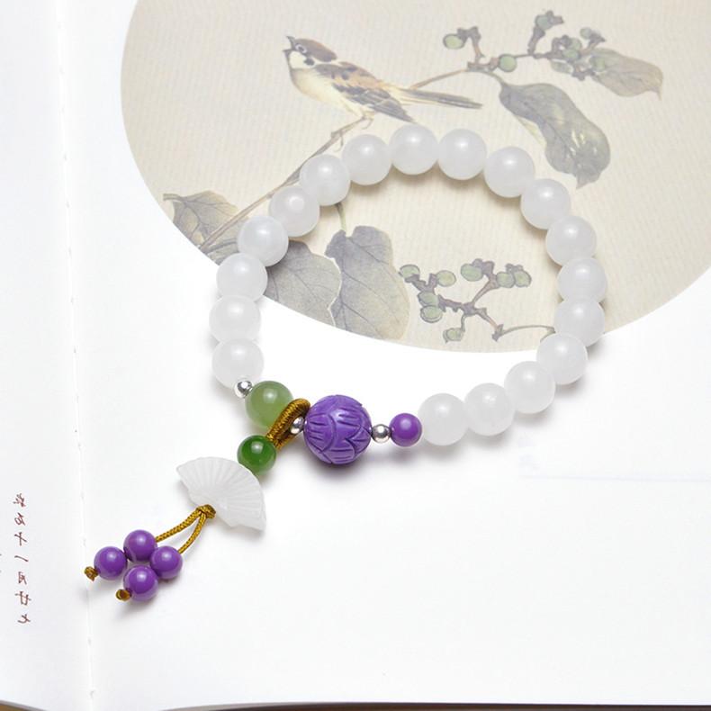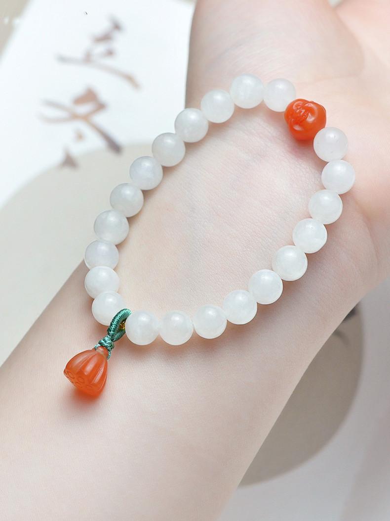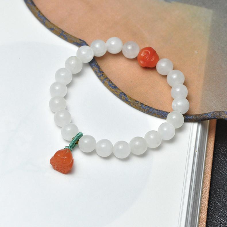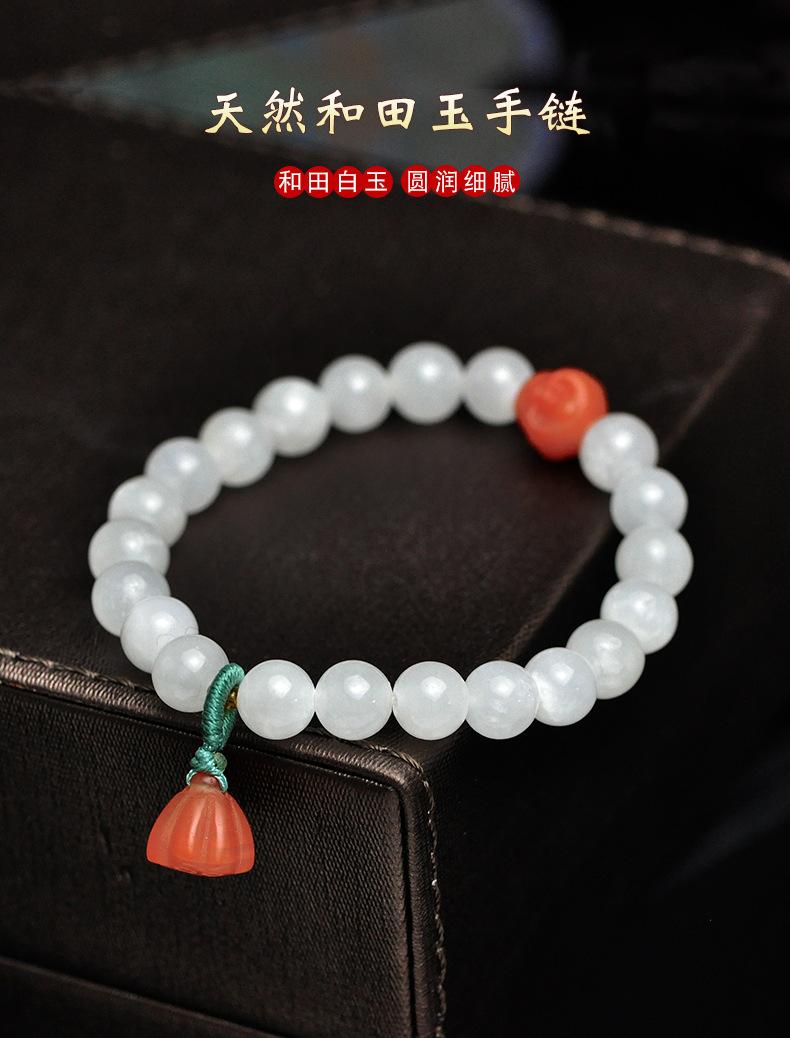 Compra Pulsera de jade blanco de Hotan con loto rojo del sur, pulsera de año de nacimiento para novia, pulsera de moda sencilla al por mayor en Joom.pro