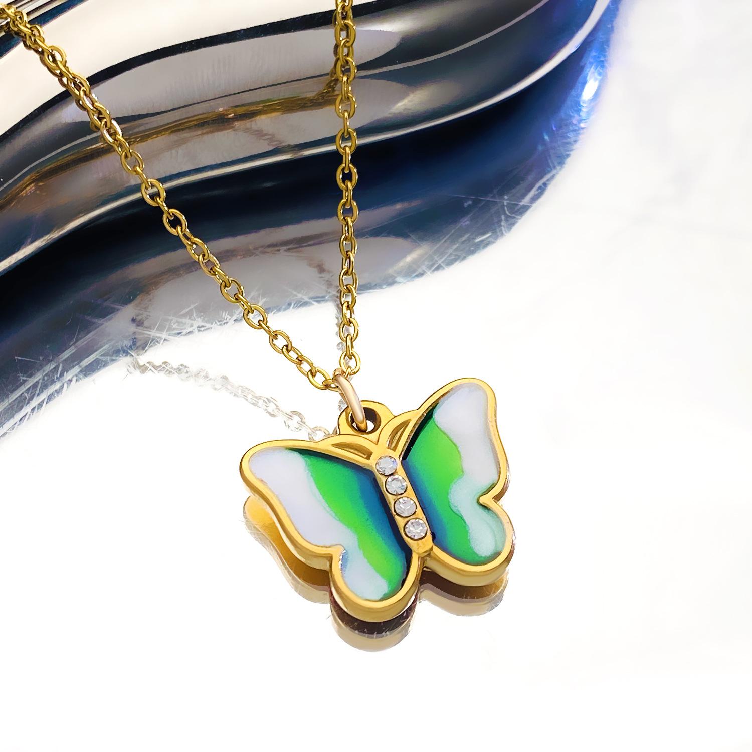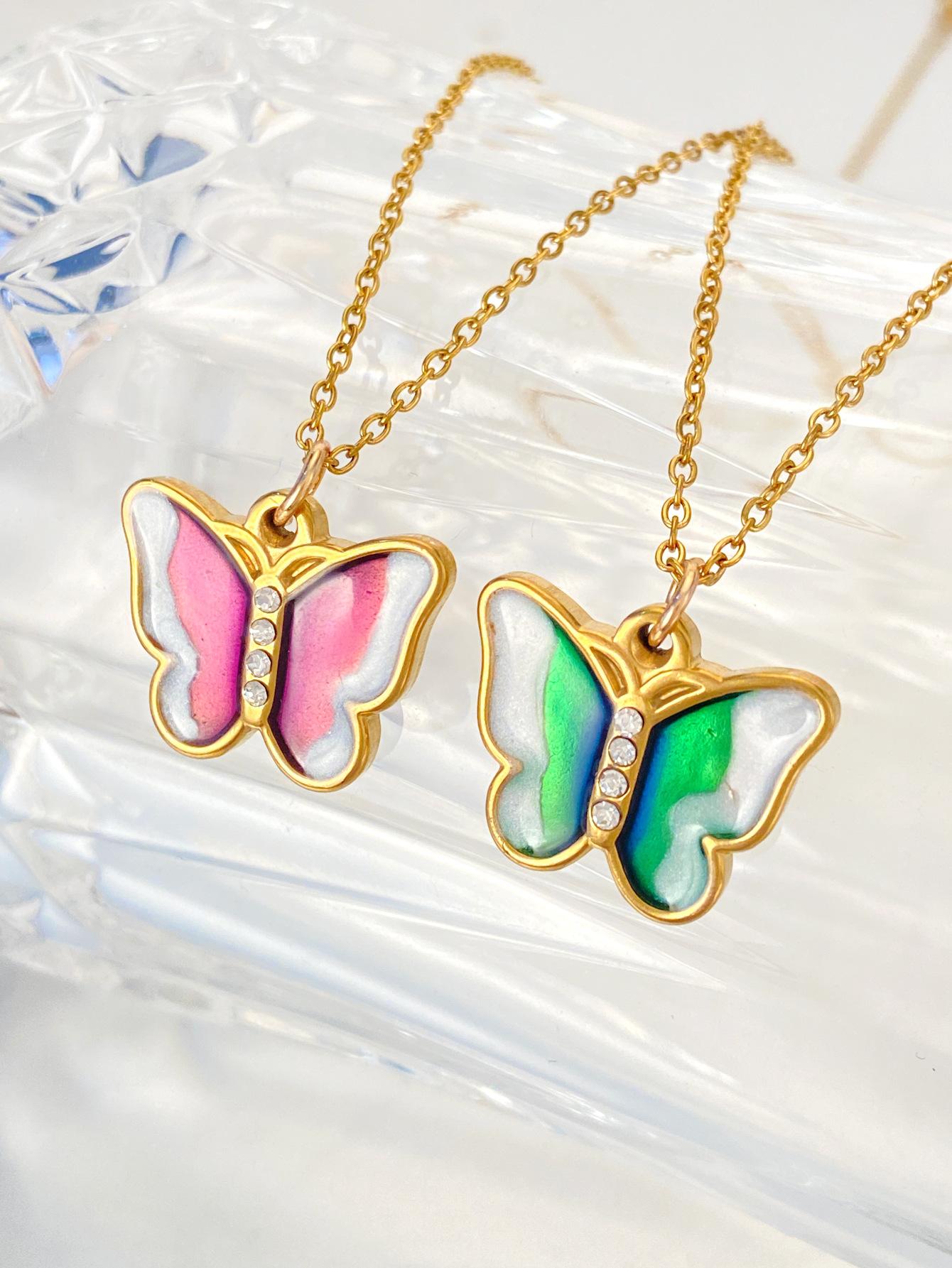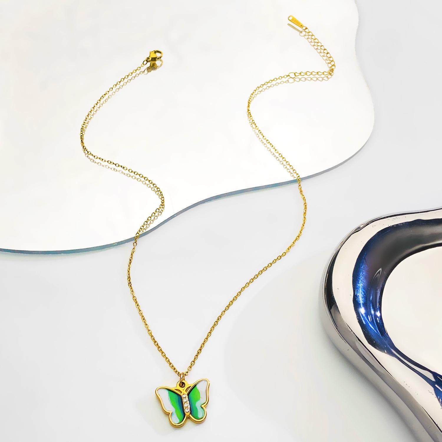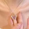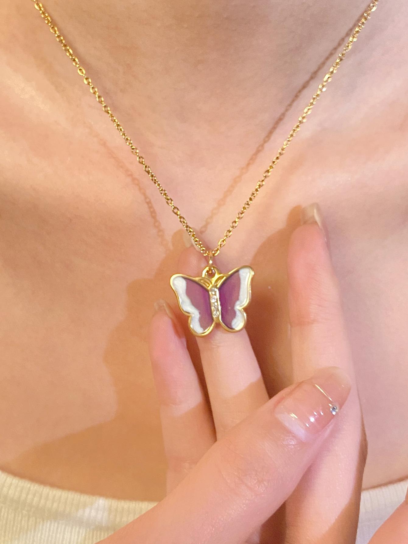Collar con colgante de mariposa de acero inoxidable con color esmaltado, para mujer, con diamantes, lujo ligero, mariposa dorada, cadena de clavícula de alta calidad