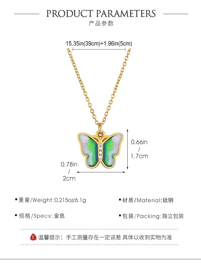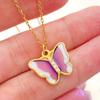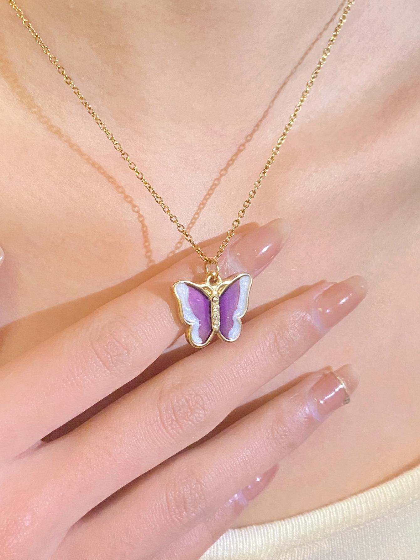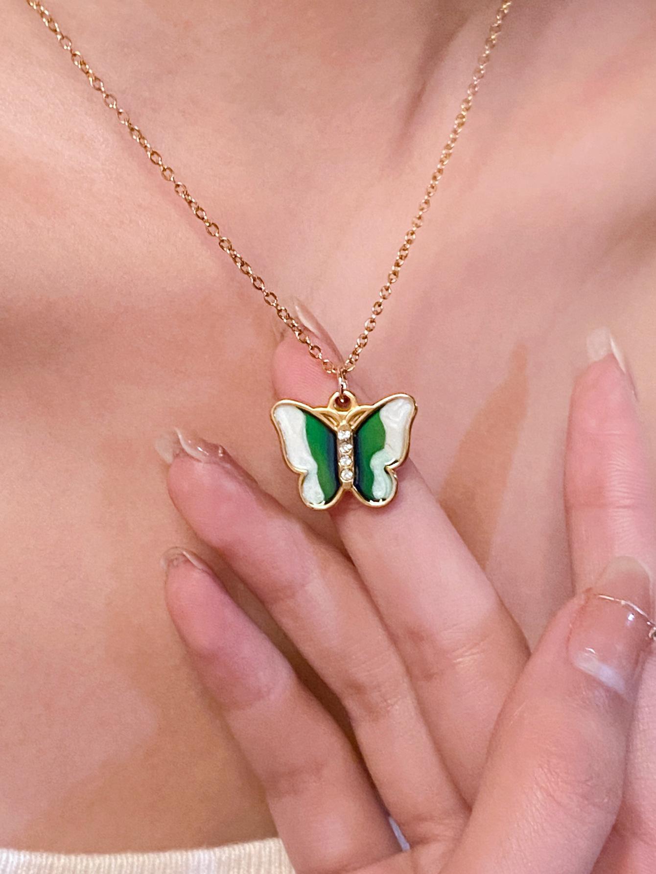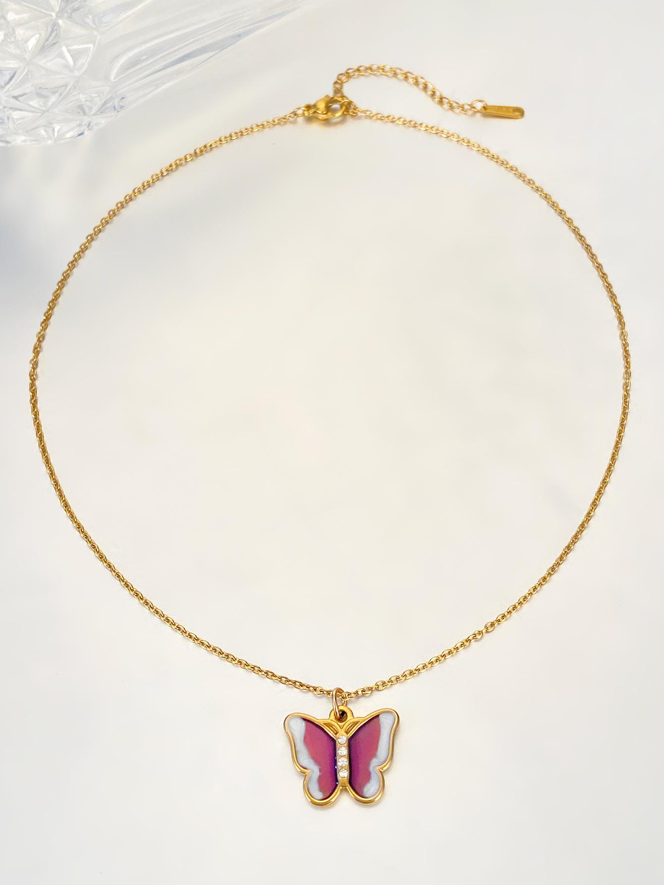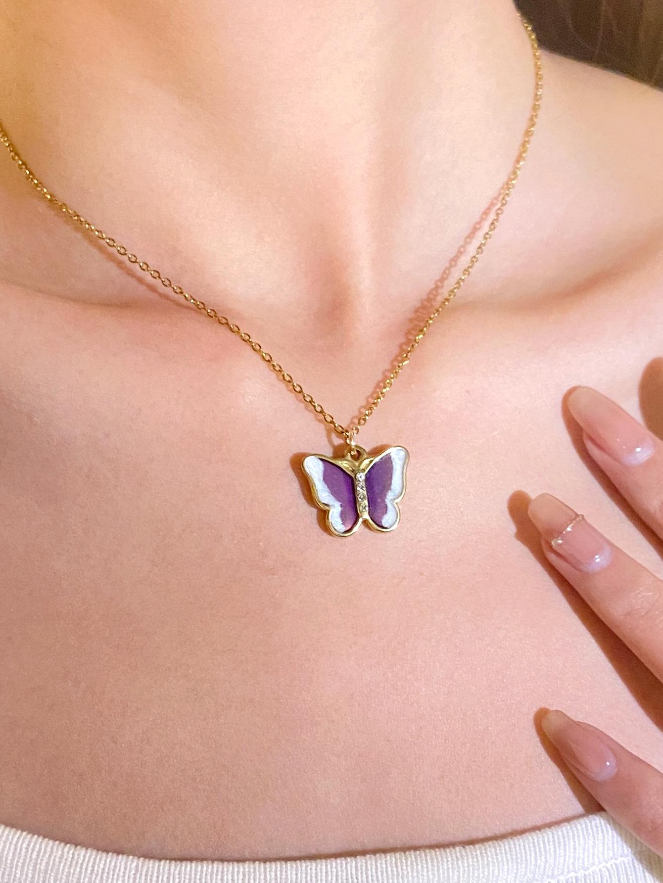 Collar con colgante de mariposa de acero inoxidable con color esmaltado, para mujer, con diamantes, lujo ligero, mariposa dorada, cadena de clavícula de alta calidad