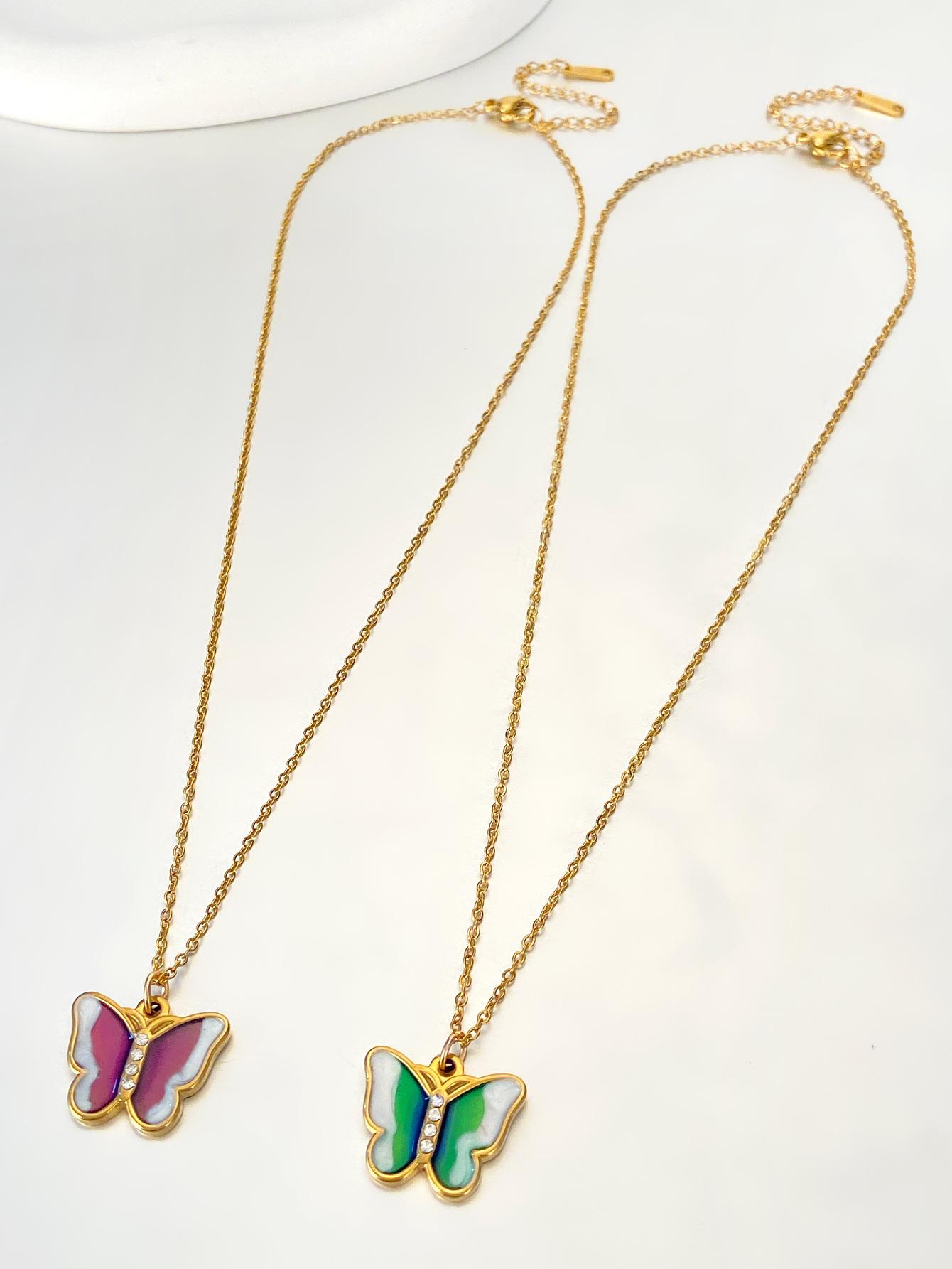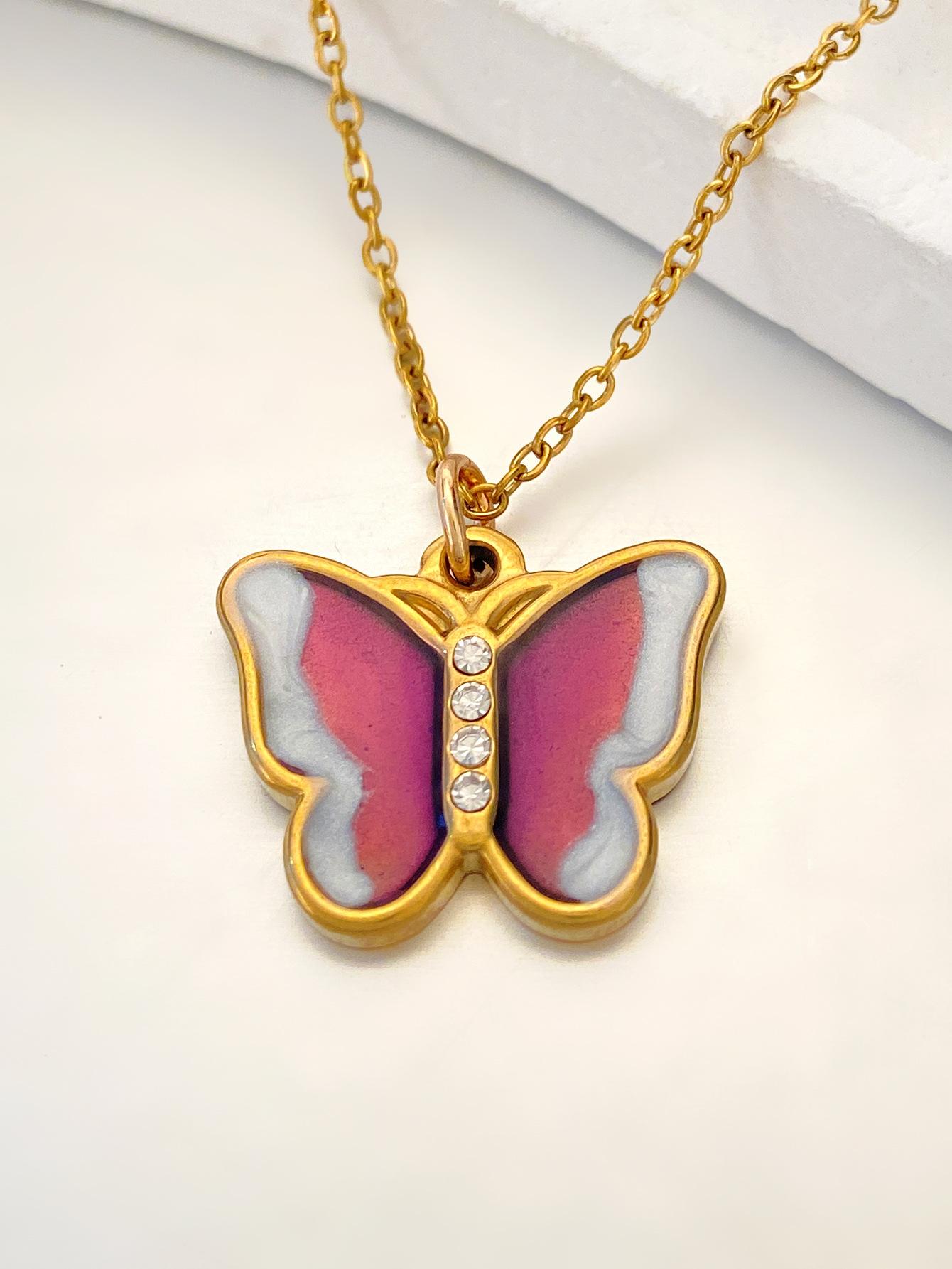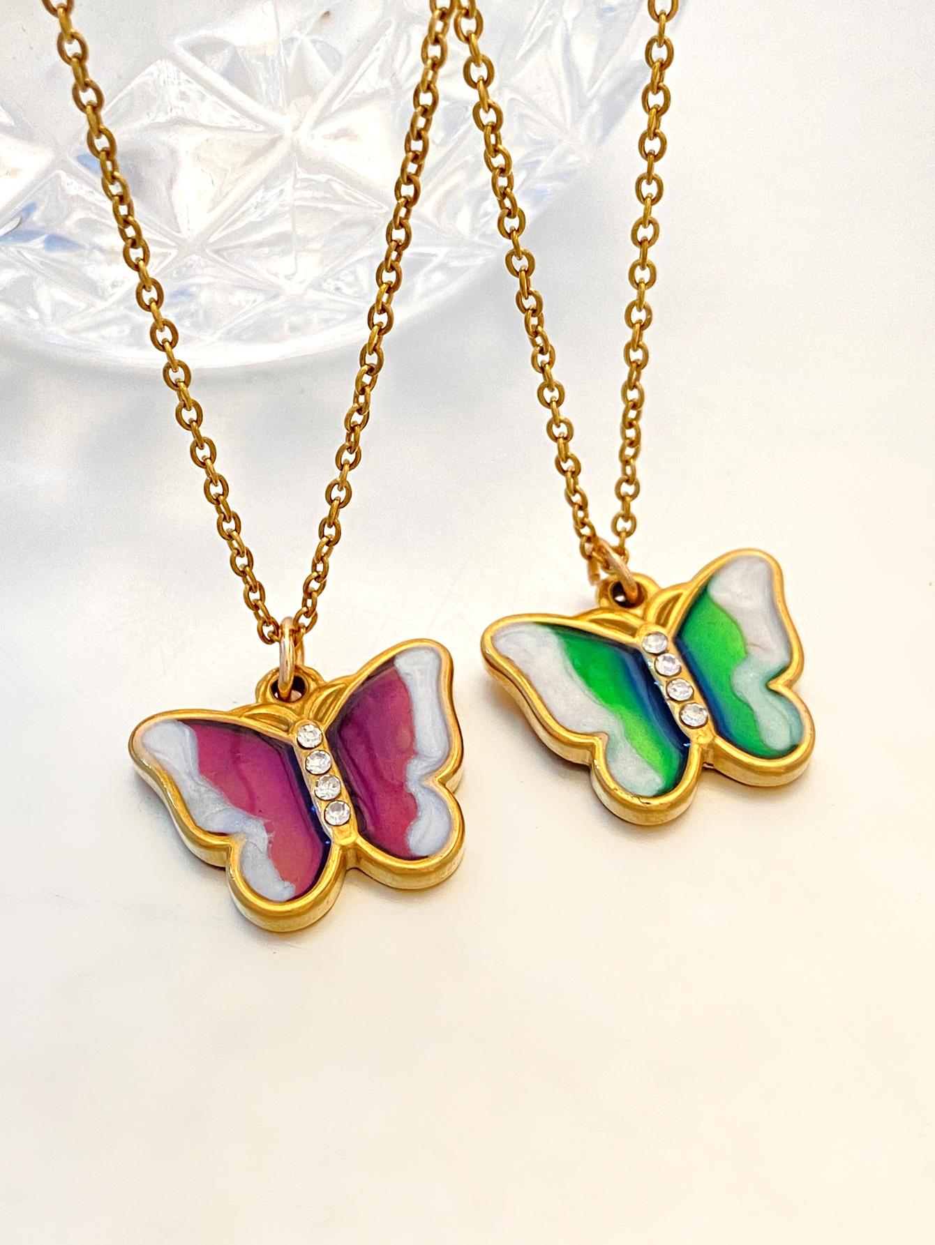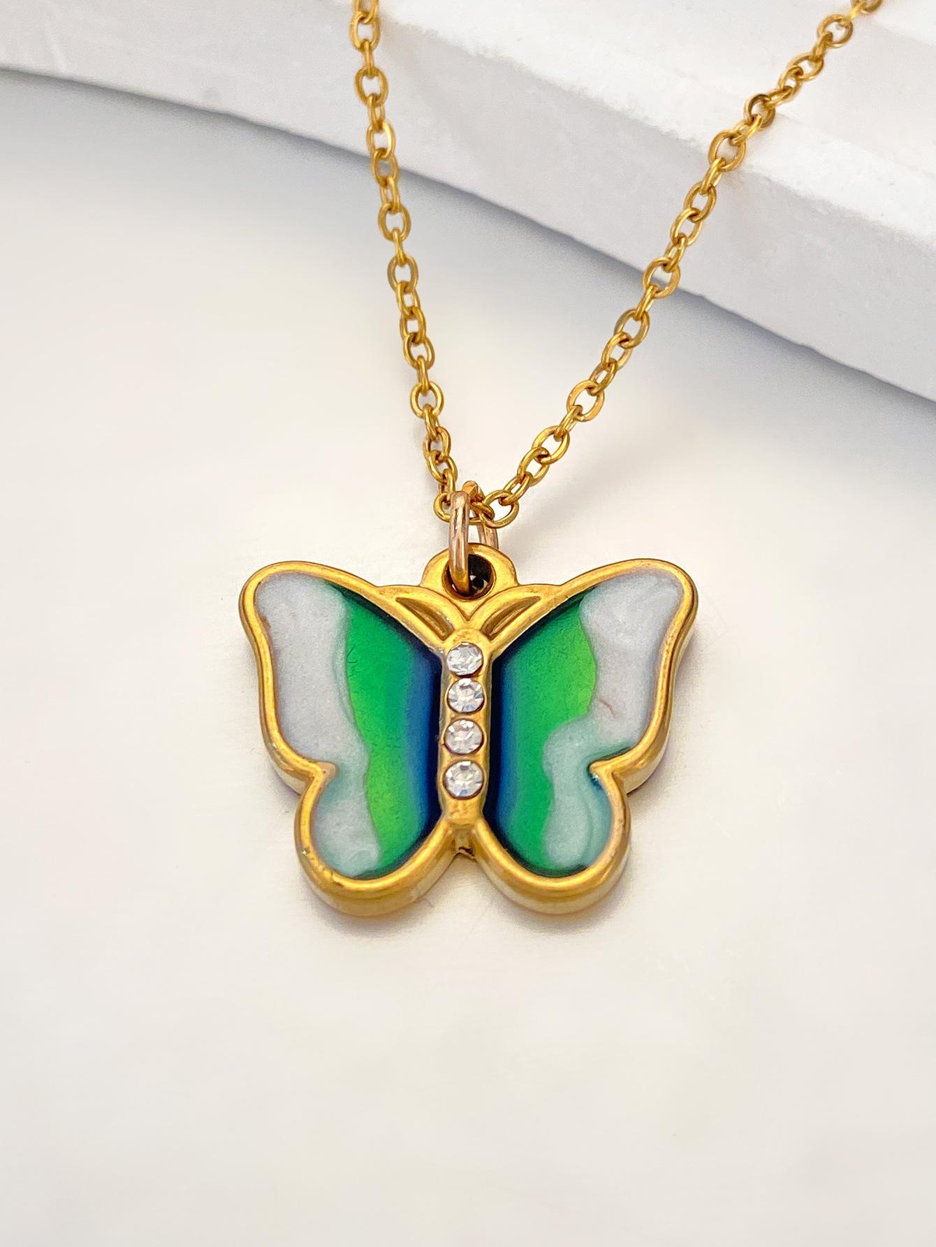 Collar con colgante de mariposa de acero inoxidable con color esmaltado, para mujer, con diamantes, lujo ligero, mariposa dorada, cadena de clavícula de alta calidad