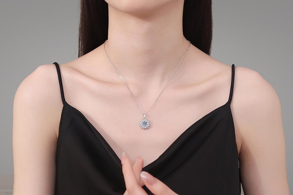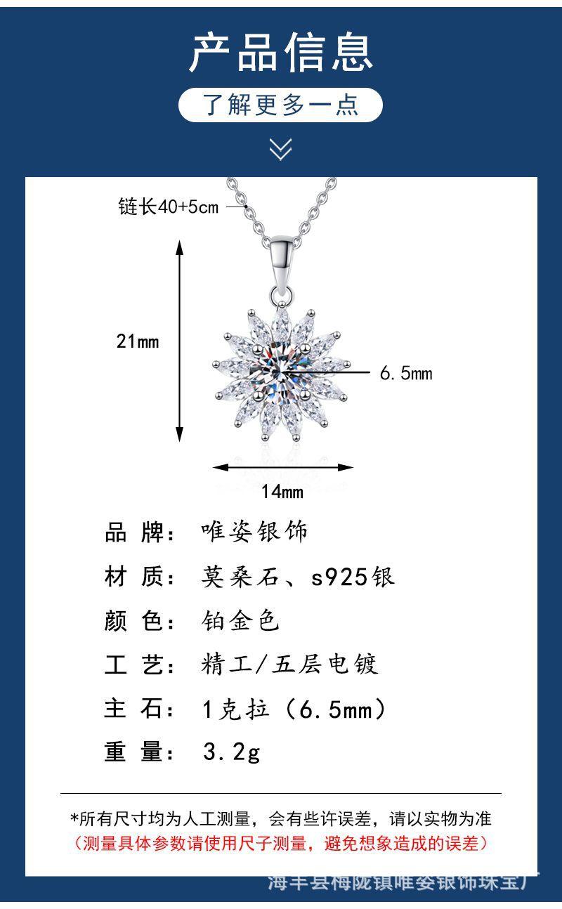 Collar original transfronterizo de plata esterlina s925 con colgante de moissanita brillante de 1 quilate, collar de moissanita de color D, venta al por mayor