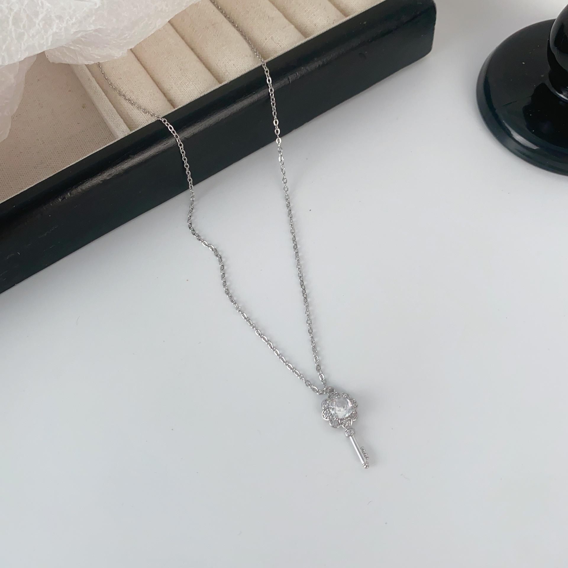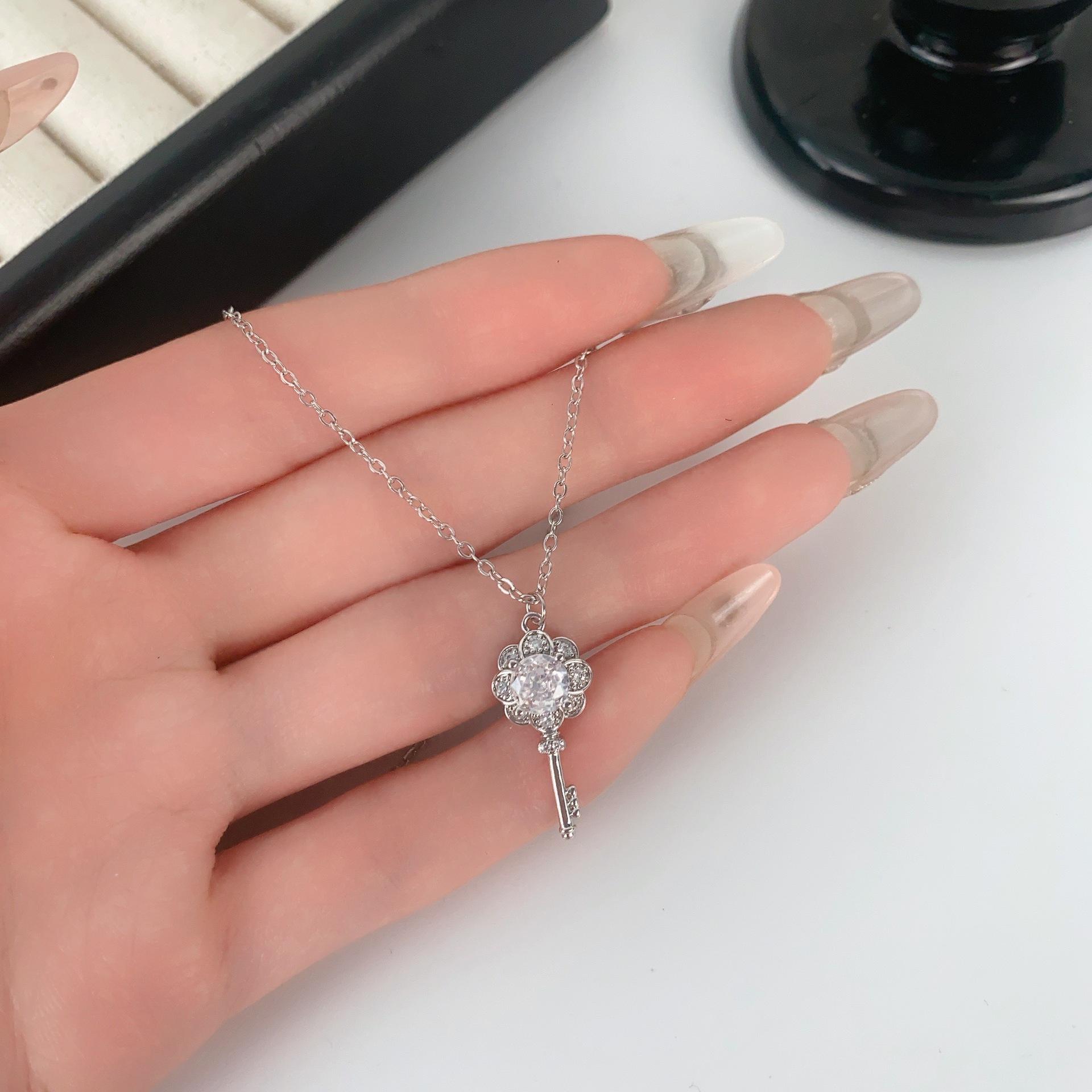 Collar con Colgante de Llave de Flor Incrustada de Diamantes de Lujo Ligero Cadena Exquisita para la Clavícula de Sensación Fresca Collar de Diseño Nicho de Alta Gama
