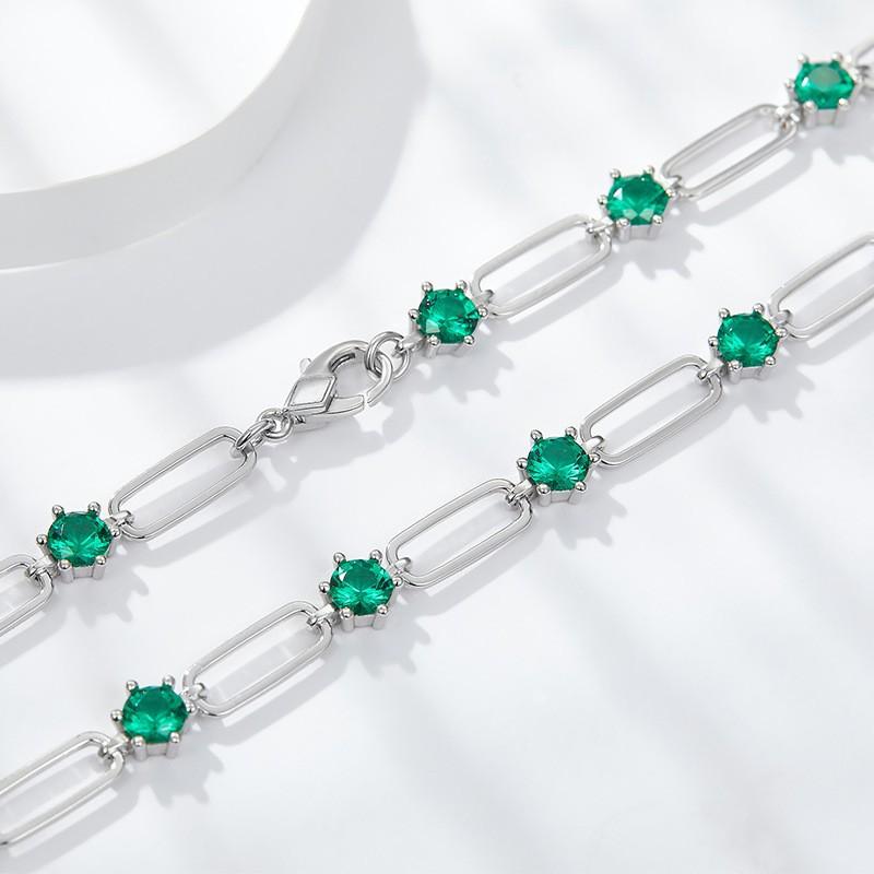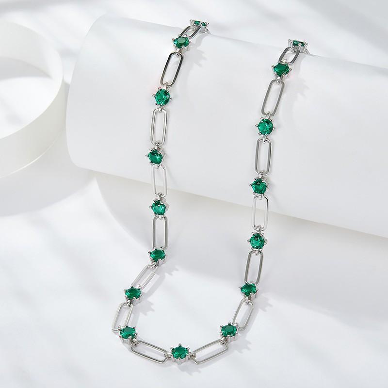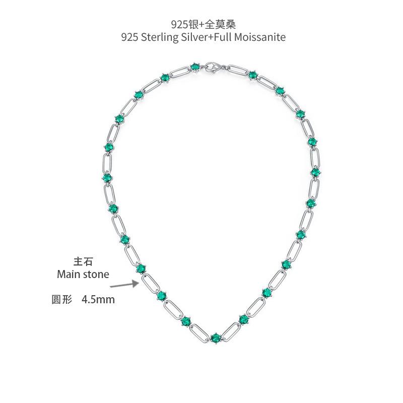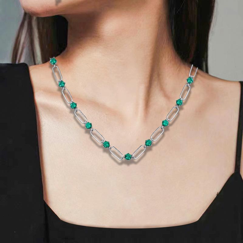 Collar Europeo y Americano Estilo Ins Apilado Redondo de 4.5 mm Emulación Esmeralda Plateado en Plata Oro de 18k Acolchado