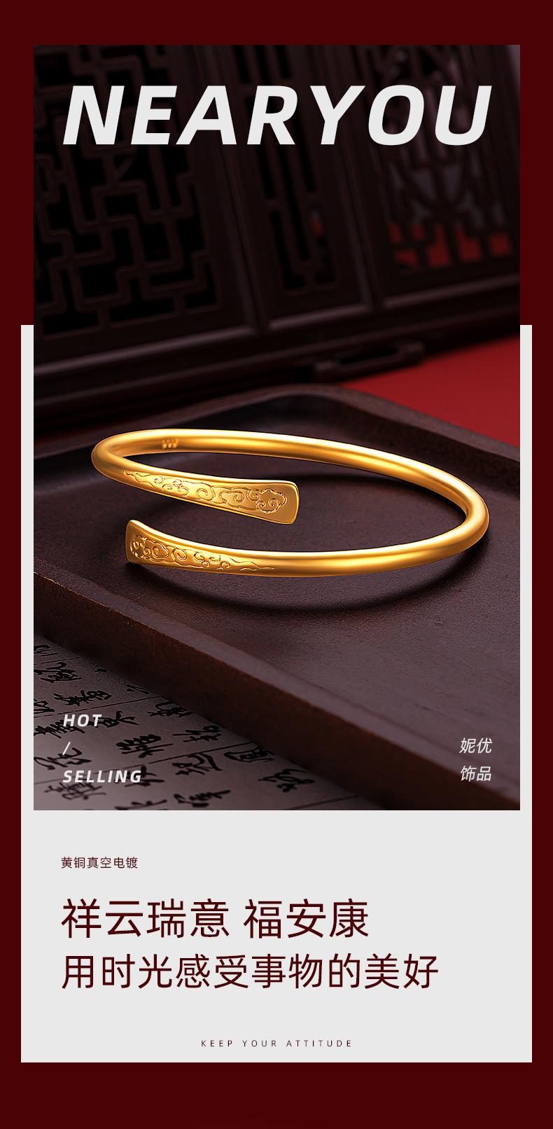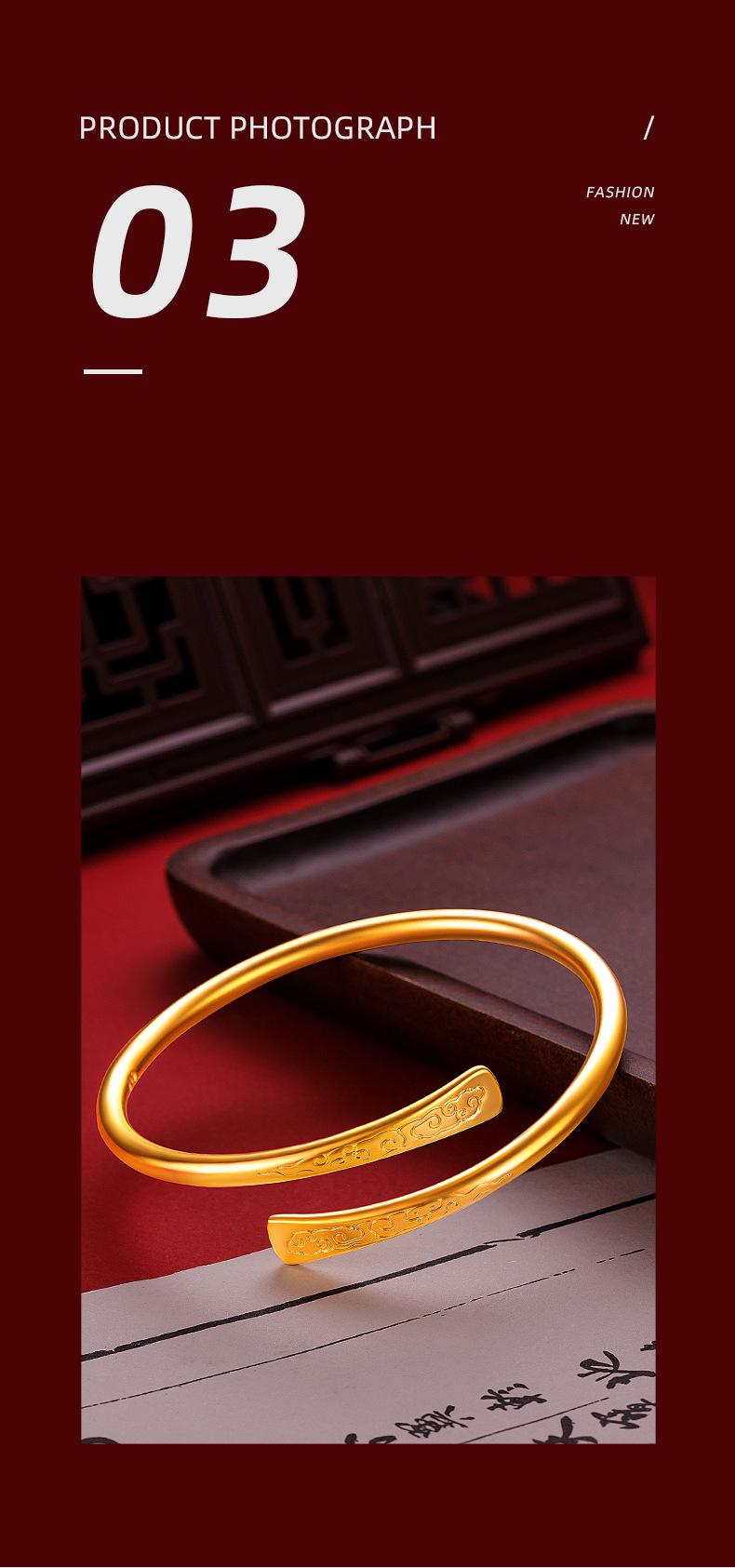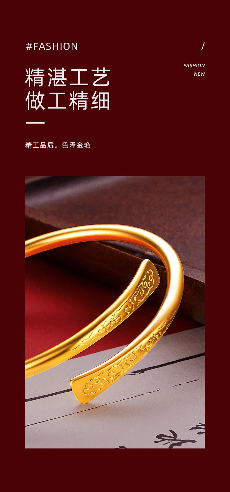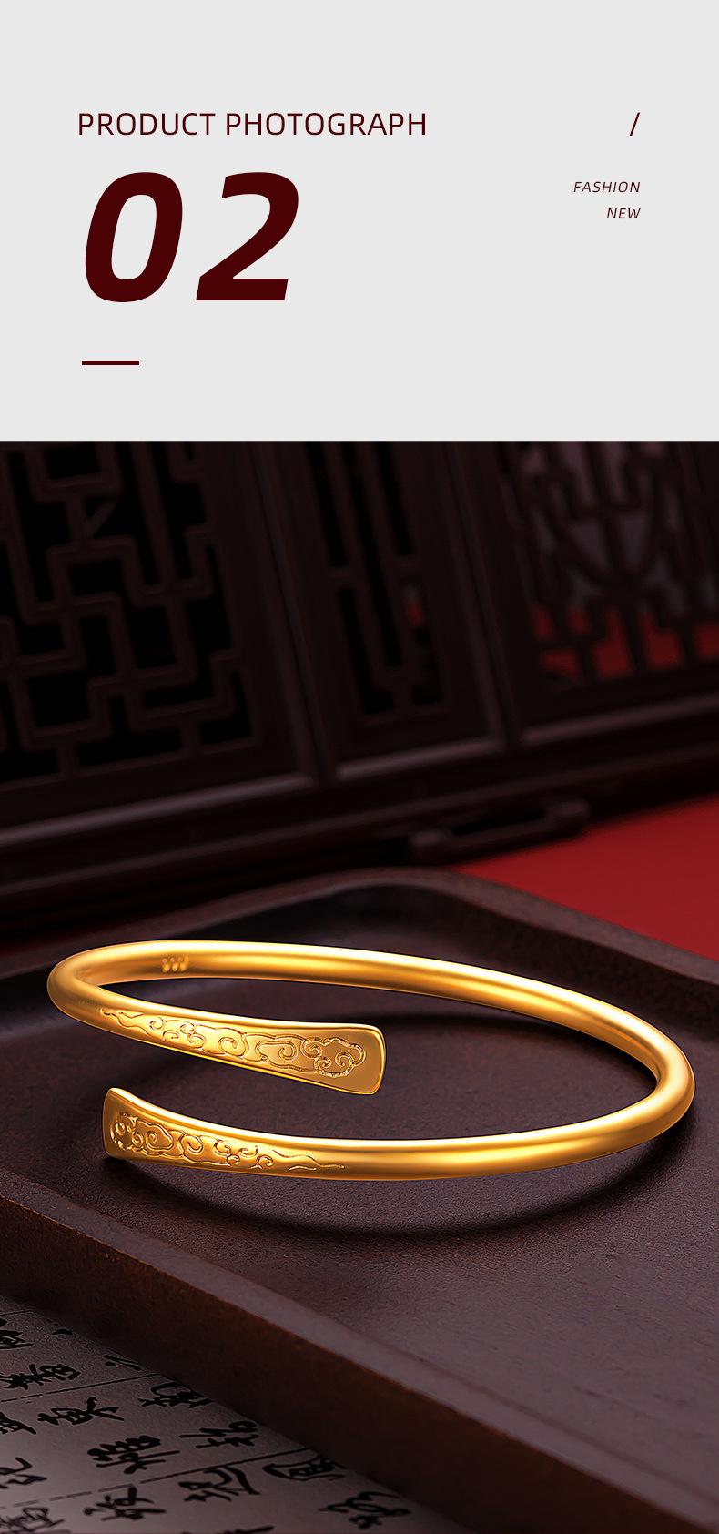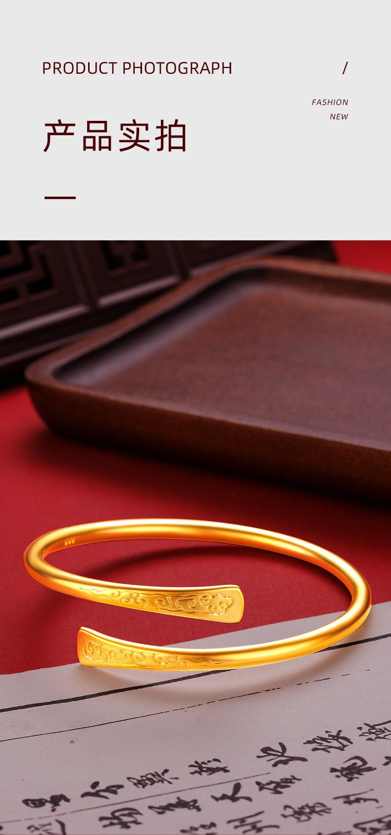 Pulsera Xiangyun de estilo antiguo chino Shajin de Vietnam, con apertura de herradura, chapada en oro y con color, estilo étnico, para mujer.