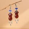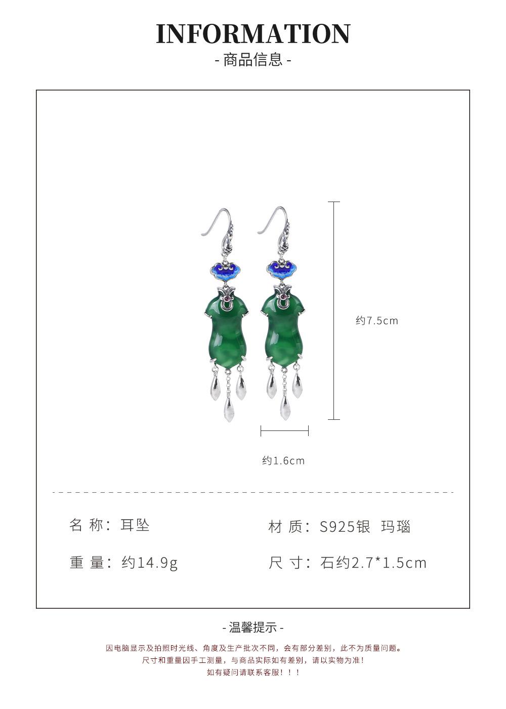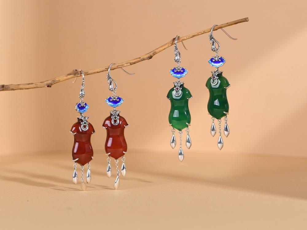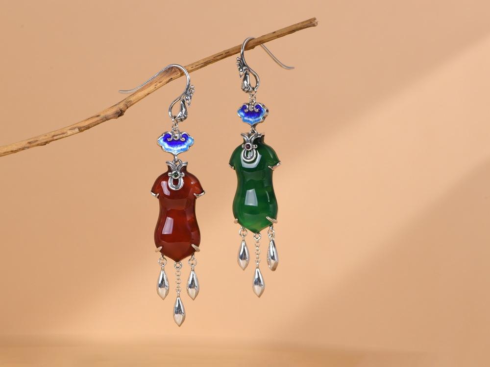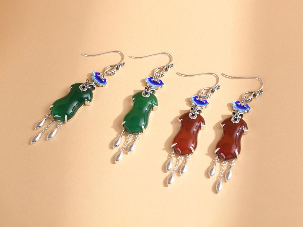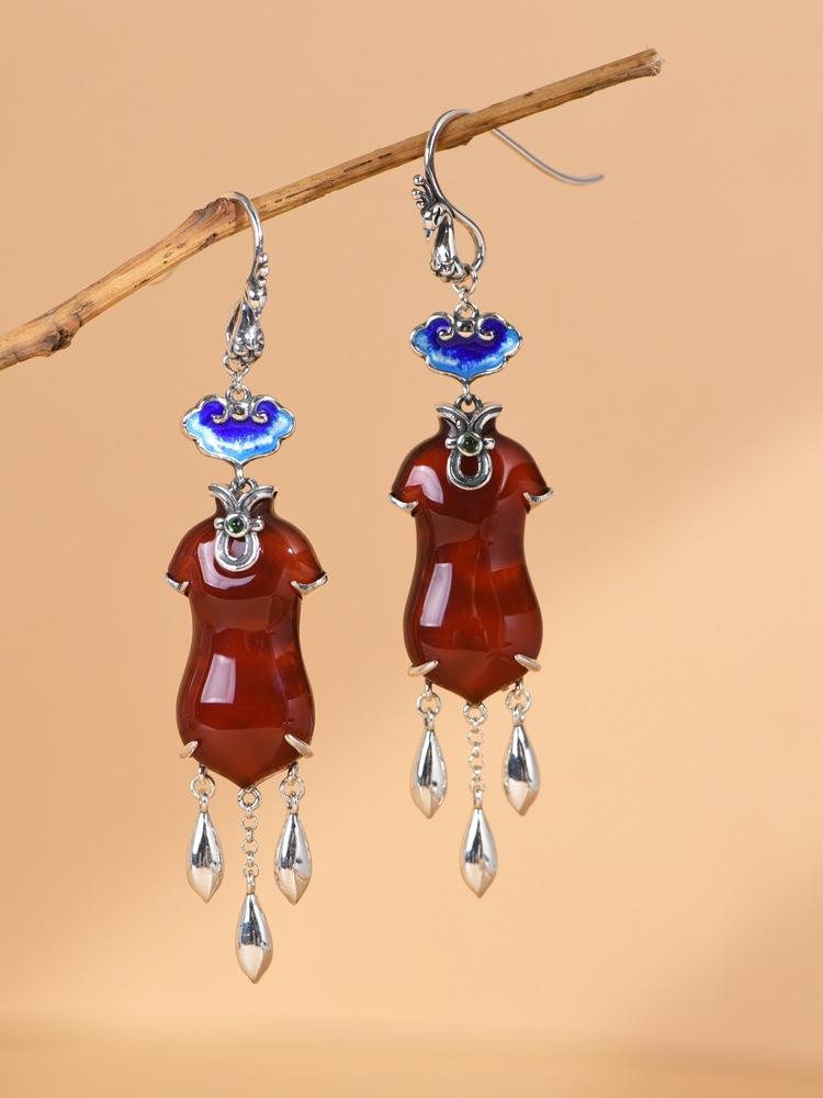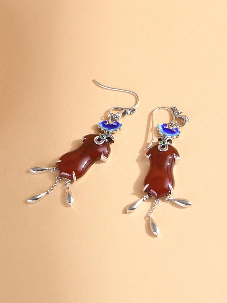 Pendientes Cheongsam Ruyi de ágata azul quemada antigua de plata S925 de Golden Deer King, pendientes de moda nacional para mujer