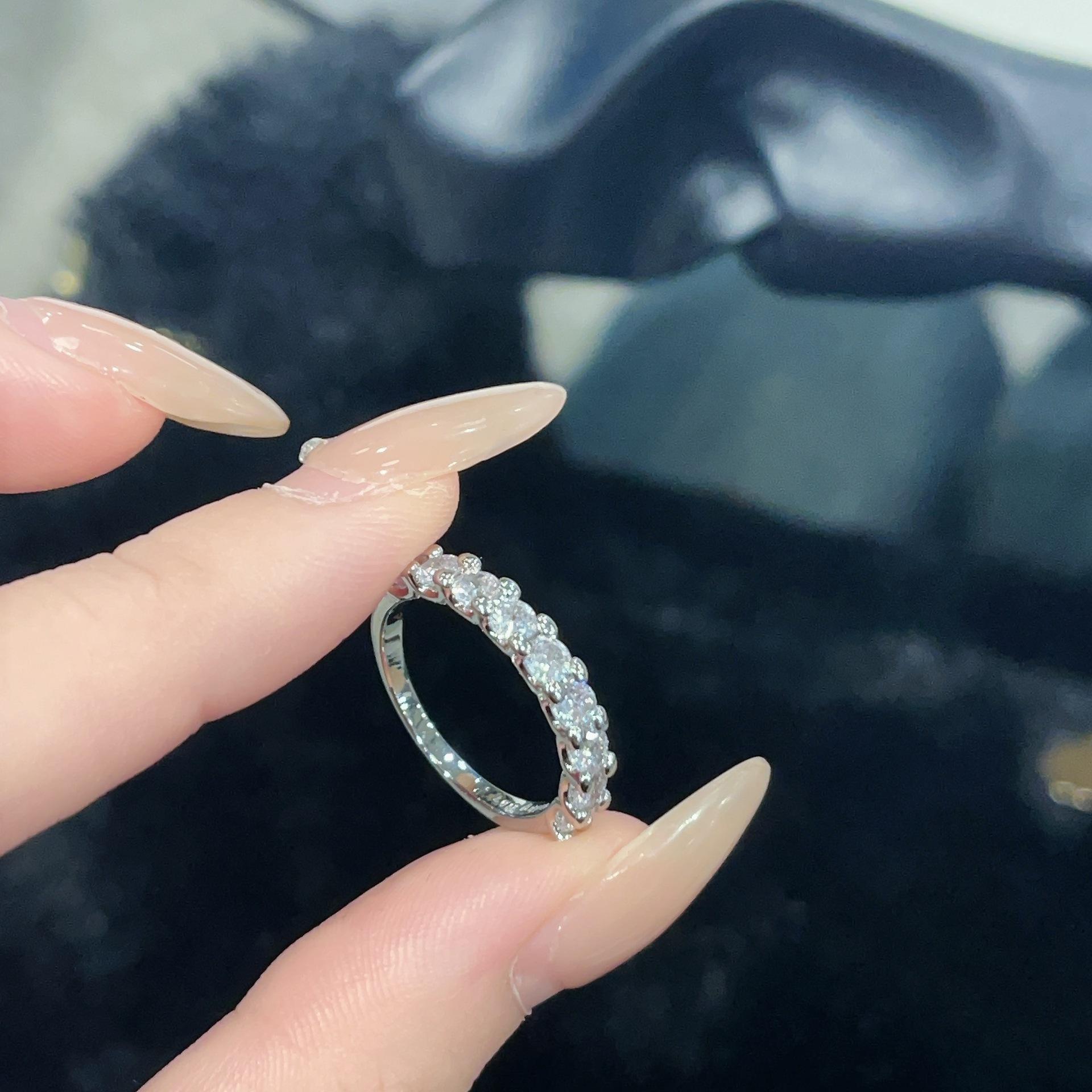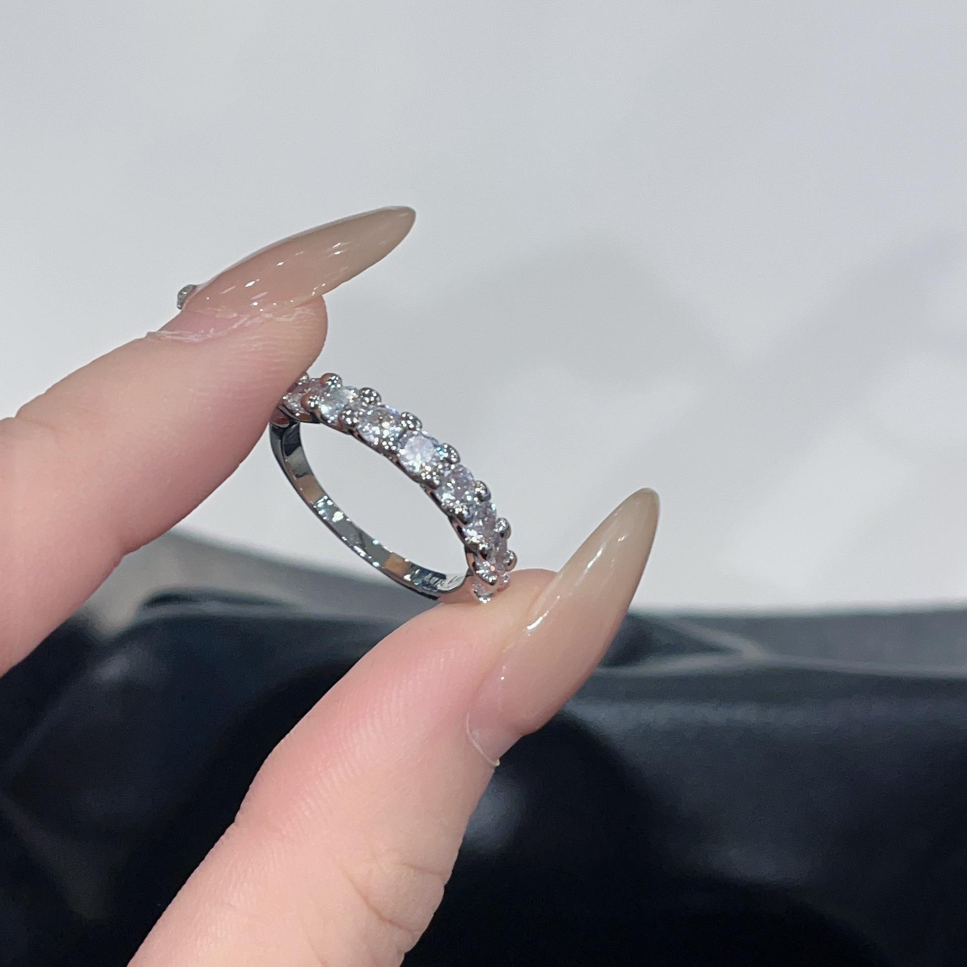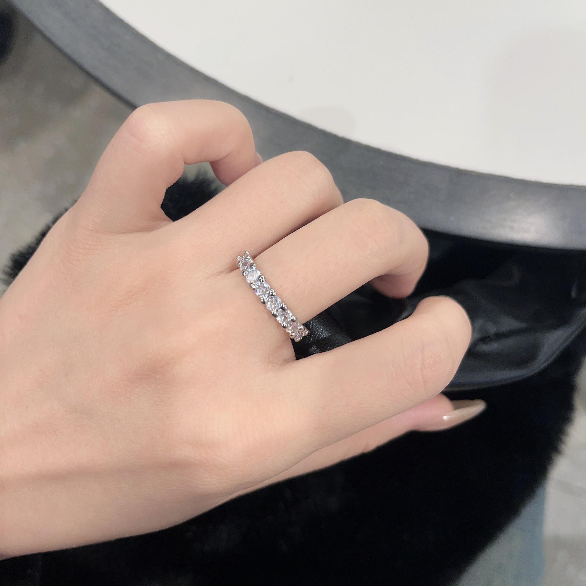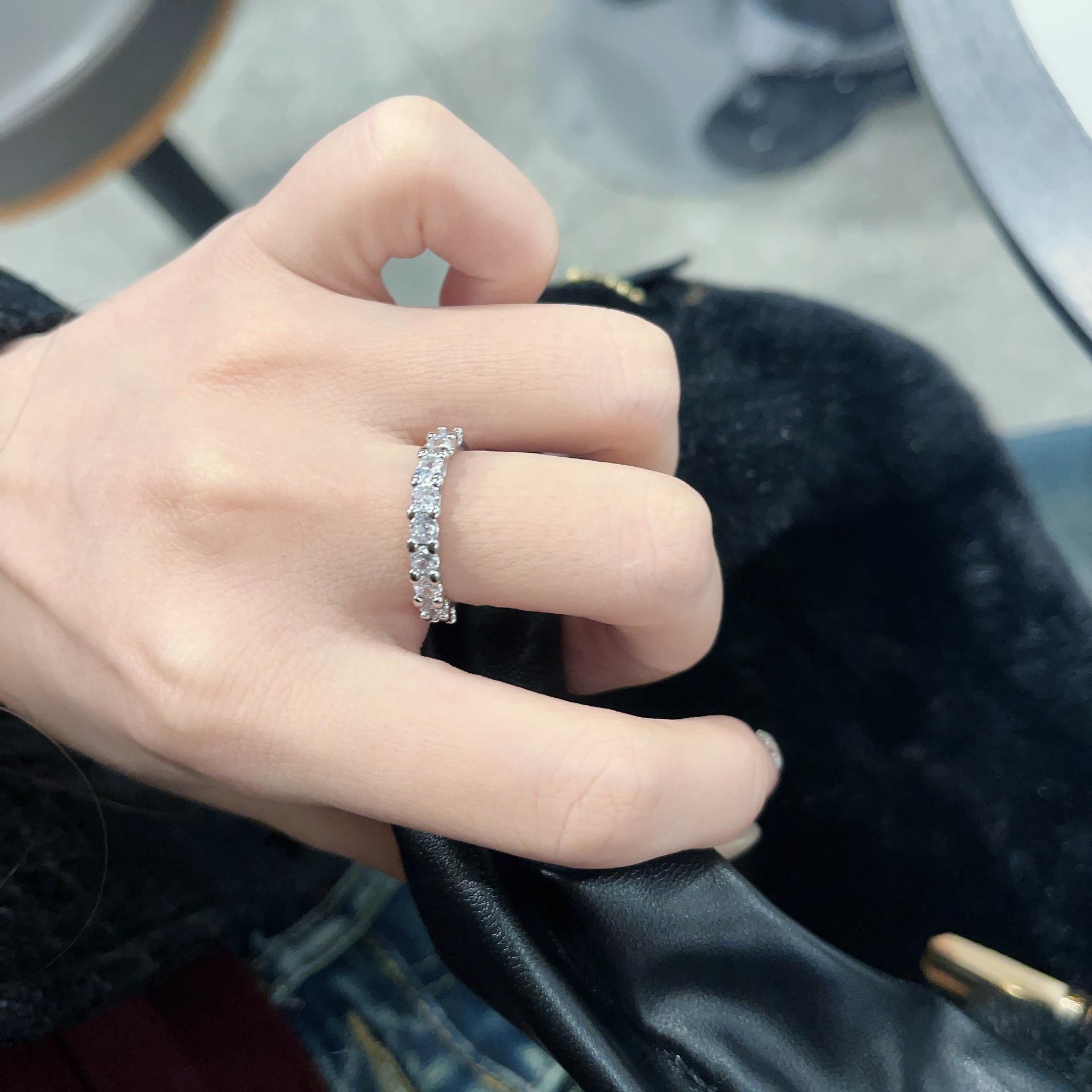 Anillo Cuadrado de Zirconio de Alta Gama Estilo Frío de Conjunto Abierto para Mujer Moda Ins Diseño Nicho Versátil Anillo Simple para Dedo Índice