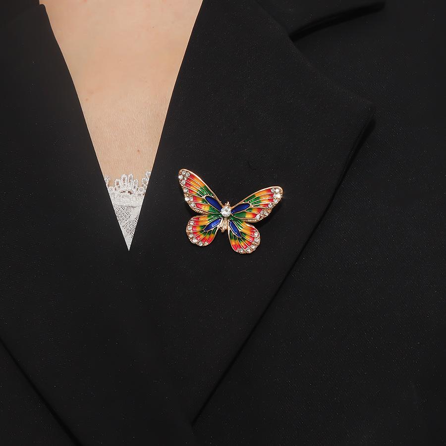 Broche de mariposa de color europeo y americano aleación diamante gota aceite textura retro accesorios para ramilletes de ropa al por mayor pins de insectos