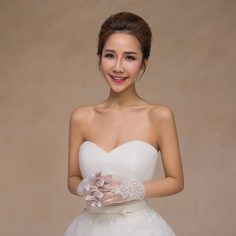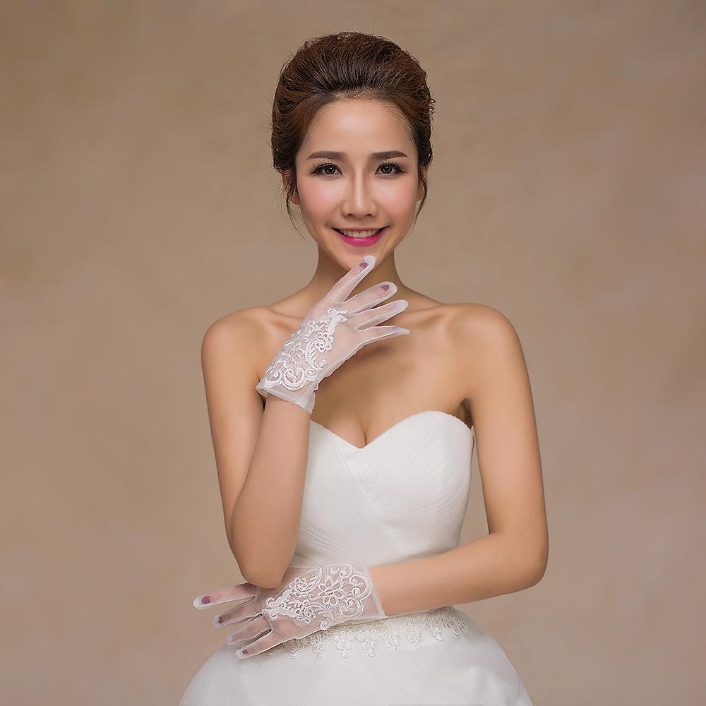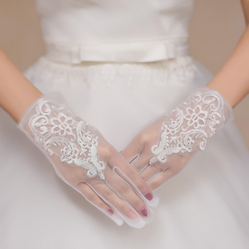 Guantes de Boda para Novia 2019 Nuevos Accesorios de Boda Dedo Encaje Malla Lazo Guantes de Novia para Mujeres
