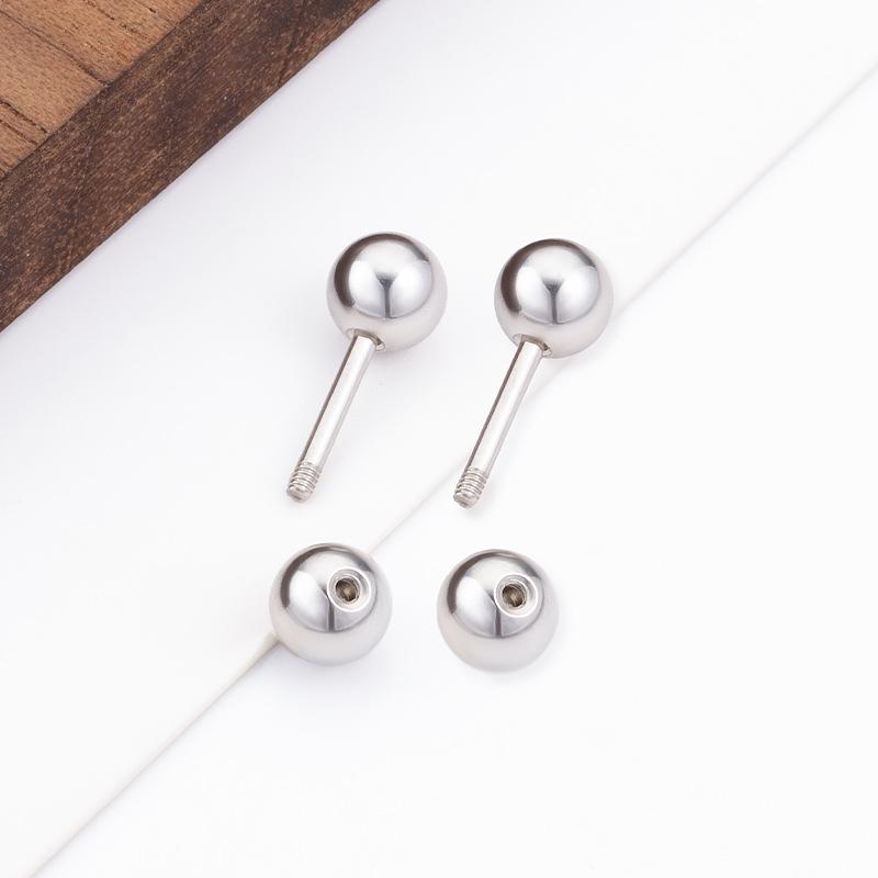 Acero Inoxidable Uña Tornillo Twist Joyería Simple Personalizado Aretes Barra Acero Bola Perforación de Oreja Aretes Multitalla