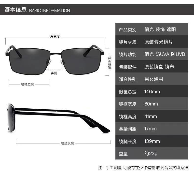 Nuevas gafas de sol polarizadas de metal de moda, gafas de sol de montura cuadrada de alta gama para hombres que conducen con espejo especial para el conductor.