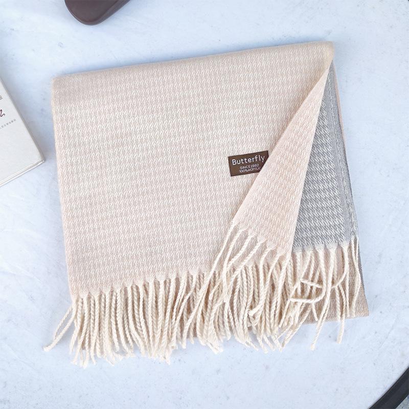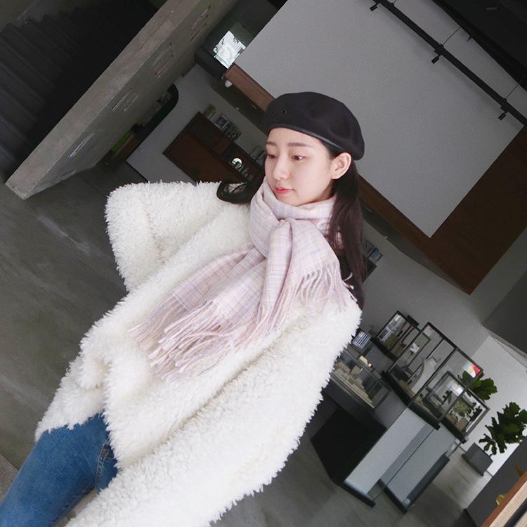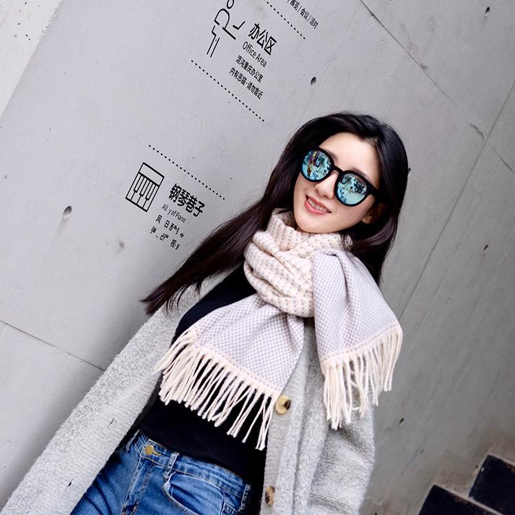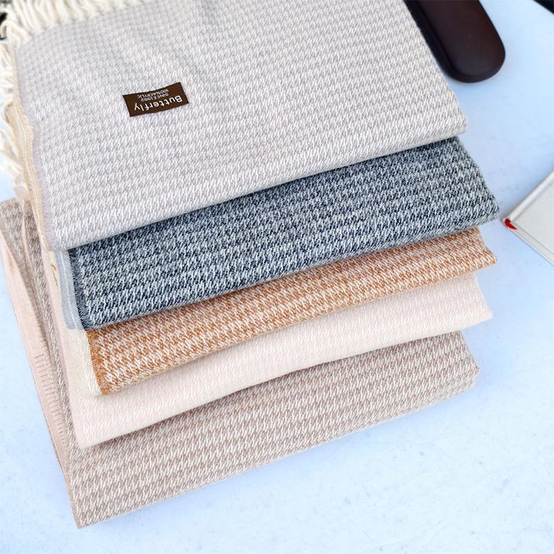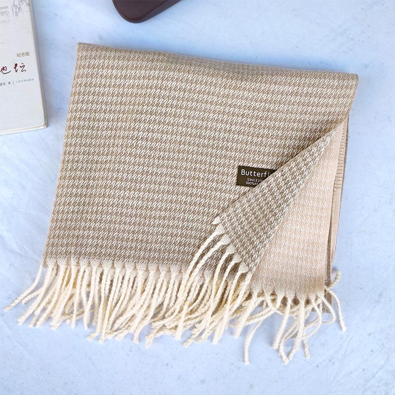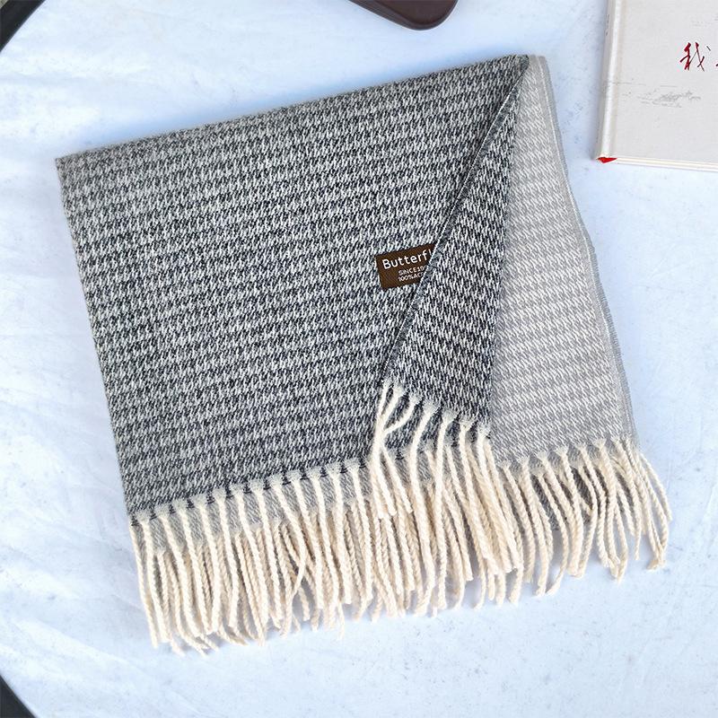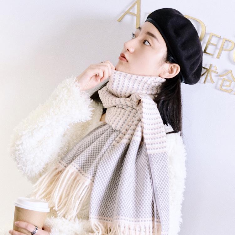 Bufanda Cálida de Borlas de Cachemira Imitación Otoño e Invierno Chal de Invierno a Cuadros de Doble Cara Bufanda Versátil Bufanda Cálida Suave y Cera para Mujer