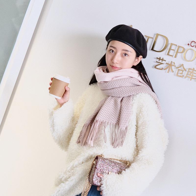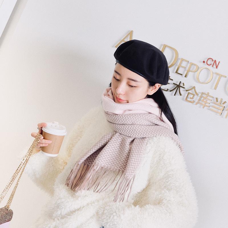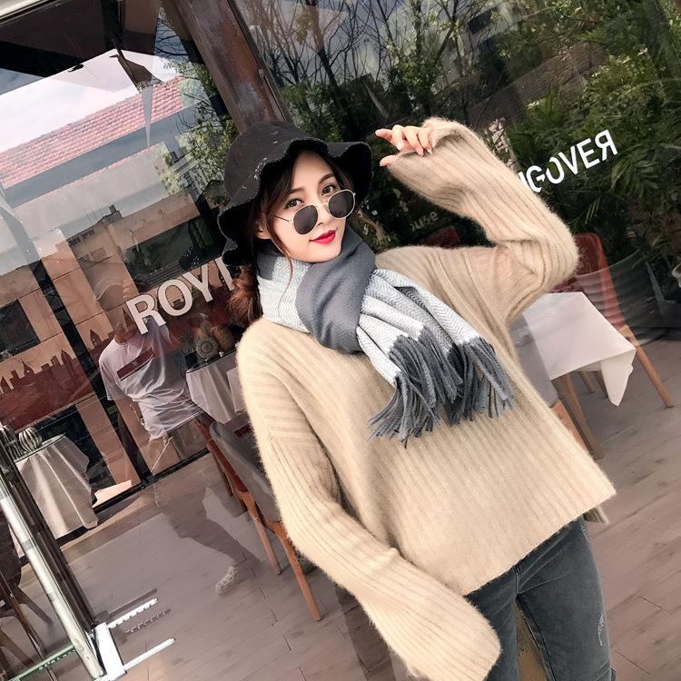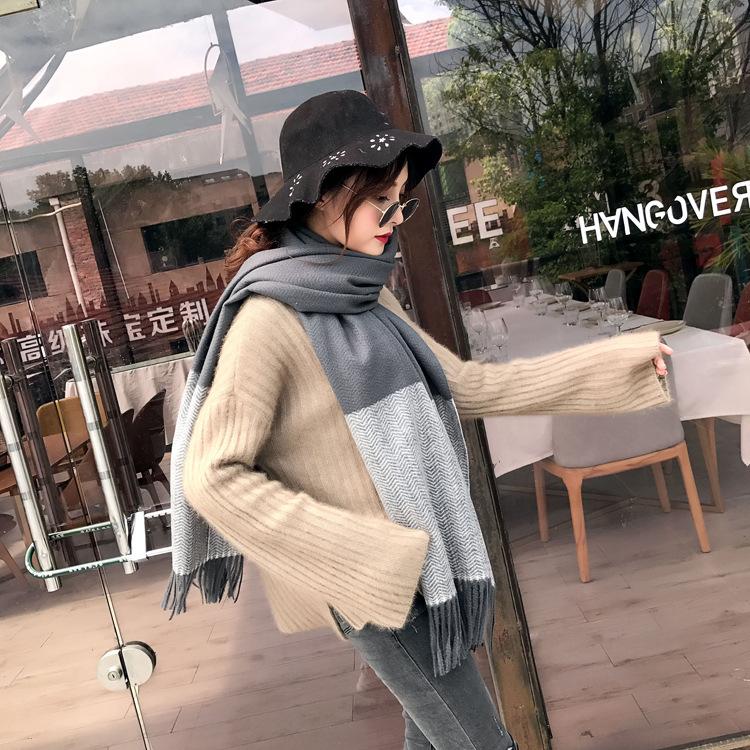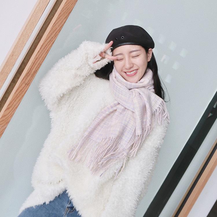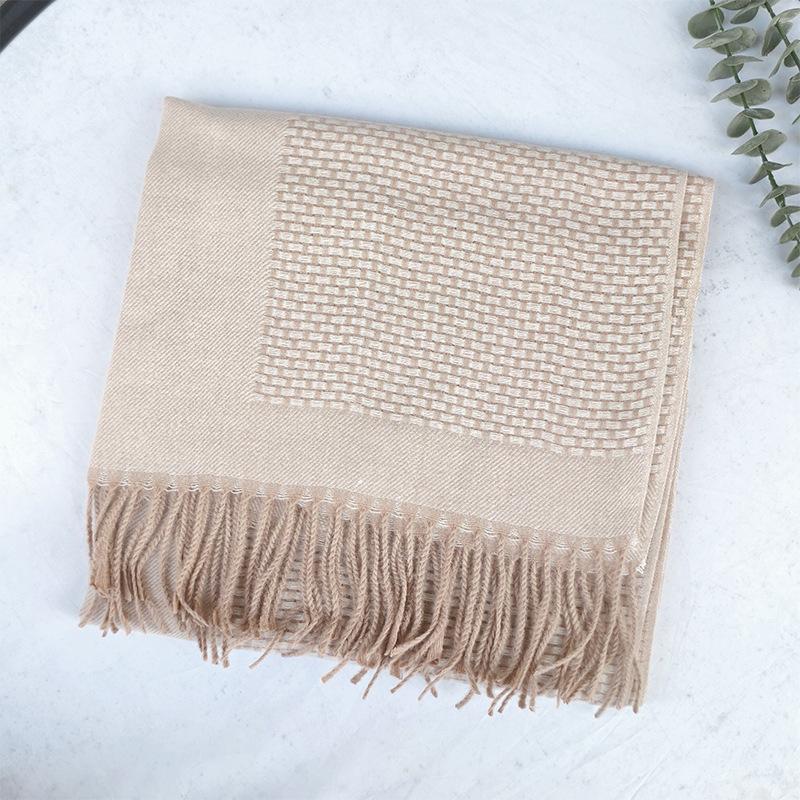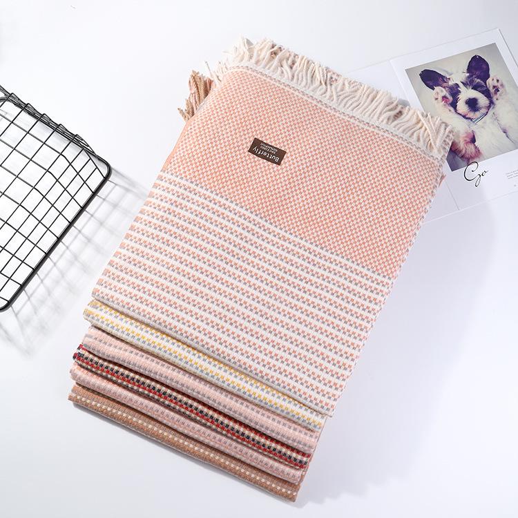 Bufanda Cálida de Borlas de Cachemira Imitación Otoño e Invierno Chal de Invierno a Cuadros de Doble Cara Bufanda Versátil Bufanda Cálida Suave y Cera para Mujer