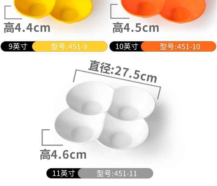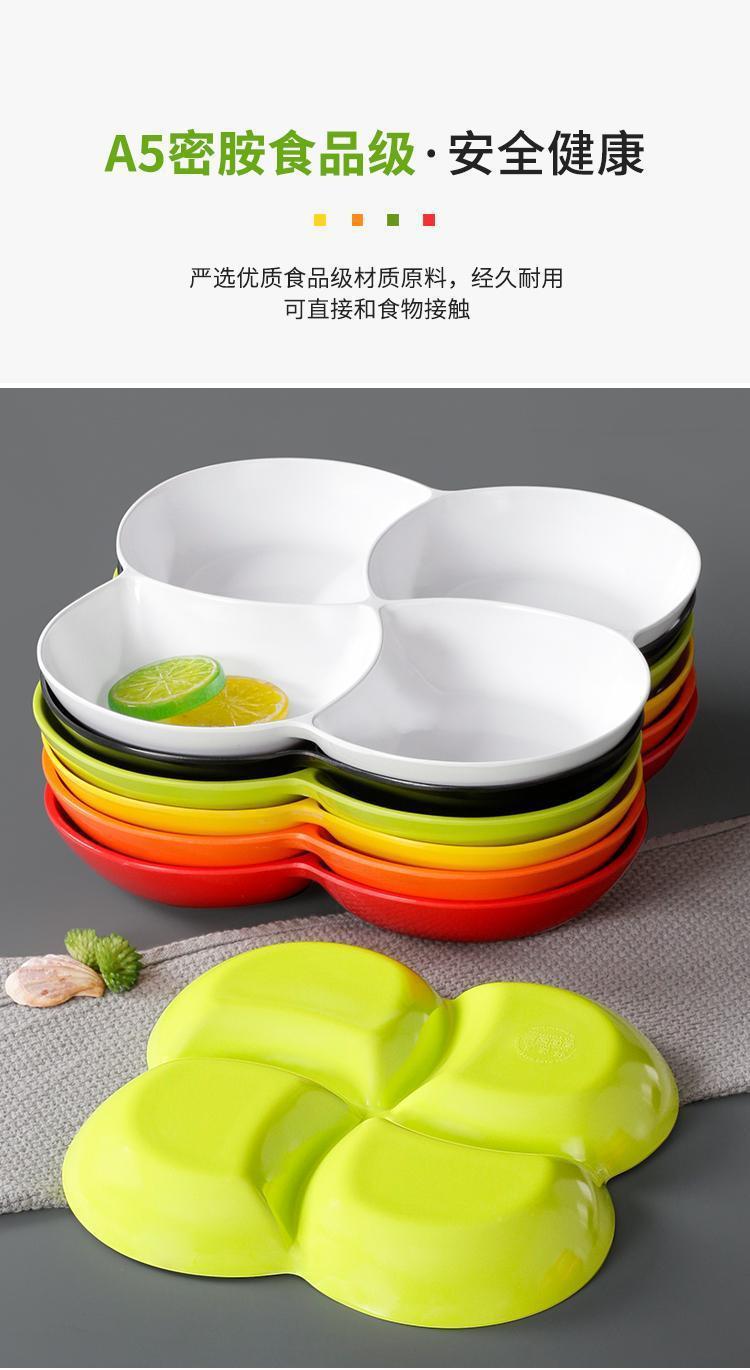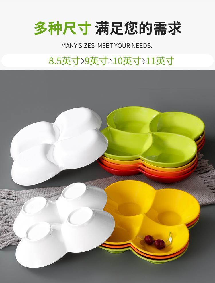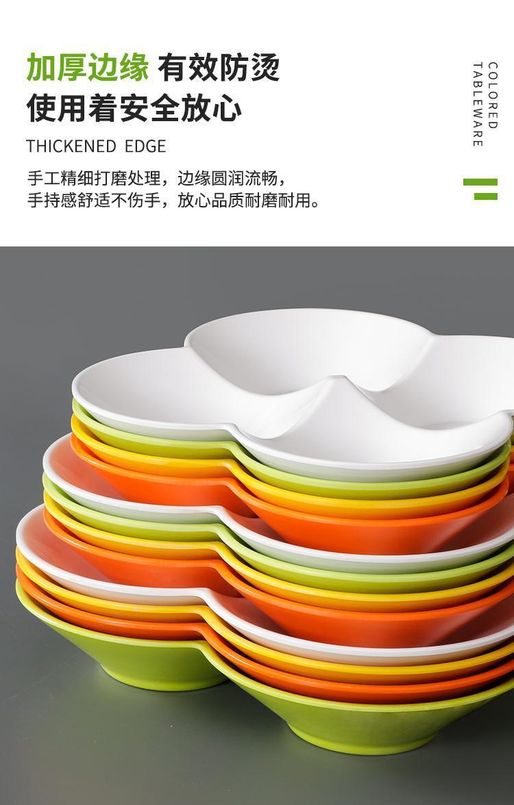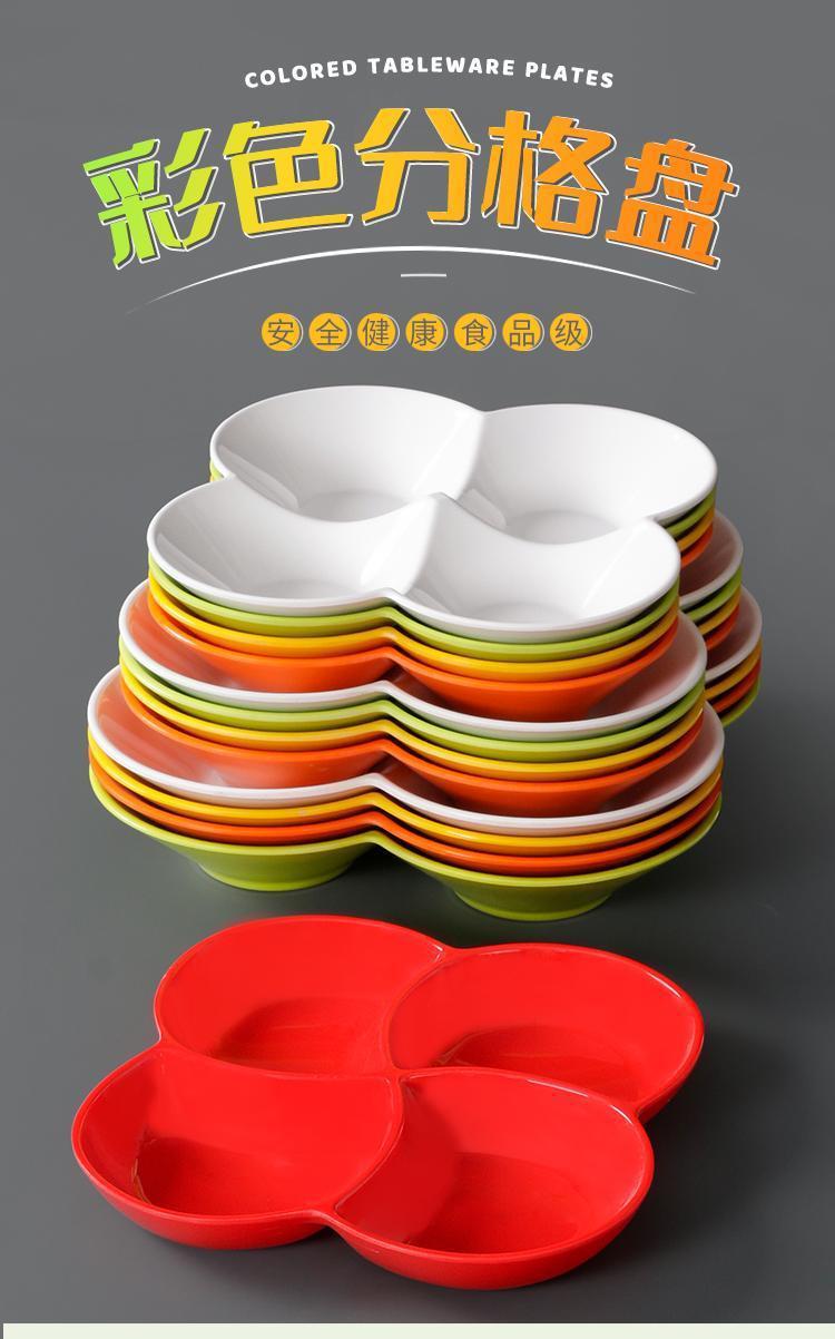 Plato de vajilla de porcelana de imitación de melamina, plato de plástico para restaurante, plato de cena dividido KTV, plato de olla caliente para restaurante comercial
