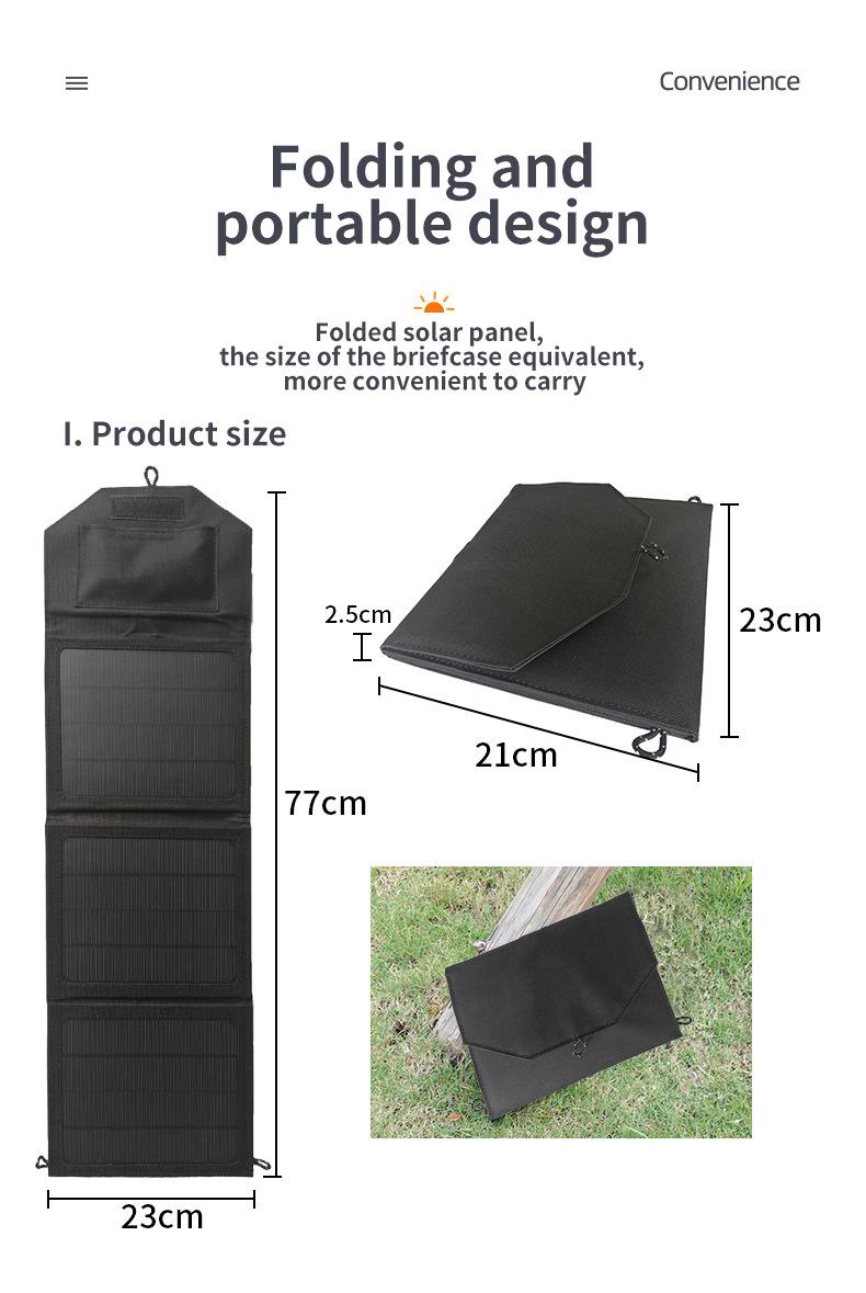Bolsa solar plegable de 18 W, nuevo panel solar portátil para exteriores, placa de carga solar móvil