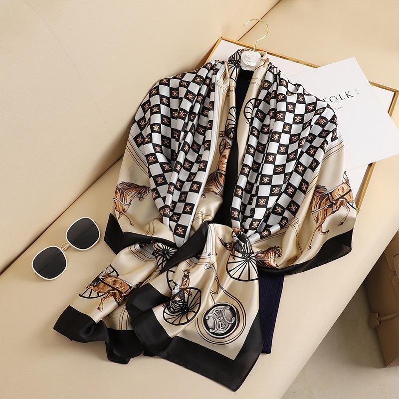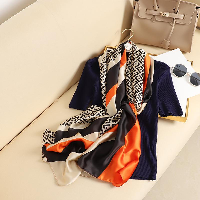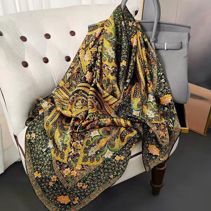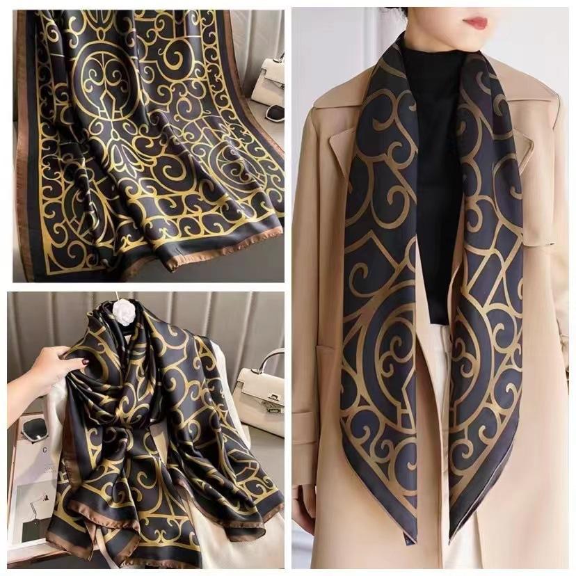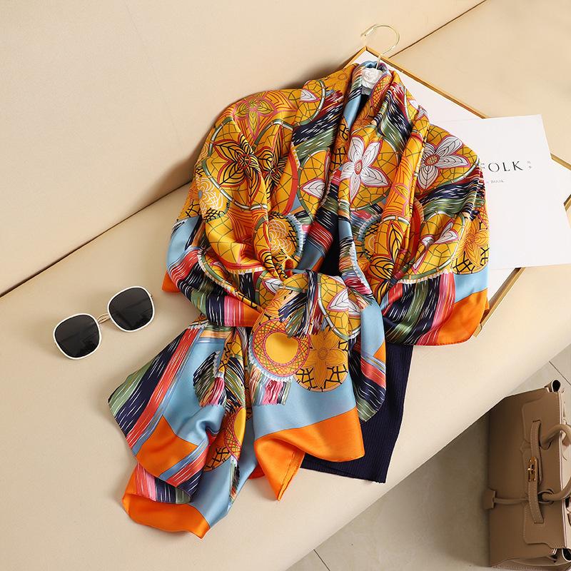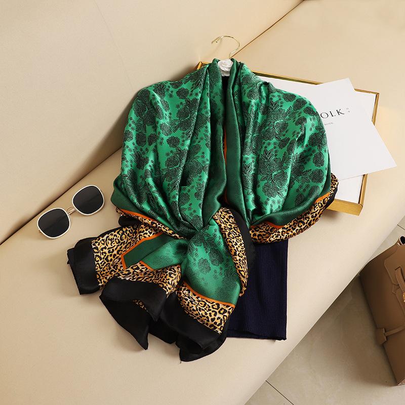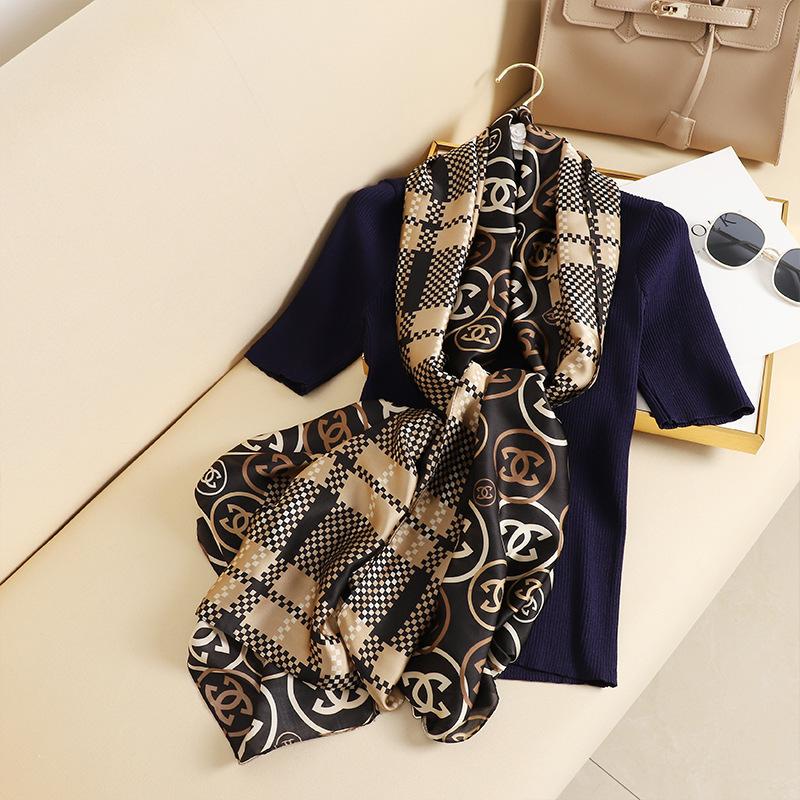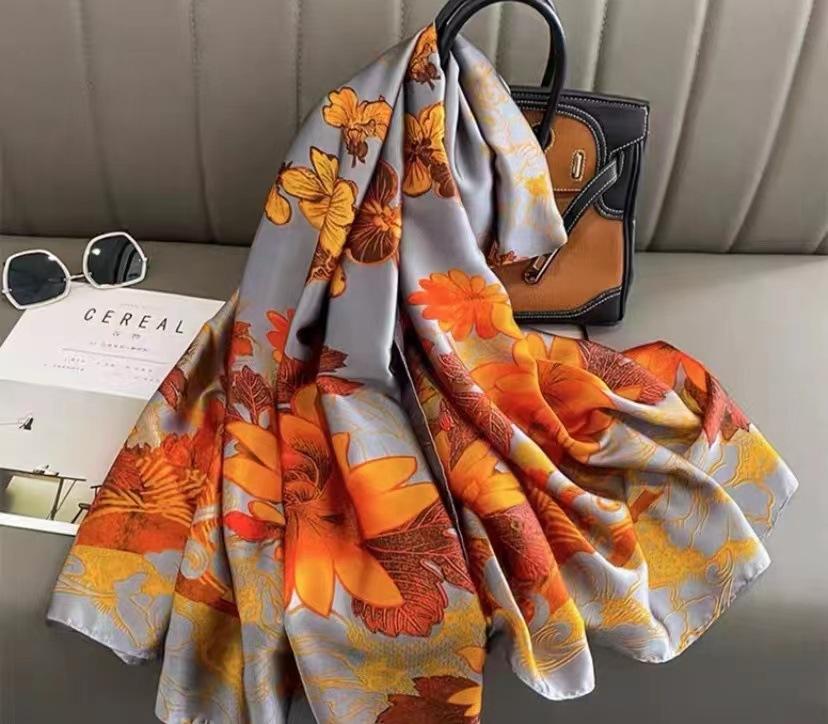 Nueva versión coreana de chal de seda artificial con gardenia, bufanda decorativa para mujer, chal Joker, protector solar, toalla de playa, venta al por mayor