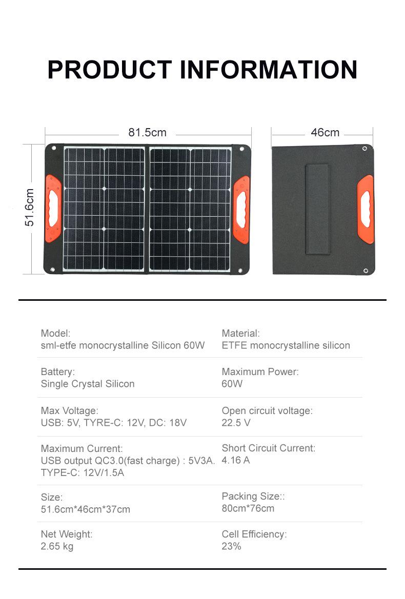 Panel solar plegable de 60 W, nuevo, 2024, para uso doméstico y exterior, portátil, con carga pequeña.
