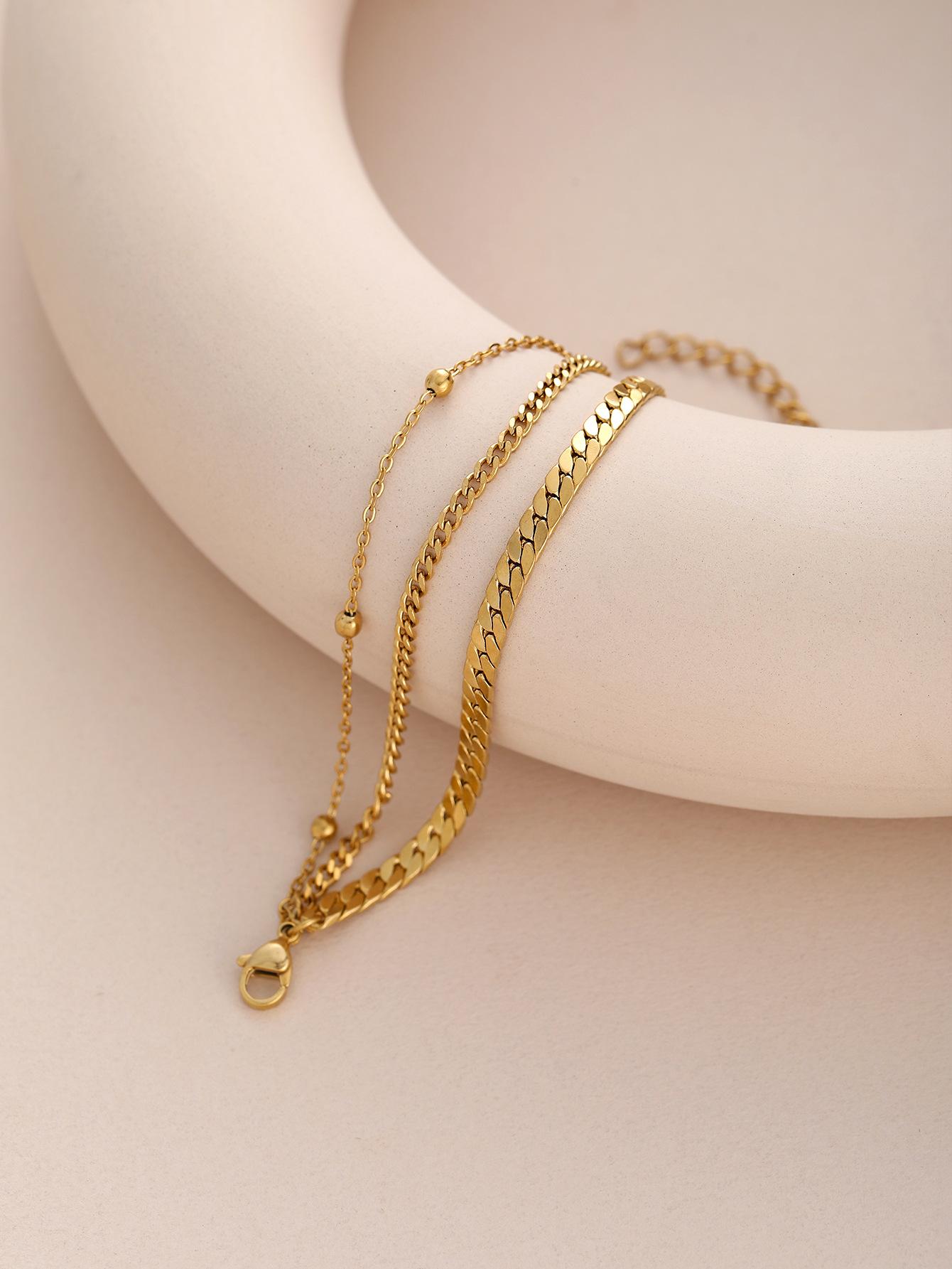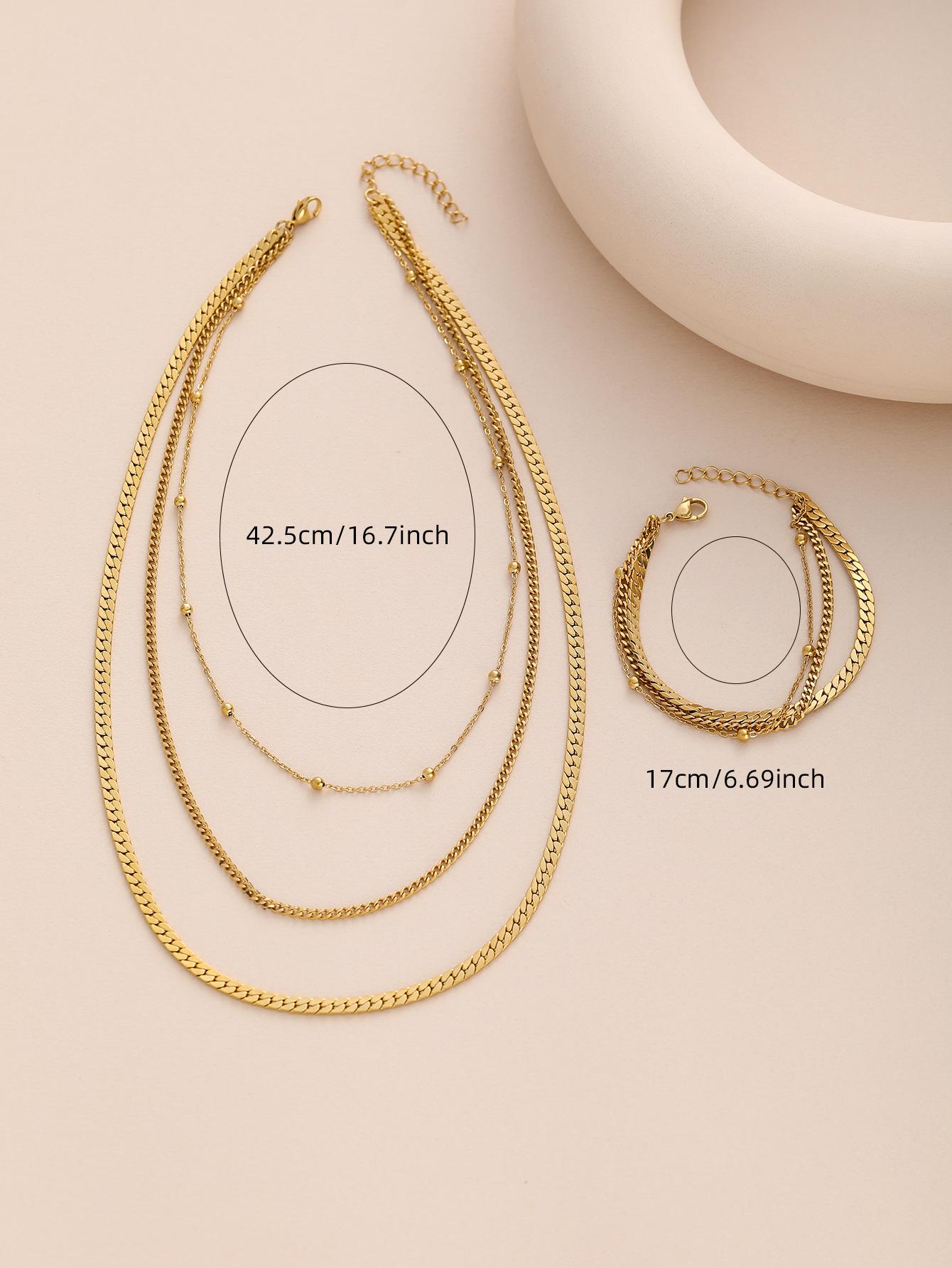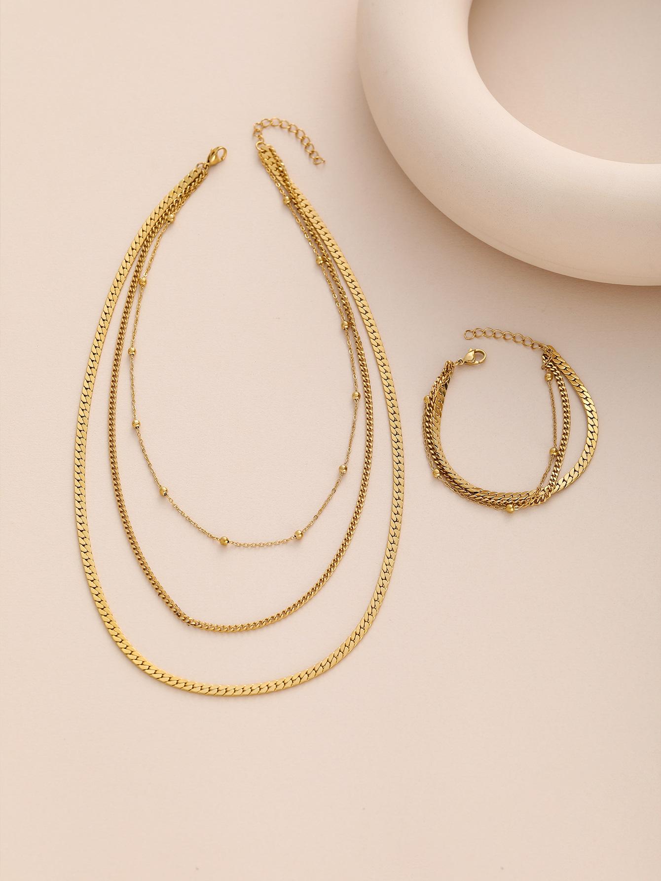 Collar de Cuentas Redondas Doradas de Múltiples Capas Estilo Europeo y Americano de Moda Pulsera Versátil de Acero Inoxidable Juego de Joyería que No se Desvanece para Mujeres