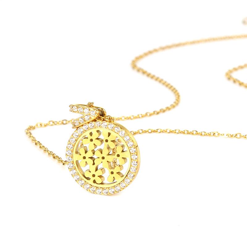 Collar de acero de titanio con diseño de flores, colgante redondo, ligero, de lujo, sencillo y elegante, exquisito collar de alta gama, cadena para clavícula.