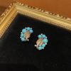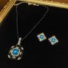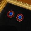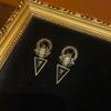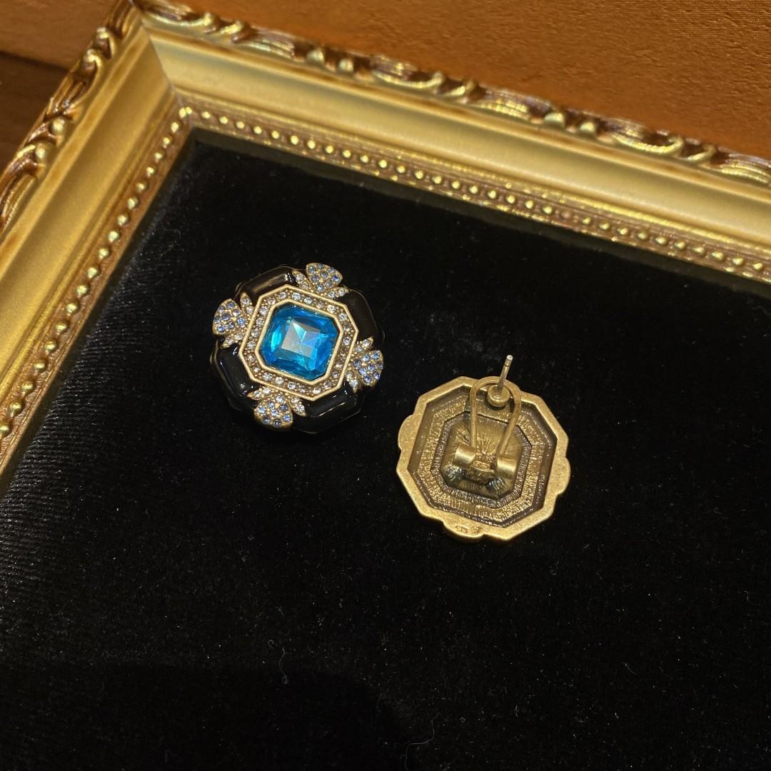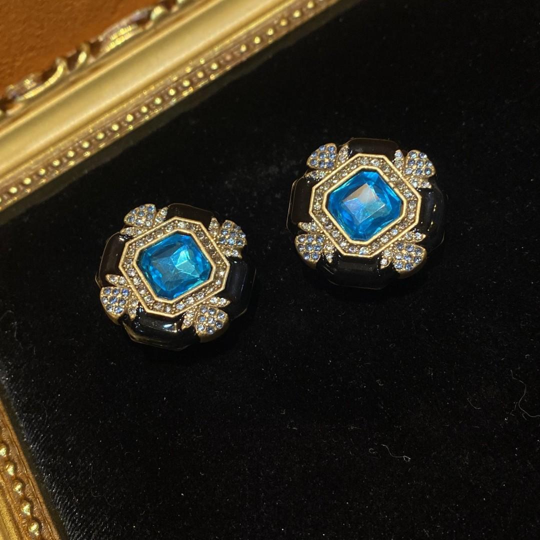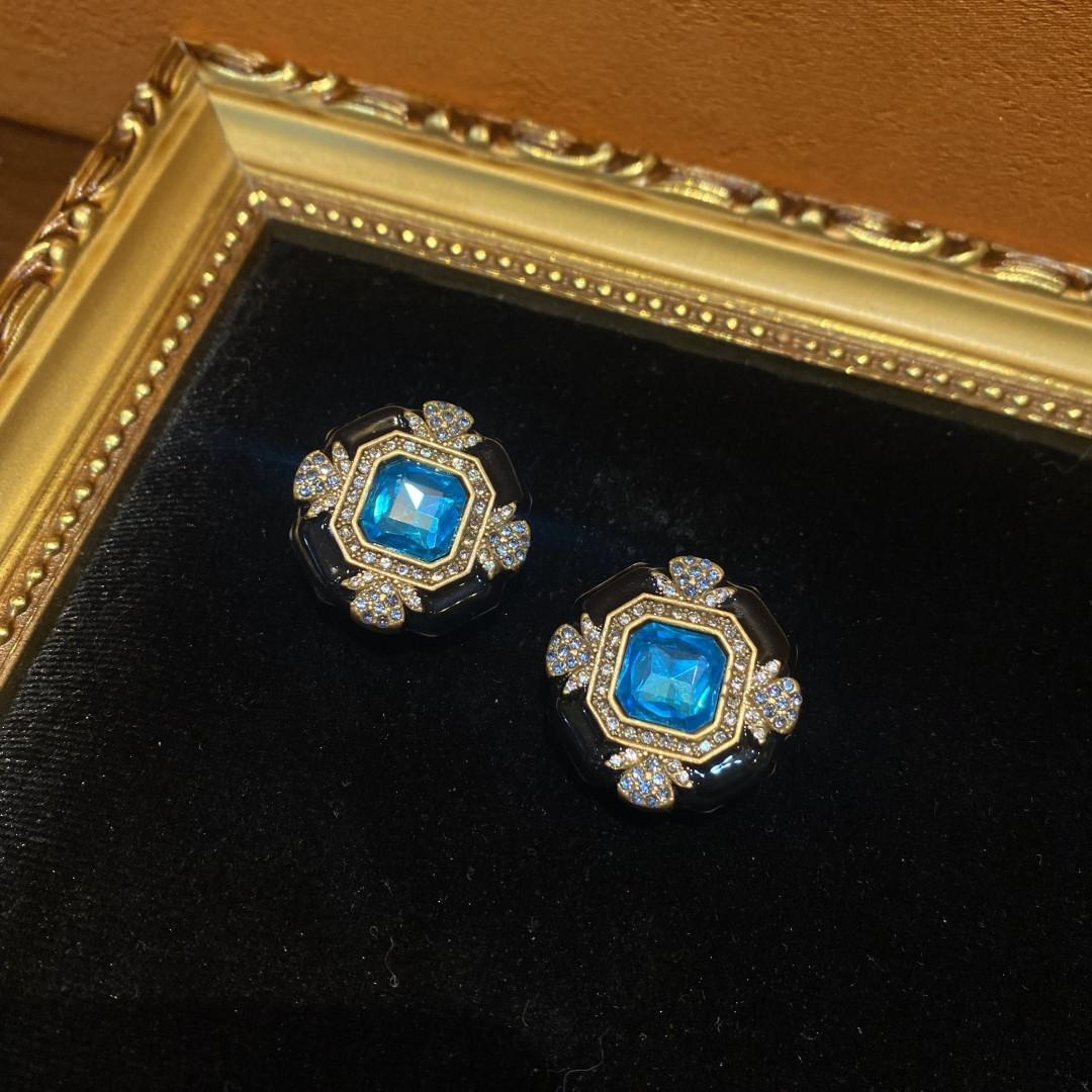 Pendientes de cobre antiguo occidental de 18 años con forma cuadrada de oro vintage, esmalte negro y diamantes de imitación azules, exquisitos.