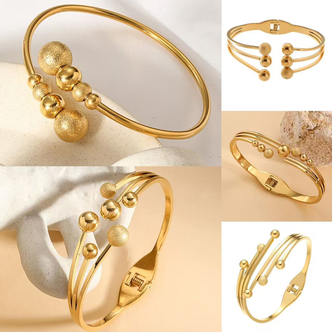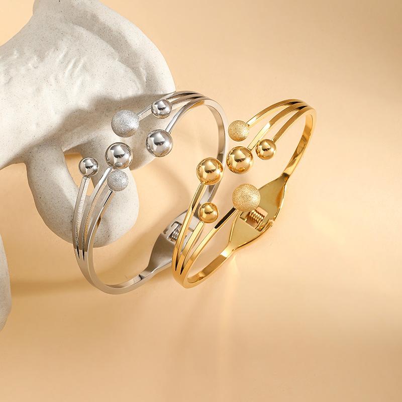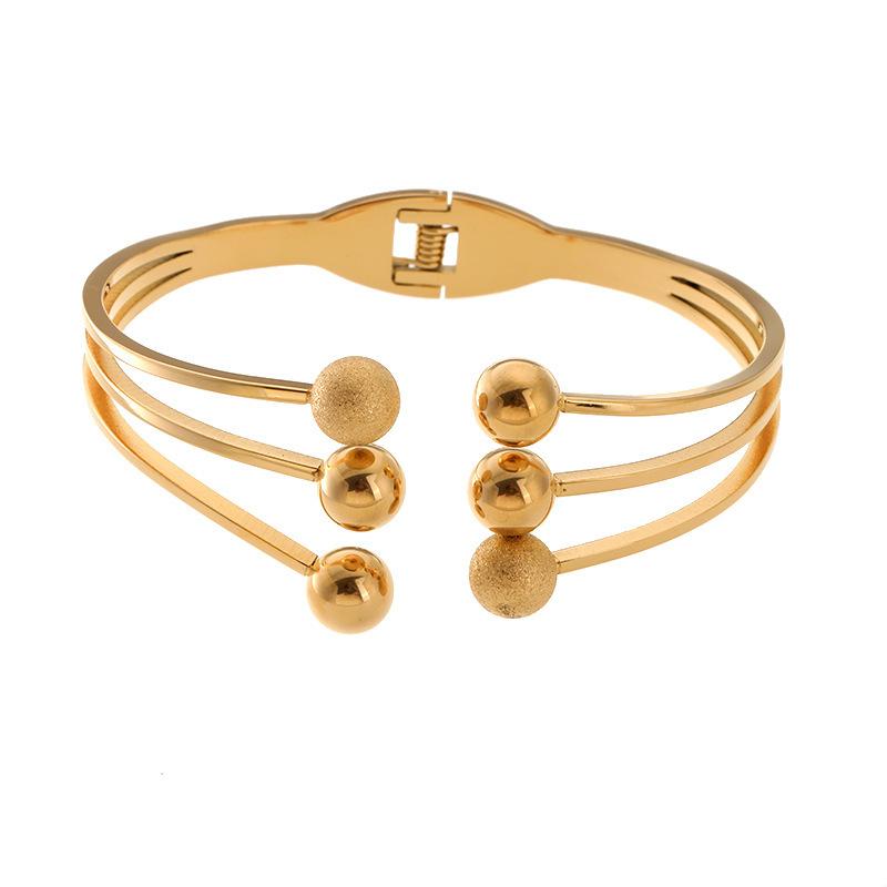Pulsera de moda europea y americana transfronteriza personalizada chapada en oro con cuentas redondas apertura de resorte acero de titanio joyería vintage para mujer