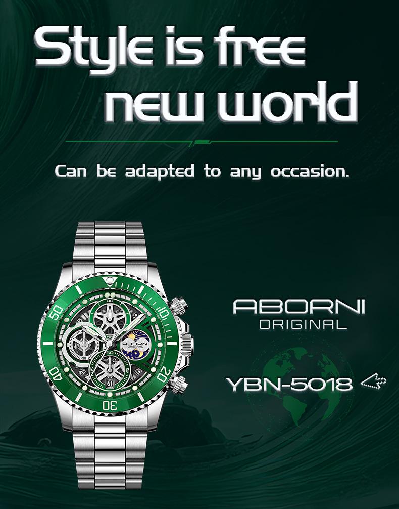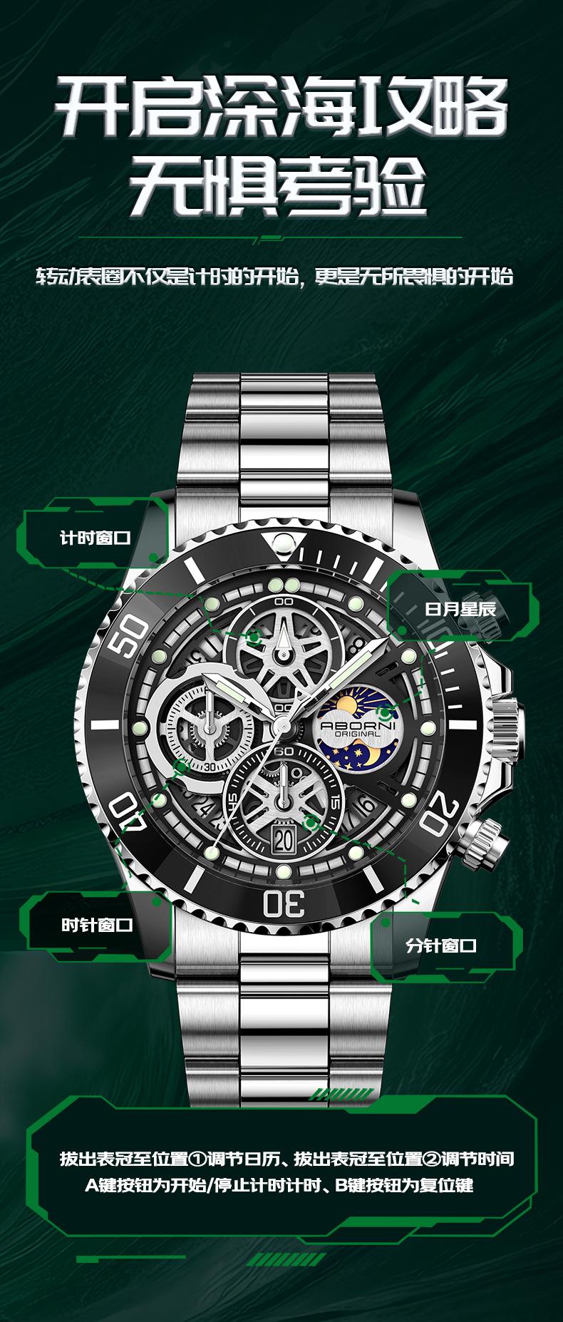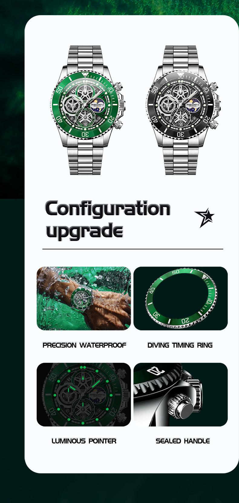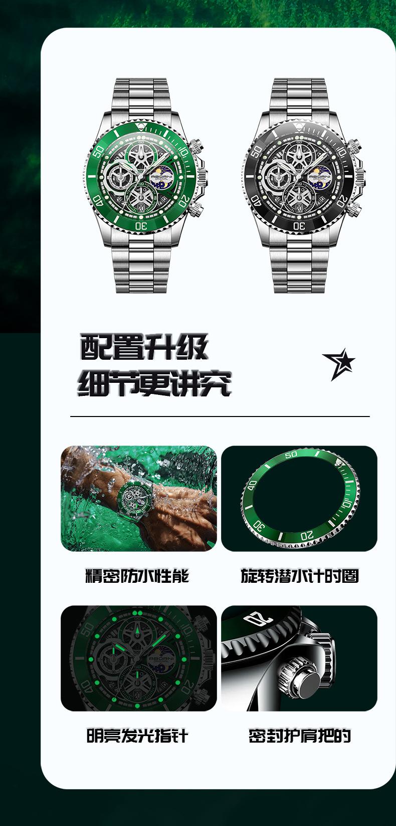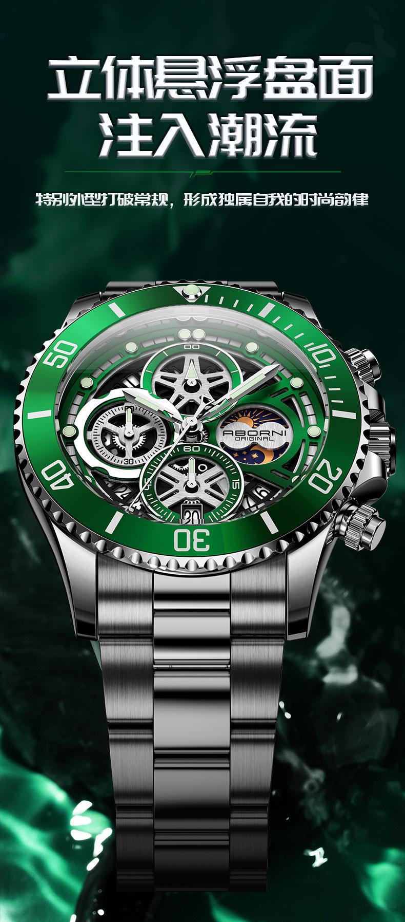 Reloj mecánico hueco de platino con diseño de fantasma de agua verde, calendario luminoso, resistente al agua, multifuncional, de cuarzo, para hombre.