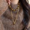 Collar con colgante de ojo de tigre con cuentas de Maillard para otoño e invierno, cadena de lana elegante y retro para mujer, accesorios ligeros de lujo de alta gama.