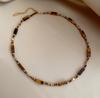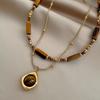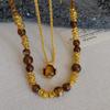 Tiger eye pendant necklace, Maillard beaded necklace, Beaded pendant stacked two-piece set [detachable]
