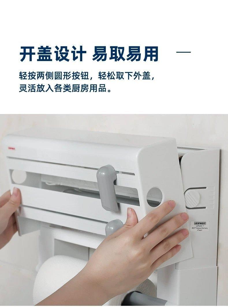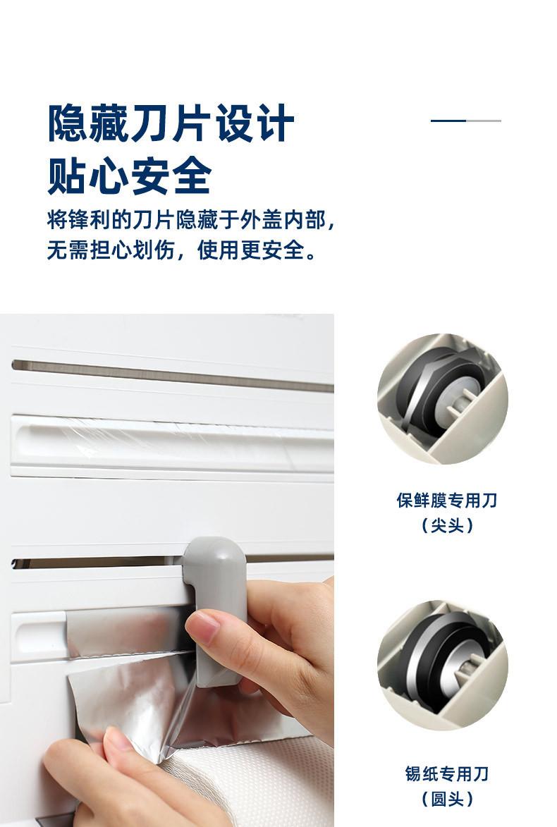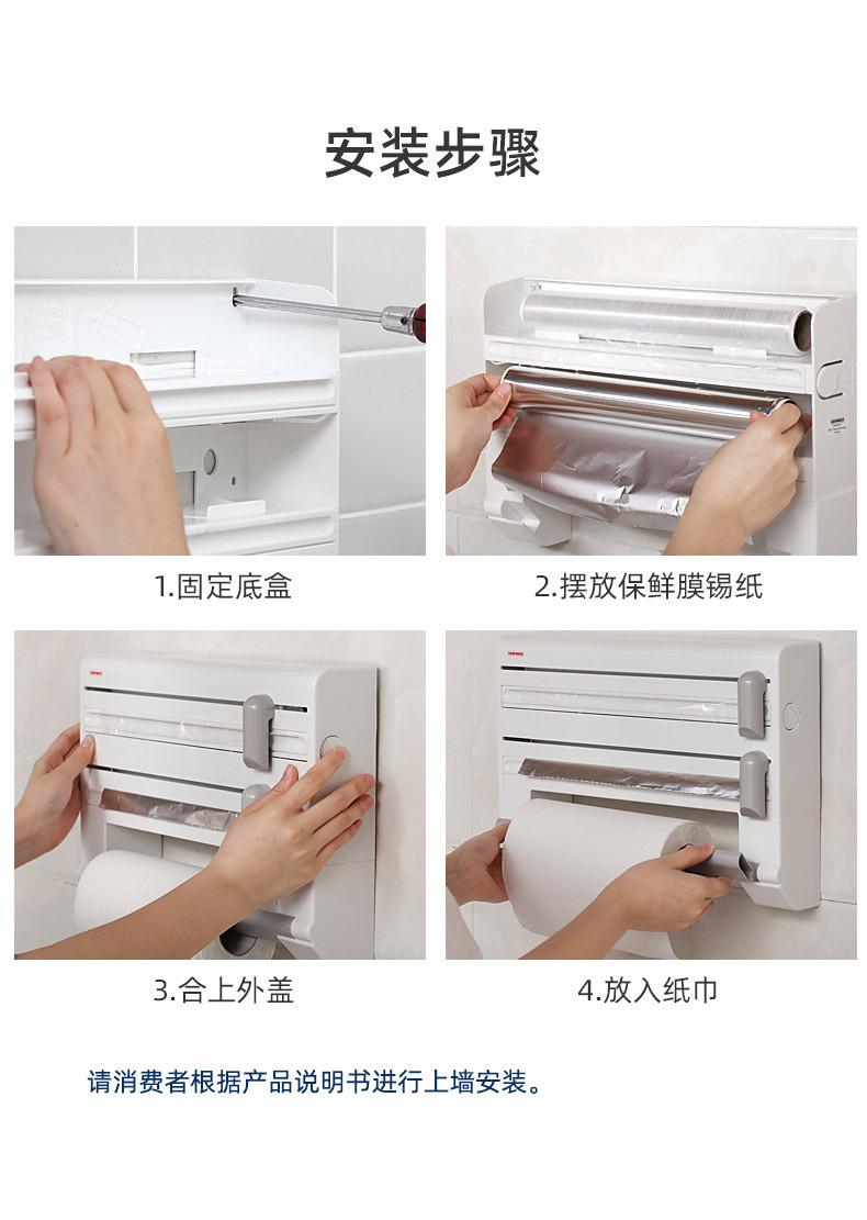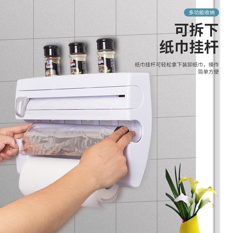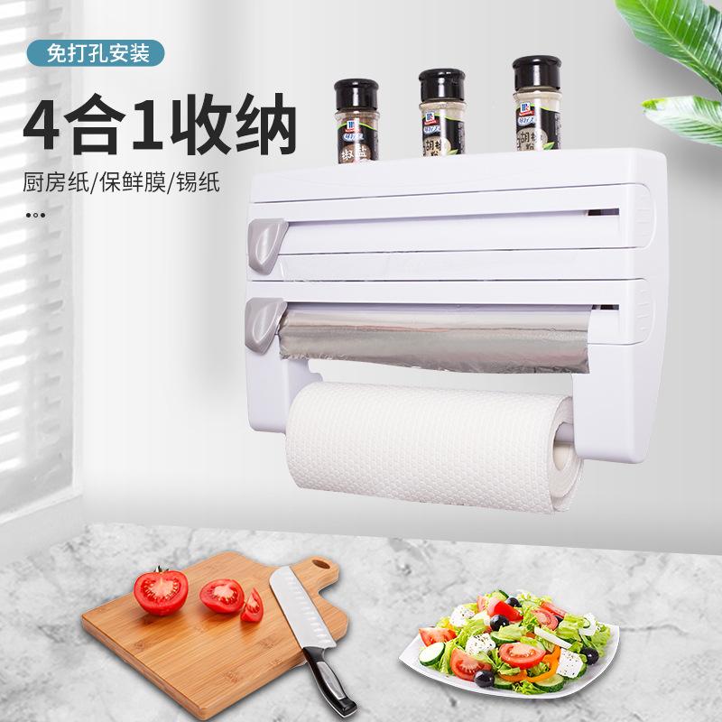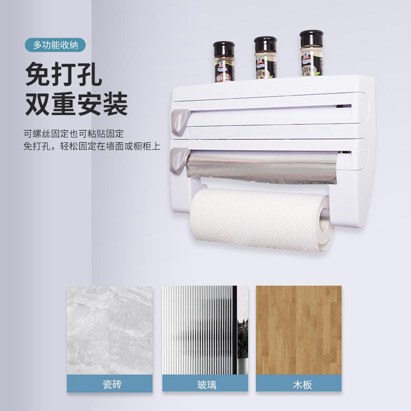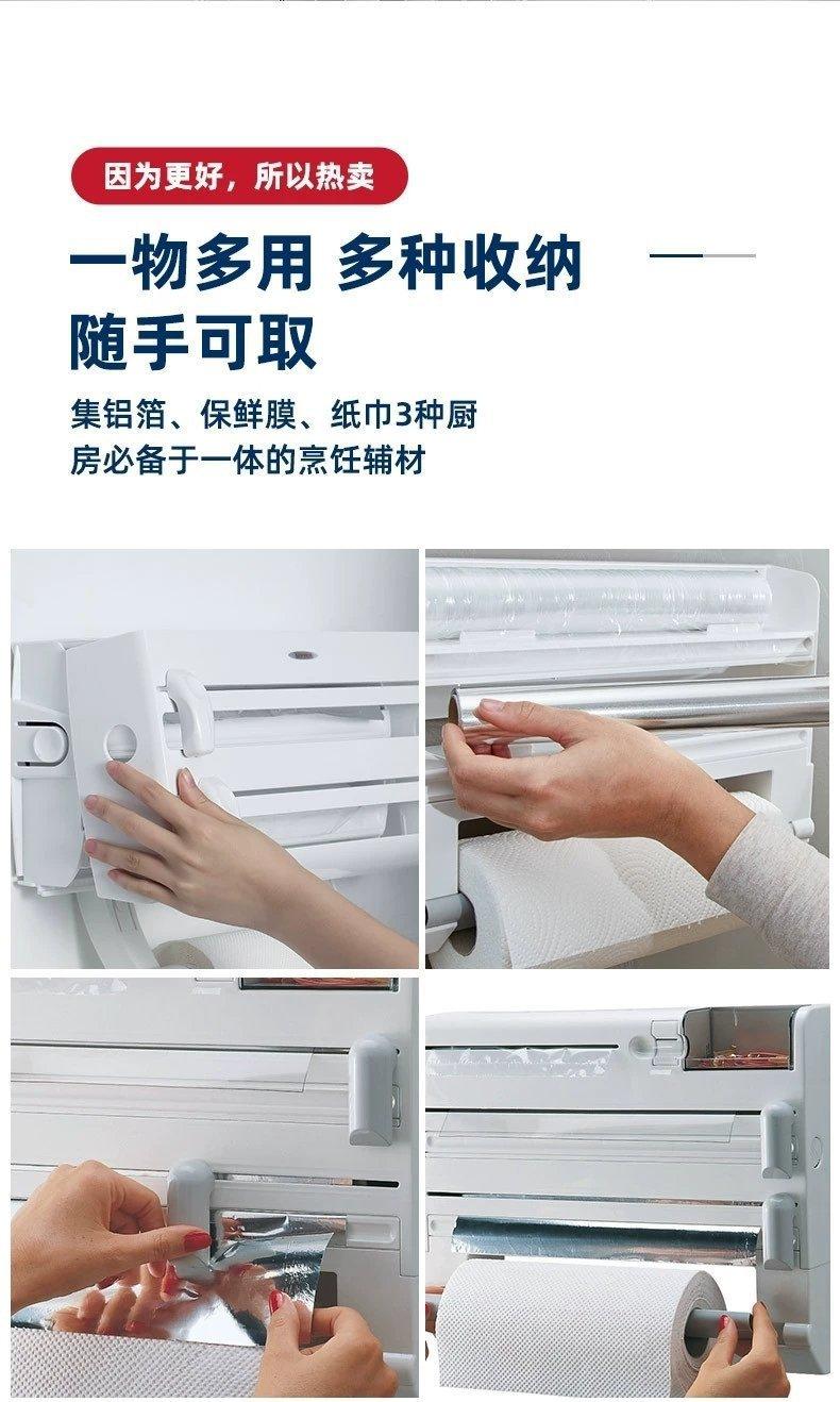Nombre del producto: Dispensador de papel film de segunda generación, cortador de papel de aluminio, estante de almacenamiento 4 en 1