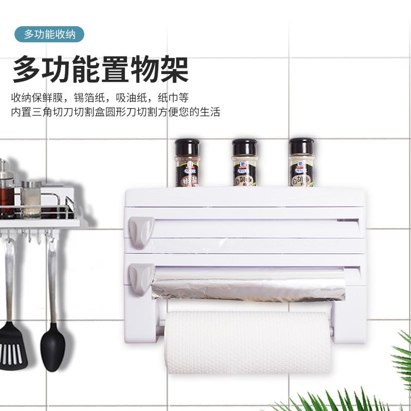 Nombre del producto: Dispensador de papel film de tercera generación, cortador de papel de aluminio, estante de almacenamiento 6 en 1