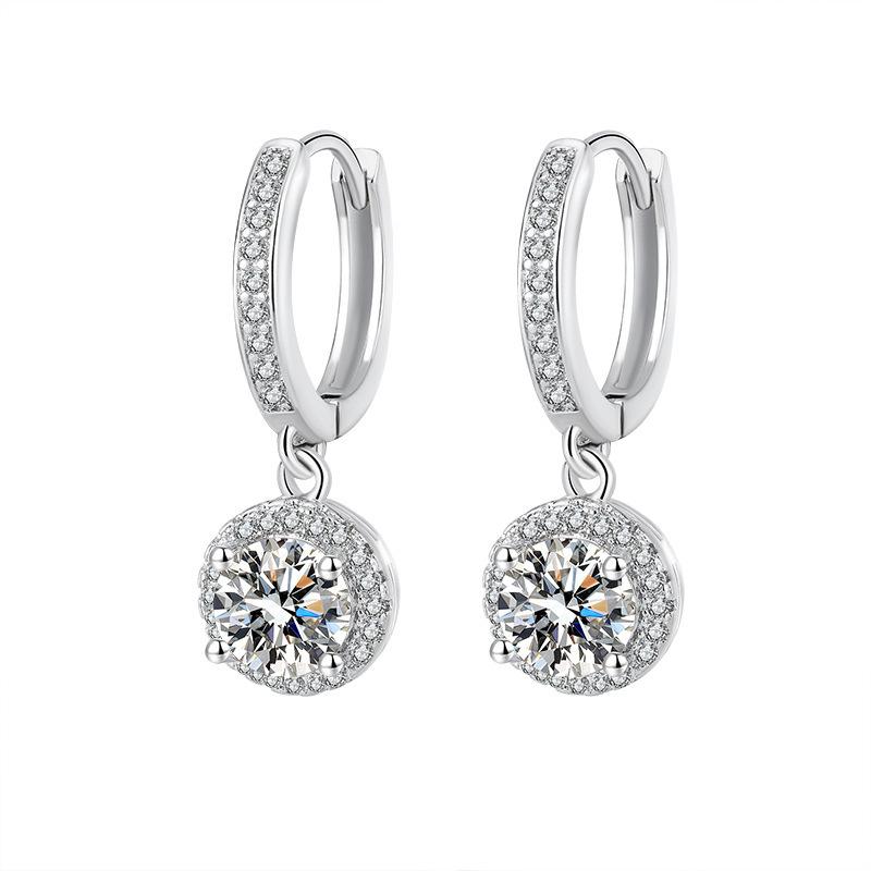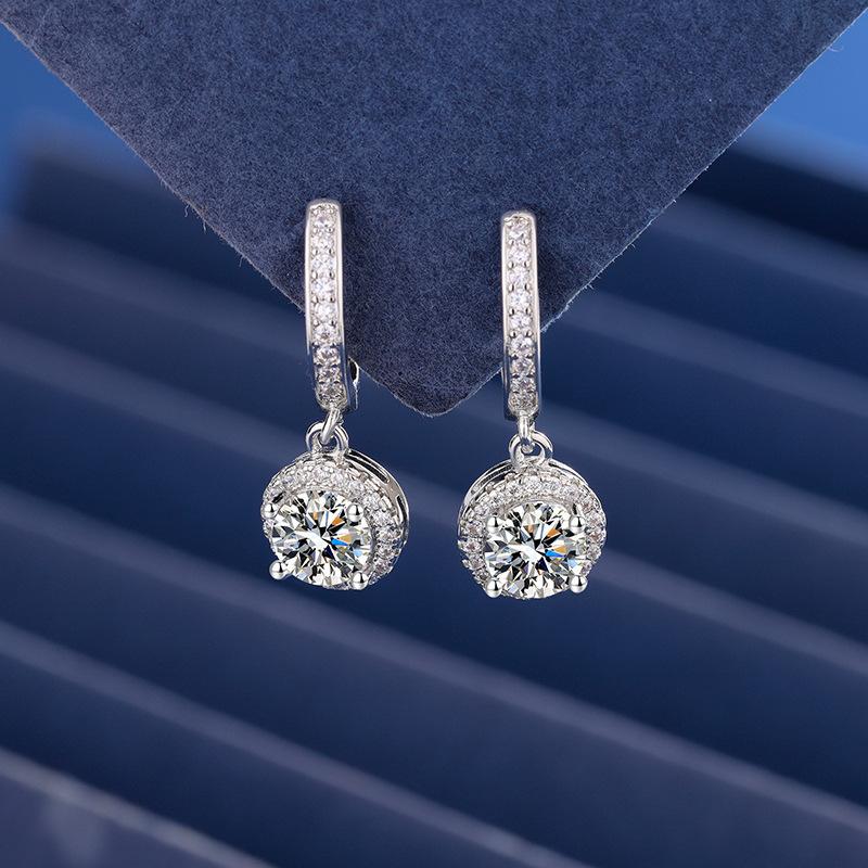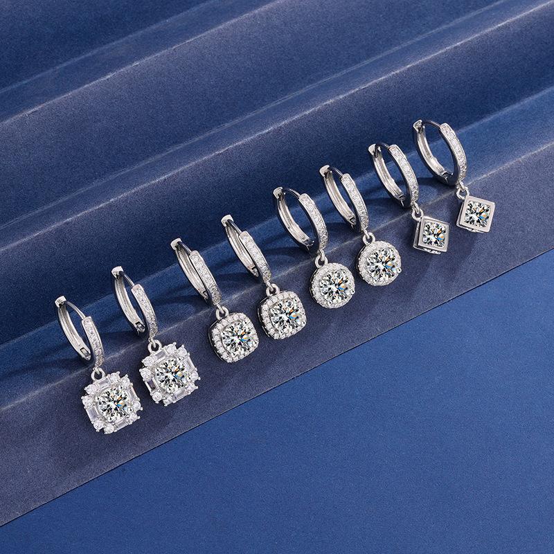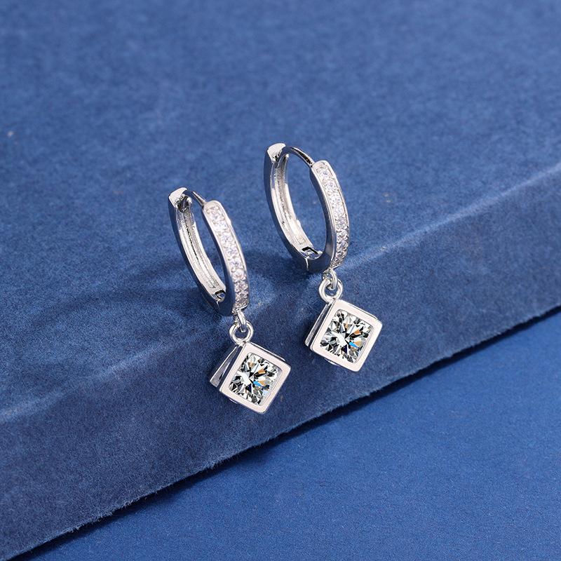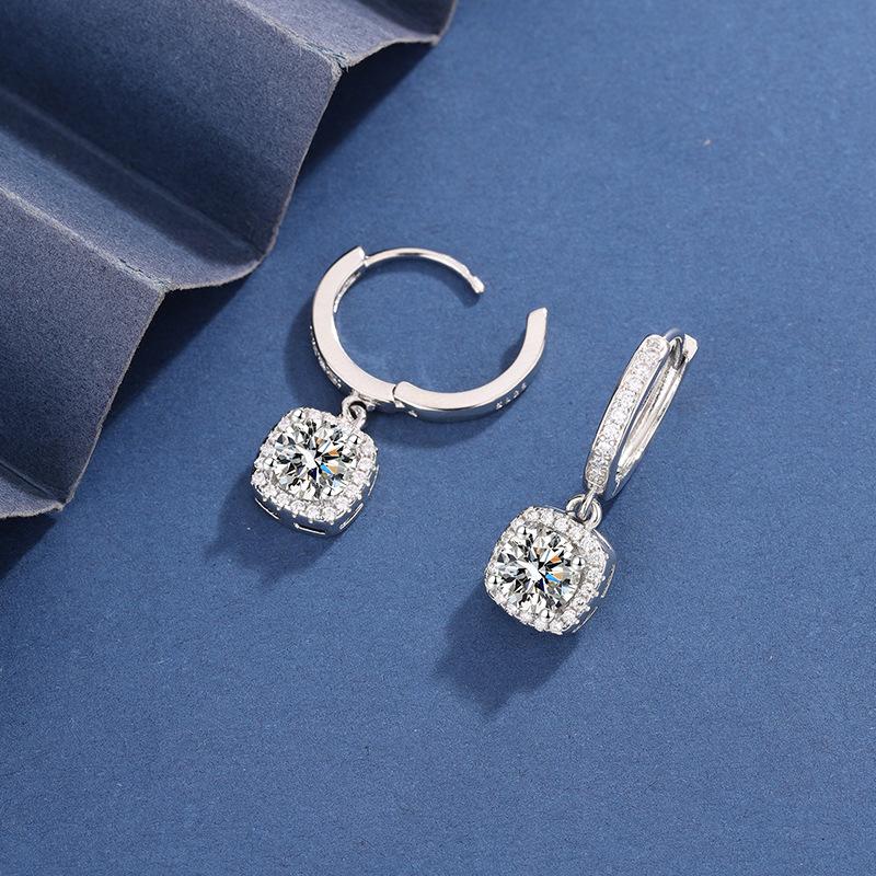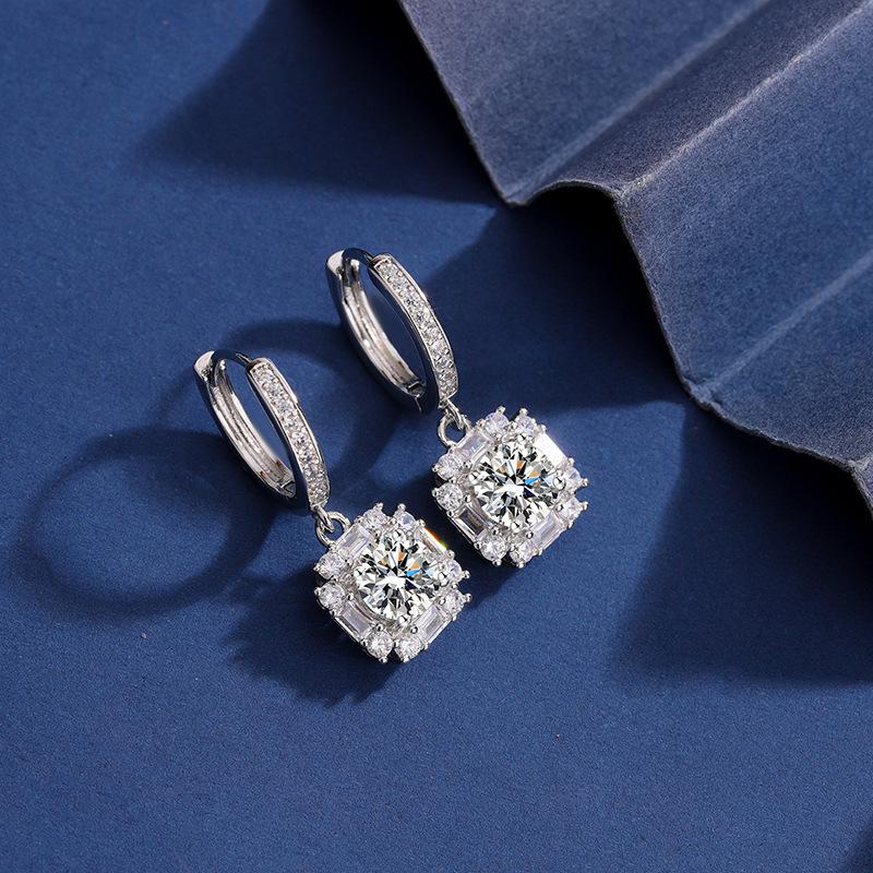 Pendientes de circonita microincrustada de 1 quilate, estilo clásico, con diseño de bolso cuadrado y redondo, con viento frío, para mujer, fabricantes al por mayor.