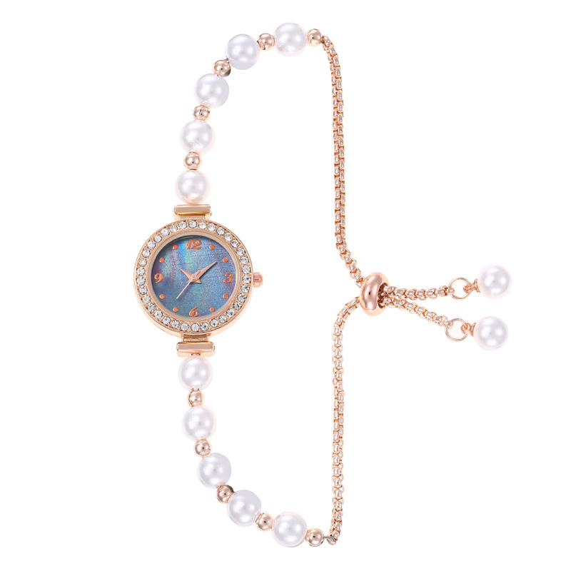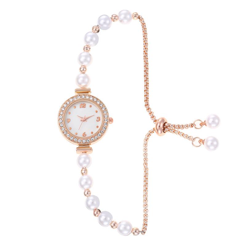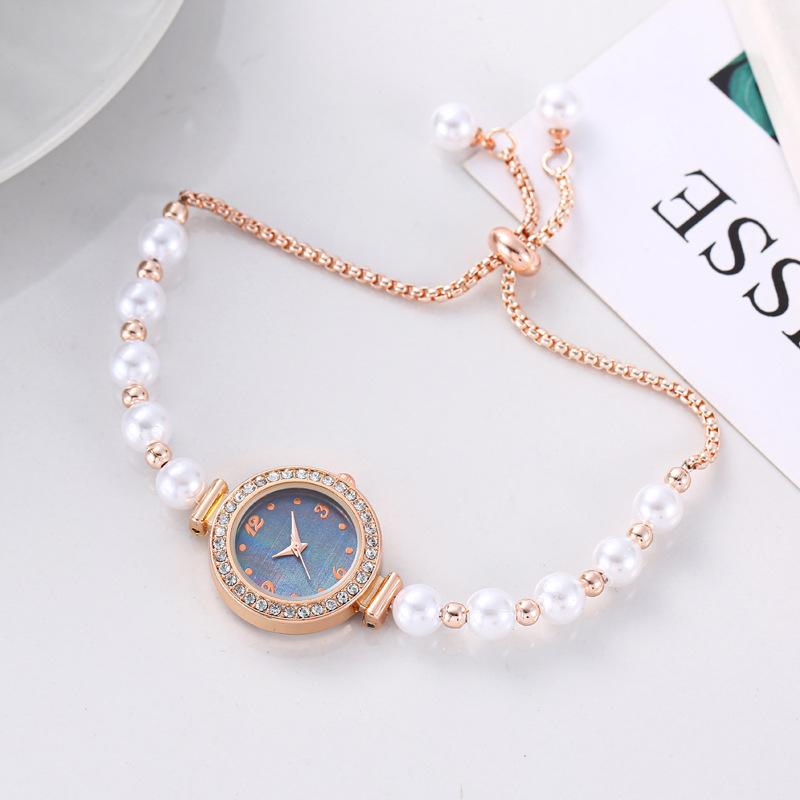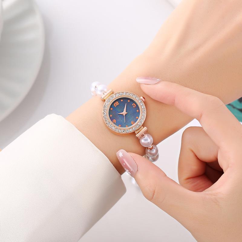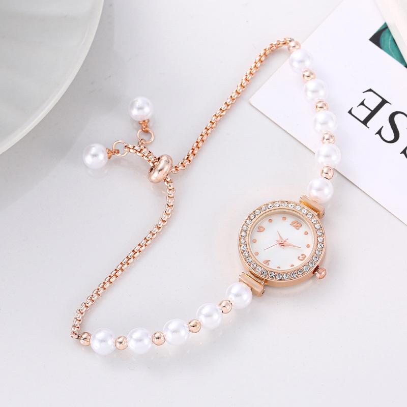 Reloj de cuarzo exquisito para mujer, estilo europeo y americano, con esfera de imitación de perla y diamante, con pulsera extraíble, para estudiantes