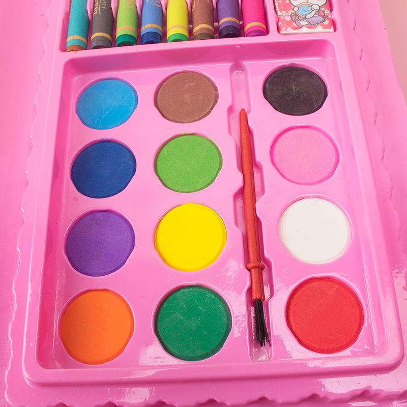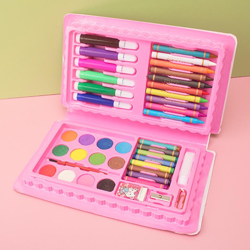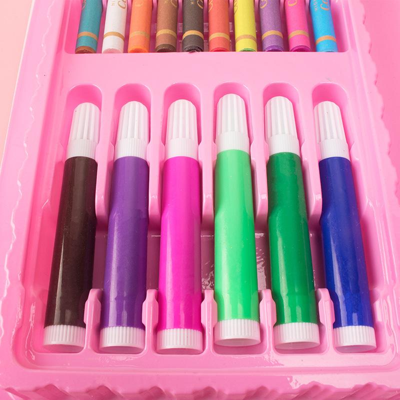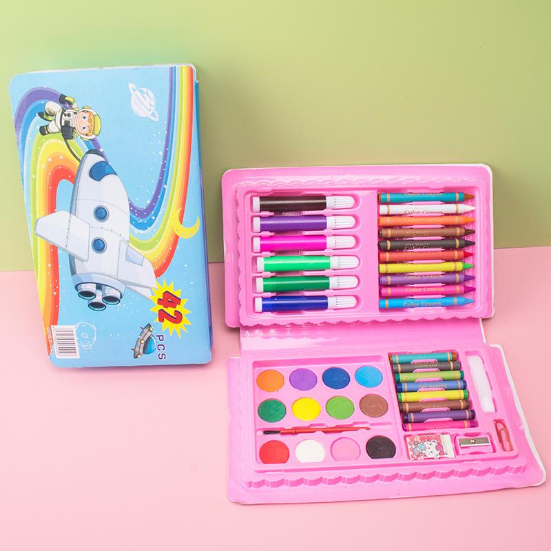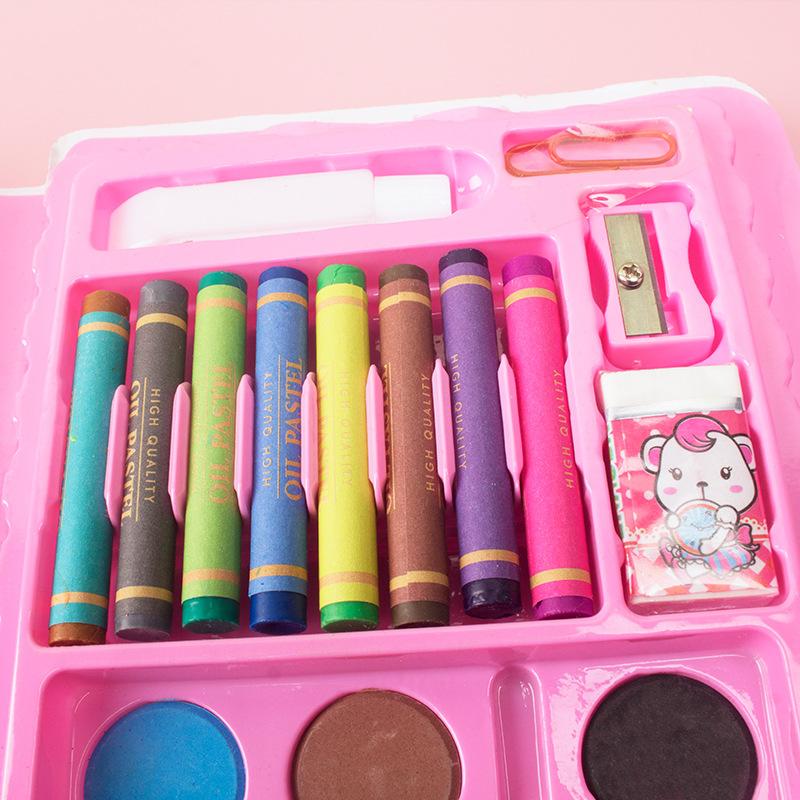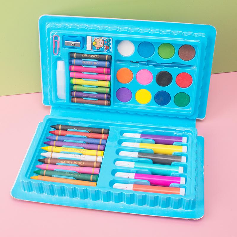 [Estructura interna]: Este modelo incluye plumas de acuarela de 6 colores, crayones de 10 colores, barras de cera de 10 colores, lápices de 10 colores, 1 goma de borrar, 1 sacapuntas, unos 2 clips, 1 bote de pegamento y 1 estuche exquisito.