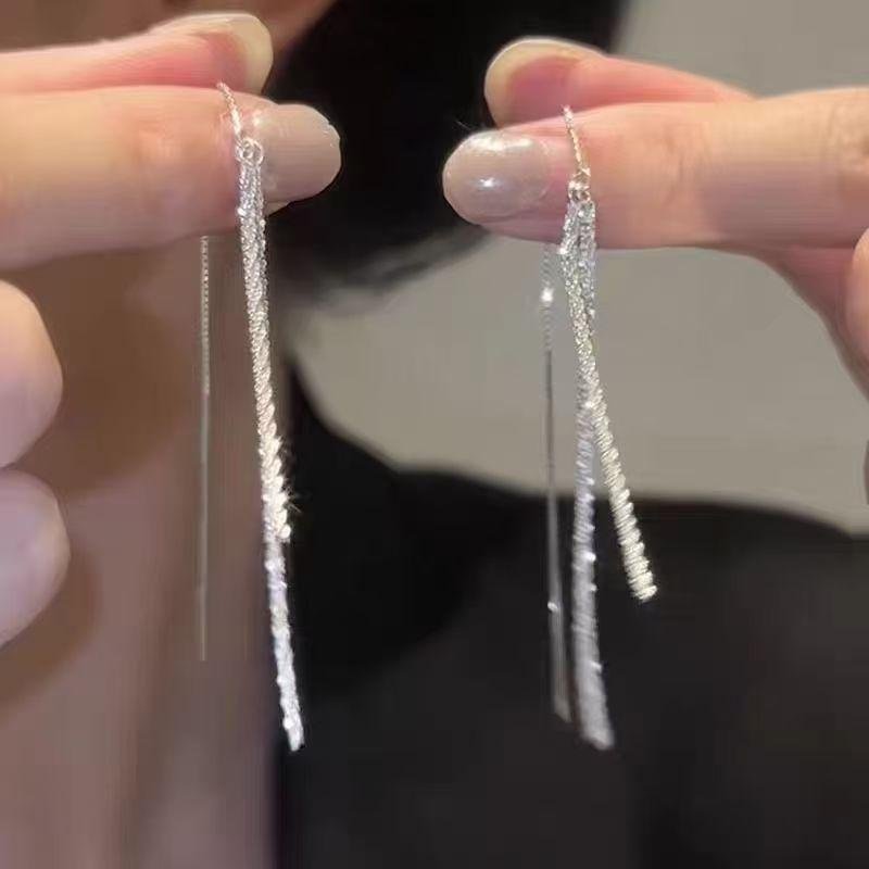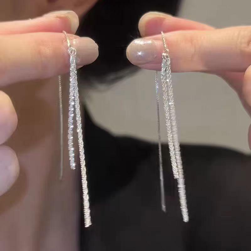 Elegantes pendientes largos y redondos con borlas de galaxia, diseño de nicho, de alta gama y combinables para mujer.