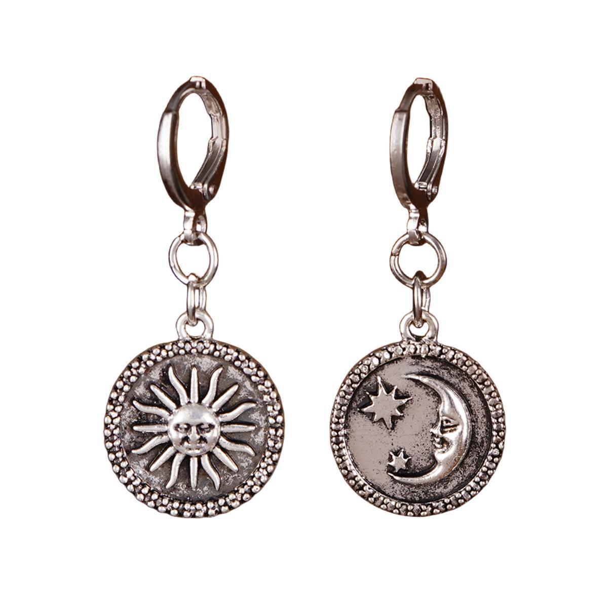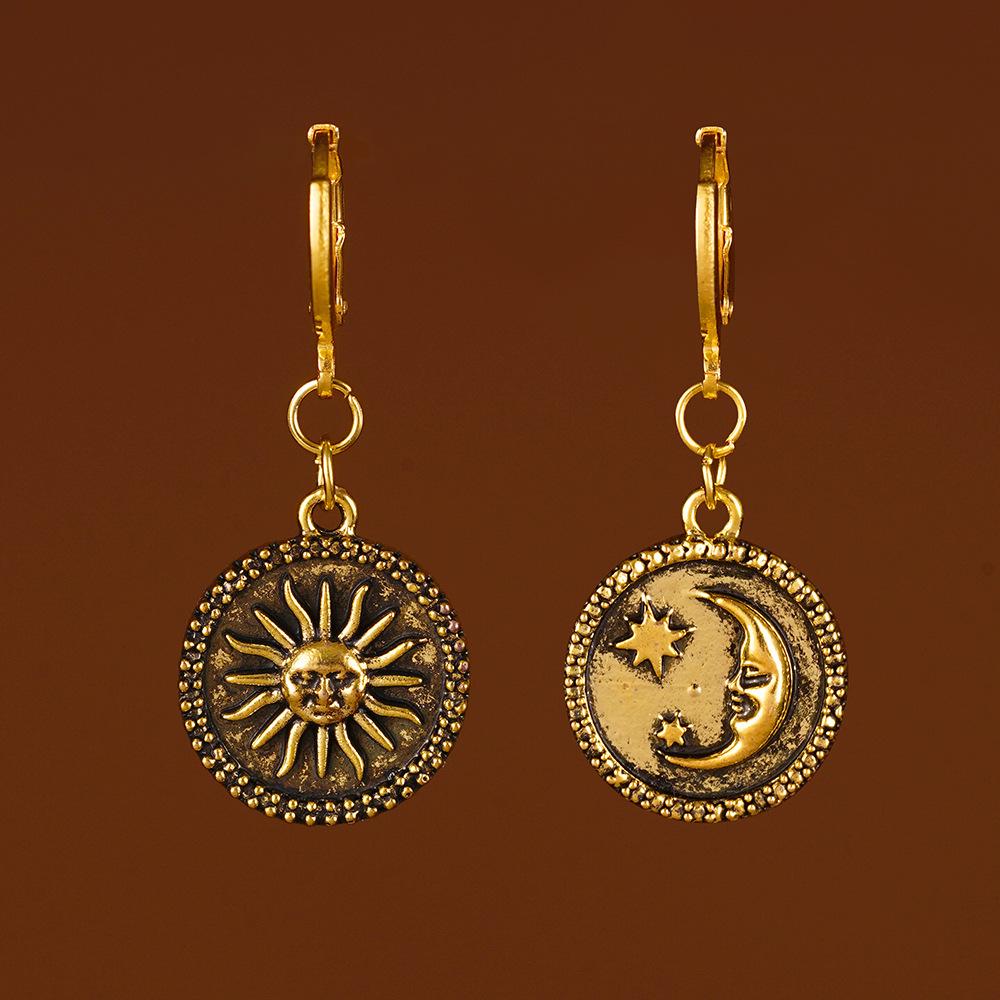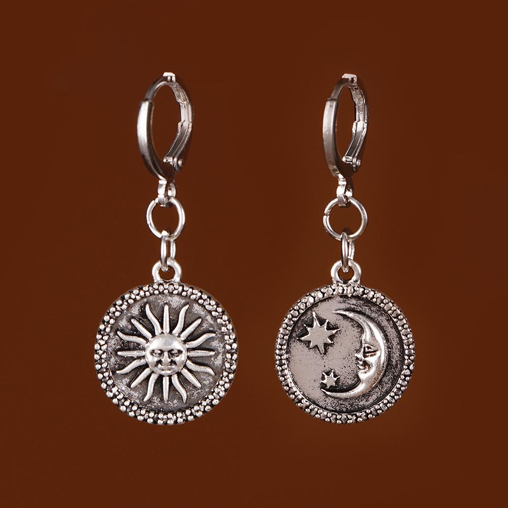 Pendientes colgantes asimétricos con personalidad de sol y luna para damas con diseño creativo de Amazon para comercio exterior transfronterizo