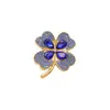 Broche de trébol de cuatro hojas estilo arte brillante para mujer, elegante accesorio de traje, regalo